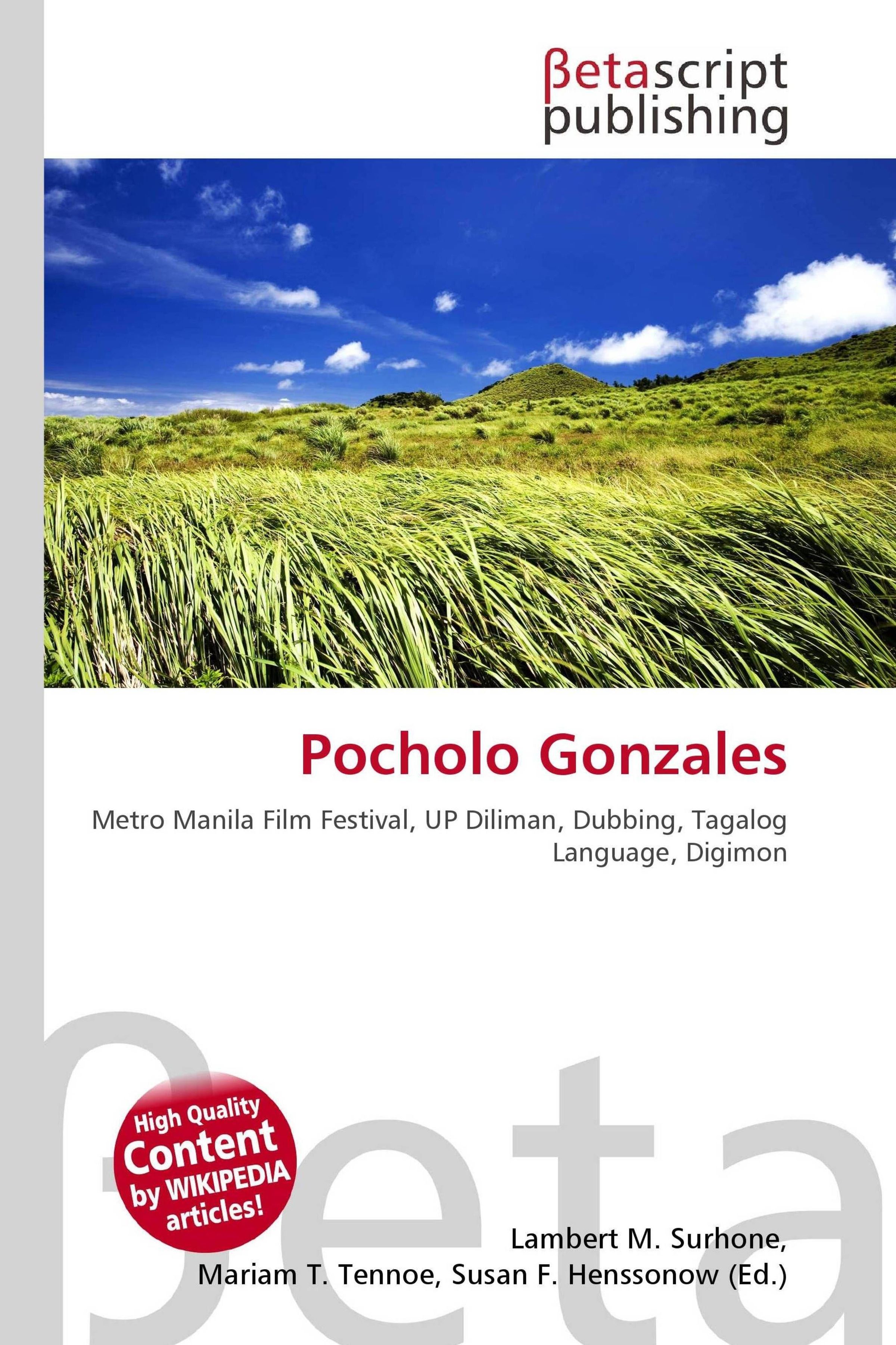 "Pocholo Gonzales" steht in roter Schrift. Darunter: "Metro Manila Film Festival, UP Diliman, Dubbing, Tagalog Language, Digimon". Im Hintergrund ist eine weite grüne Wiese unter blauem Himmel., Buch