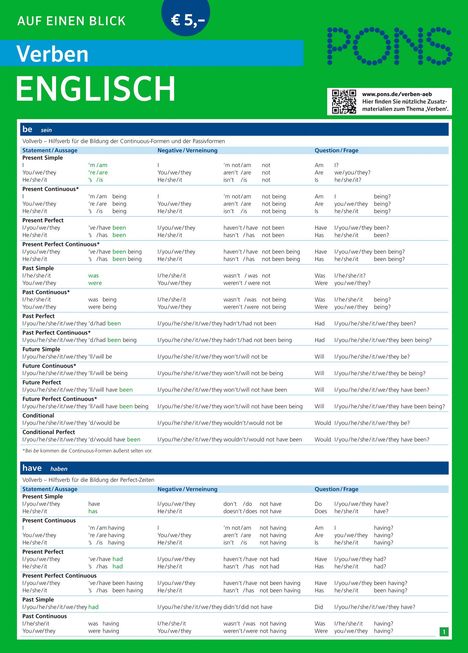 - Kompakt: Übersicht aller Verbformen, Konjugationen und Zeiten auf einen Blick zum schnellen Nachschlagen und Lernen.