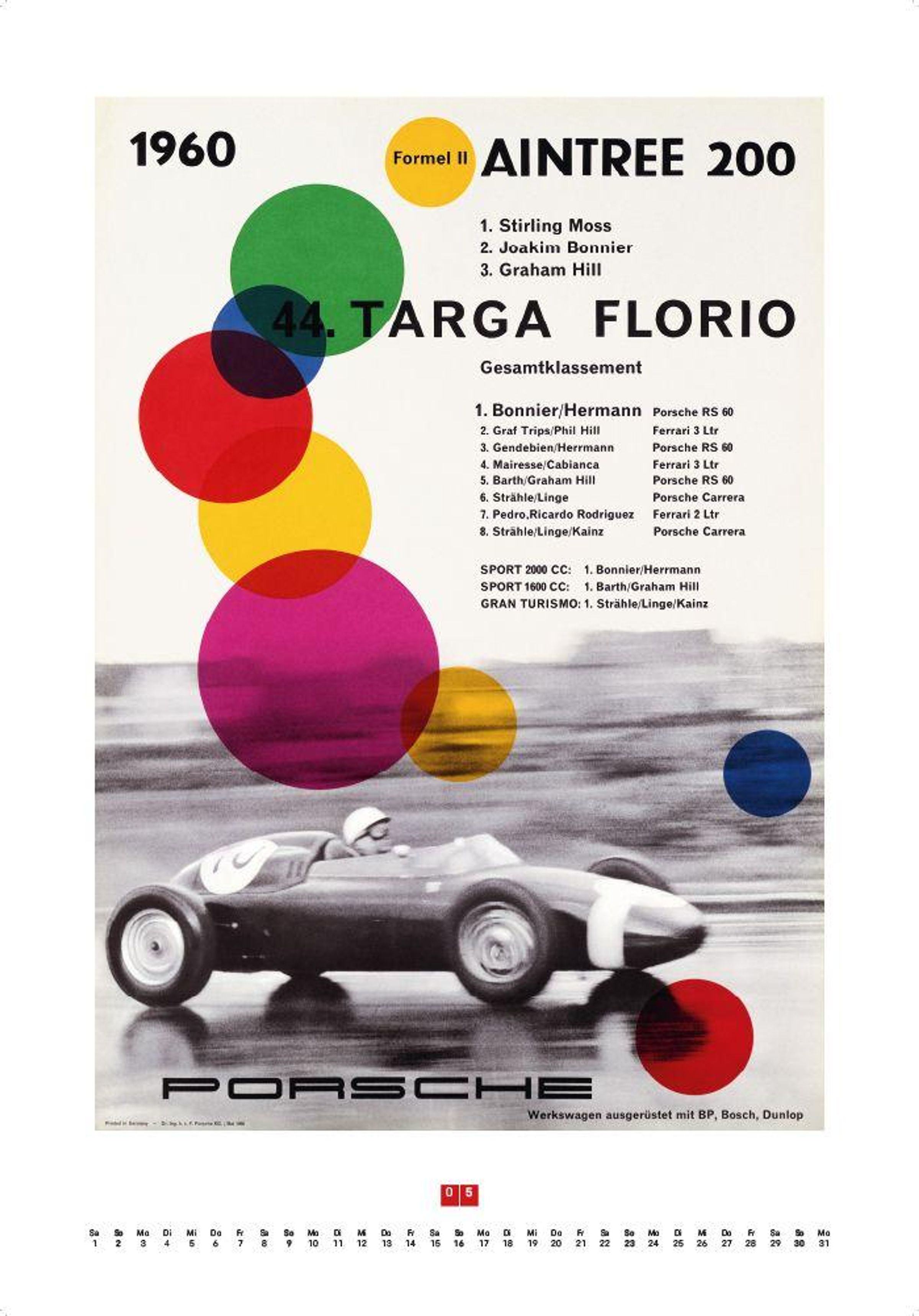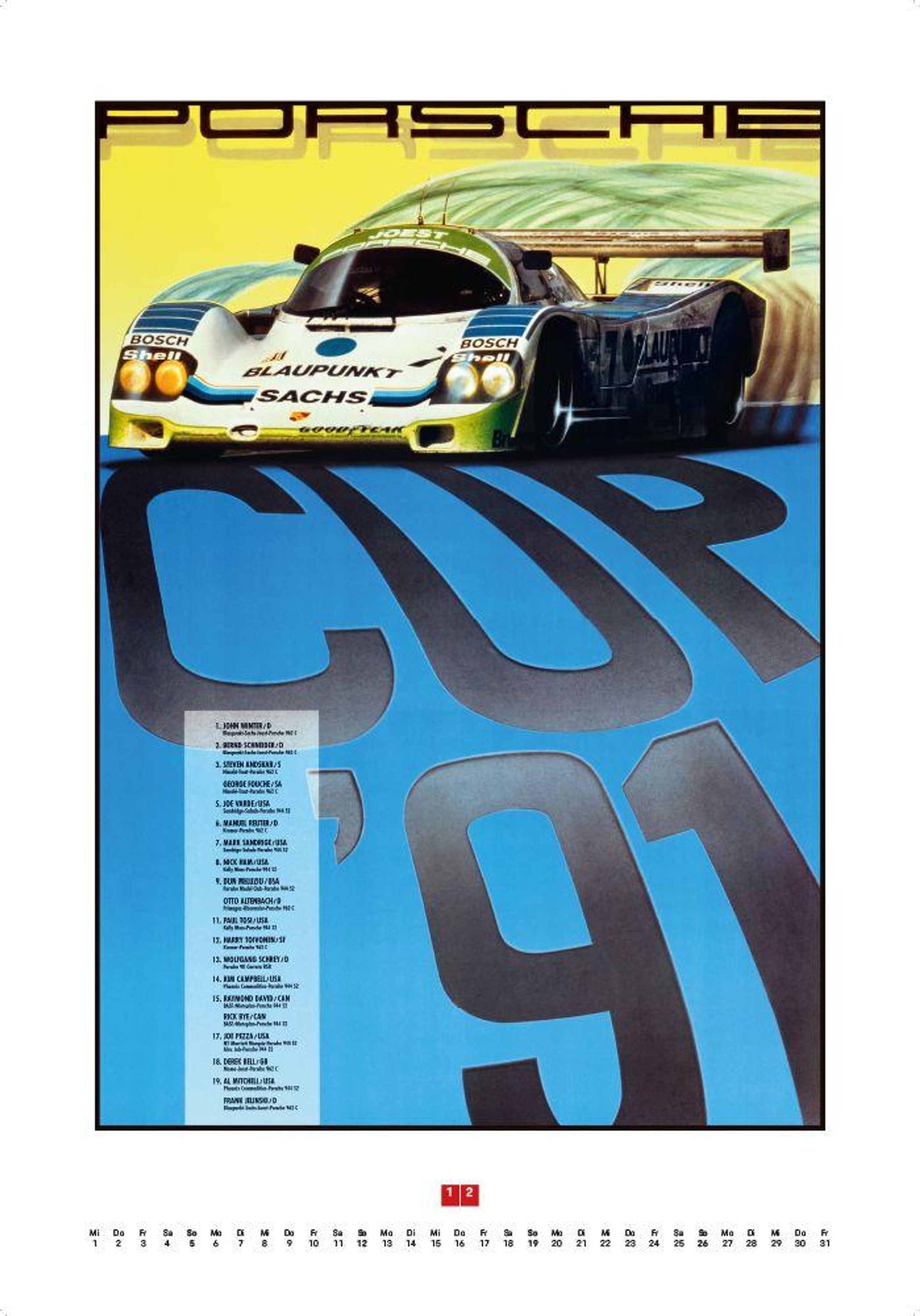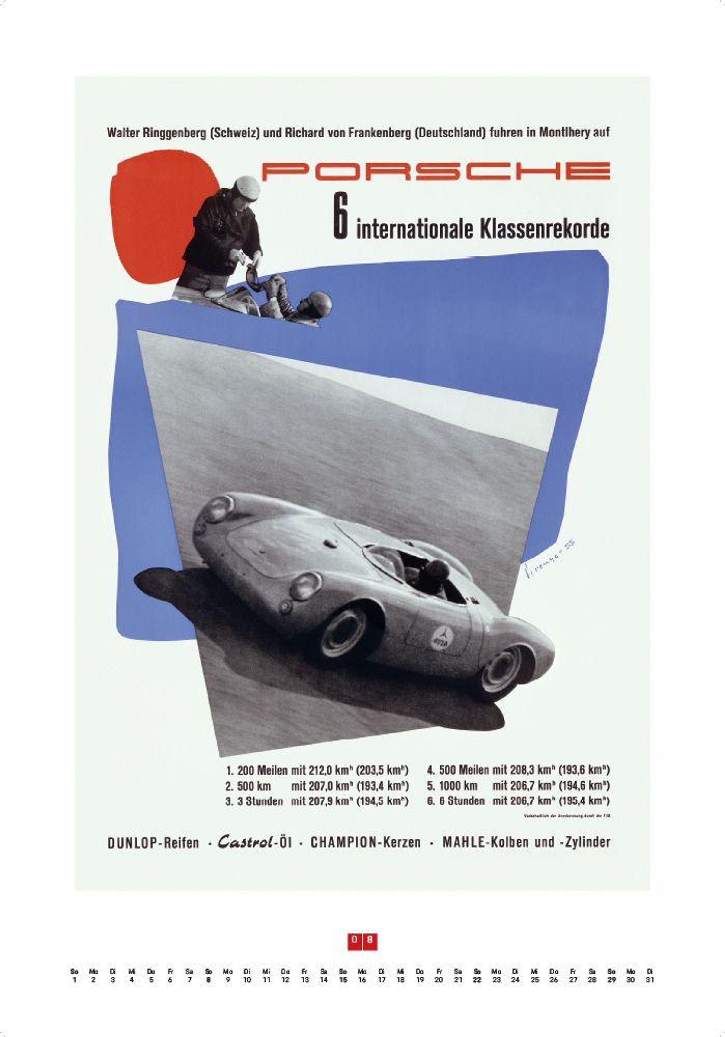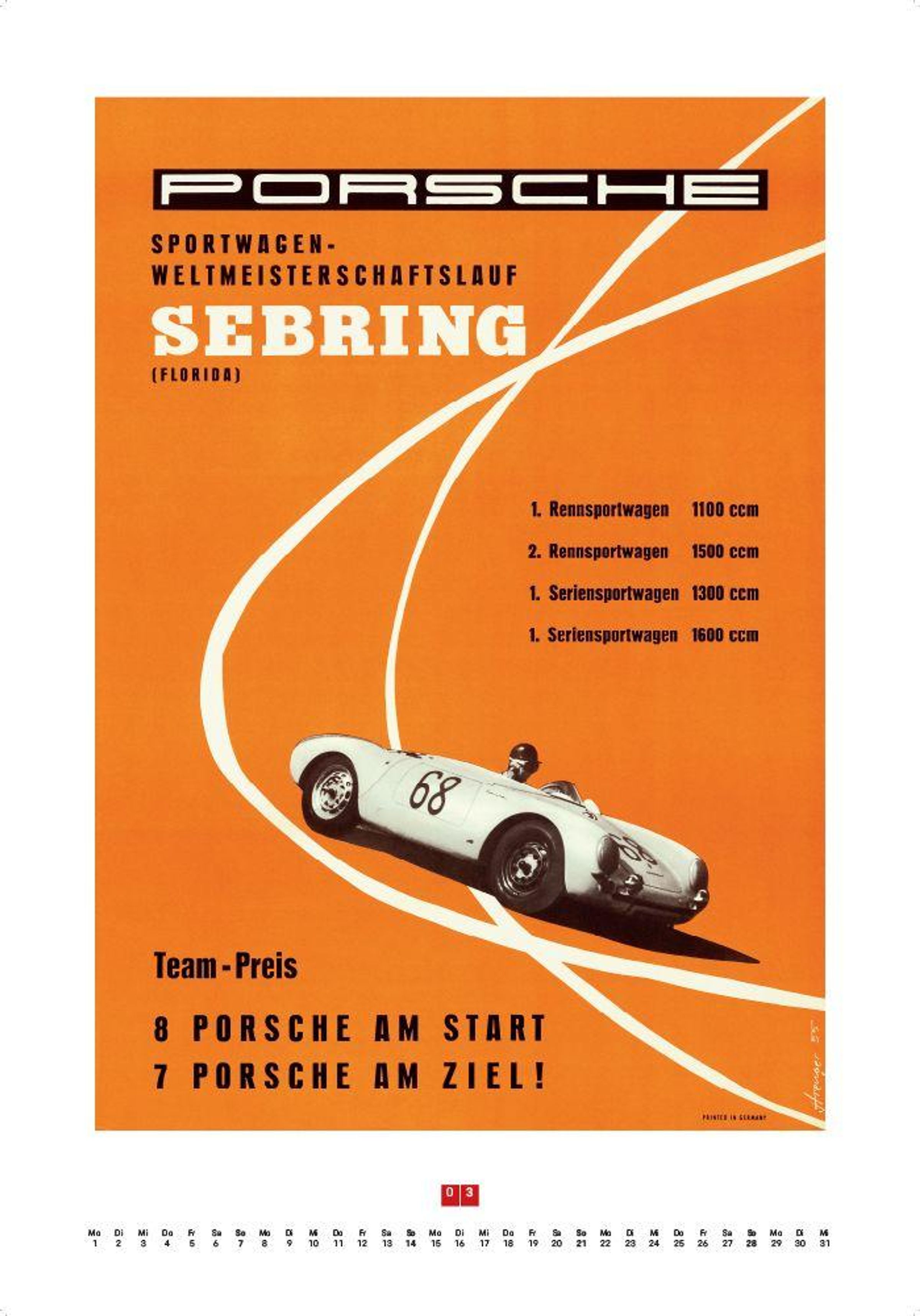 Dieser Kalender knüpft an die Tradition dieser preisgekrönten Grafik- und Designgeschichte an, die Porsche nach dem Tod Erich Strengers beibehalten hat, und präsentiert zwölf erlesene Motive. Enthalten sind außerdem Informationen zu den porträtierten Rennen sowie zu den abgebildeten Renn- und Straßenfahrzeugen.