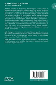 This book advocates for the necessity of recovering the value of utopias as political projects that open new channels of action. The criticism of modern political utopias is based on the supposed impossibility of creating for the future because there is no longer a future (apocalyptic ideology). However, this edited collection seeks to show that the post-apocalyptic world in which we live entails a renewed freedom of design for the radical reorganization of institutions. Post-apocalyptic cultures are not obligated to follow the capitalist, anthropocentric, correlationist and sovereign modes of the old political project of emancipation¿the Western enlightenment¿that has started to collapse. With this in mind, this book is divided into four sections dedicated to the main themes from which to rethink the projects of political emancipation that are possible nowadays: technopolitics; posthumanist biopolitics; non-western politicsl and the crossover between arts and politics.