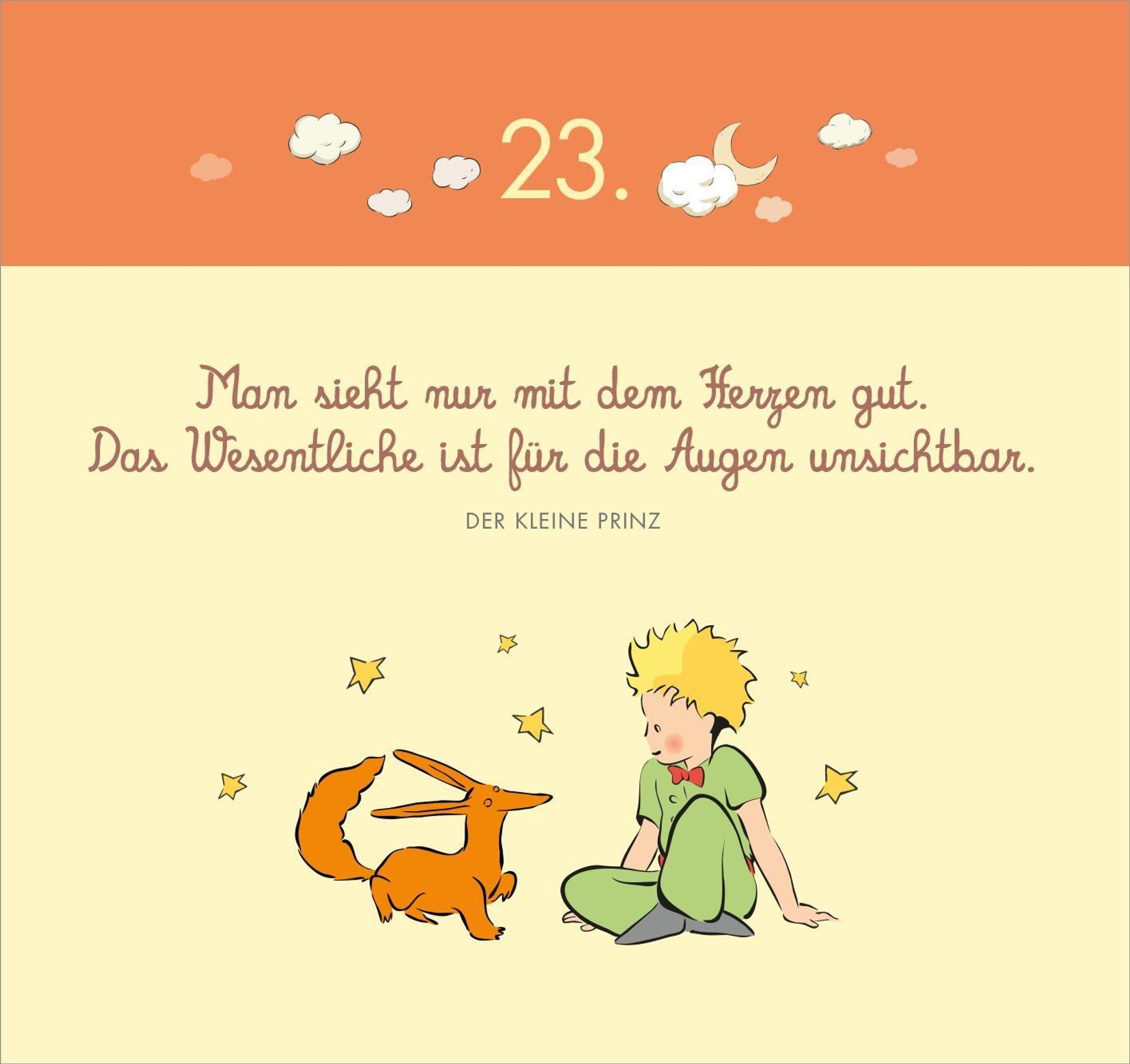 Mach die Adventszeit zu etwas ganz Besonderem mit diesem liebevoll gestalteten Postkartenkalender zum Aufstellen! Jeden Tag wartet eine neue Überraschung: Zitate und Weihnachtswünsche aus der Welt des kleinen Prinzen, die Herzen berühren und zum Nachdenken anregen. Mit den einzigartigen Zeichnungen von Antoine de Saint-Exupéry ist der hochwertige Tischaufsteller nicht nur ein stimmungsvoller Begleiter durch den Advent, sondern auch ein ideales Geschenk für alle Fans des kleinen Prinzen.