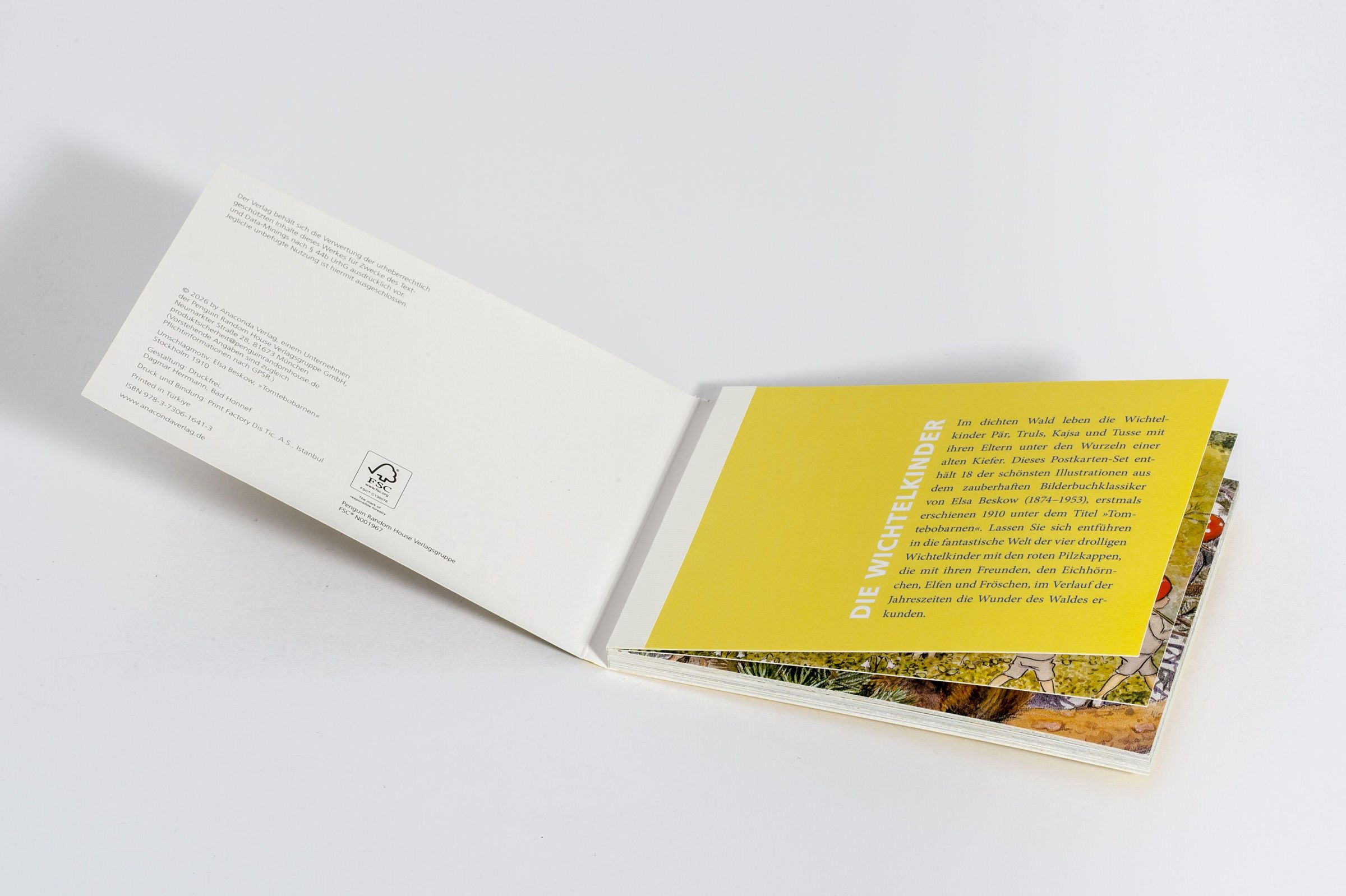 Im dichten Wald leben die Wichtelkinder Pär, Truls, Kajsa und Tusse mit ihren Eltern unter den Wurzeln einer alten Kiefer. Dieses Postkarten-Set enthält 18 der schönsten Illustrationen aus Elsa Beskows zauberhaftem Bilderbuchklassiker, der erstmals 1910 erschien und auf einfühlsame Weise die Verbundenheit mit der Natur vermittelt. Lassen Sie sich entführen in die fantastische Welt der vier drolligen Wichtelkinder mit den roten Pilzkappen, die mit ihren Freunden, den Eichhörnchen, Elfen und Fröschen, im Verlauf der Jahreszeiten die Wunder des Waldes erkunden.