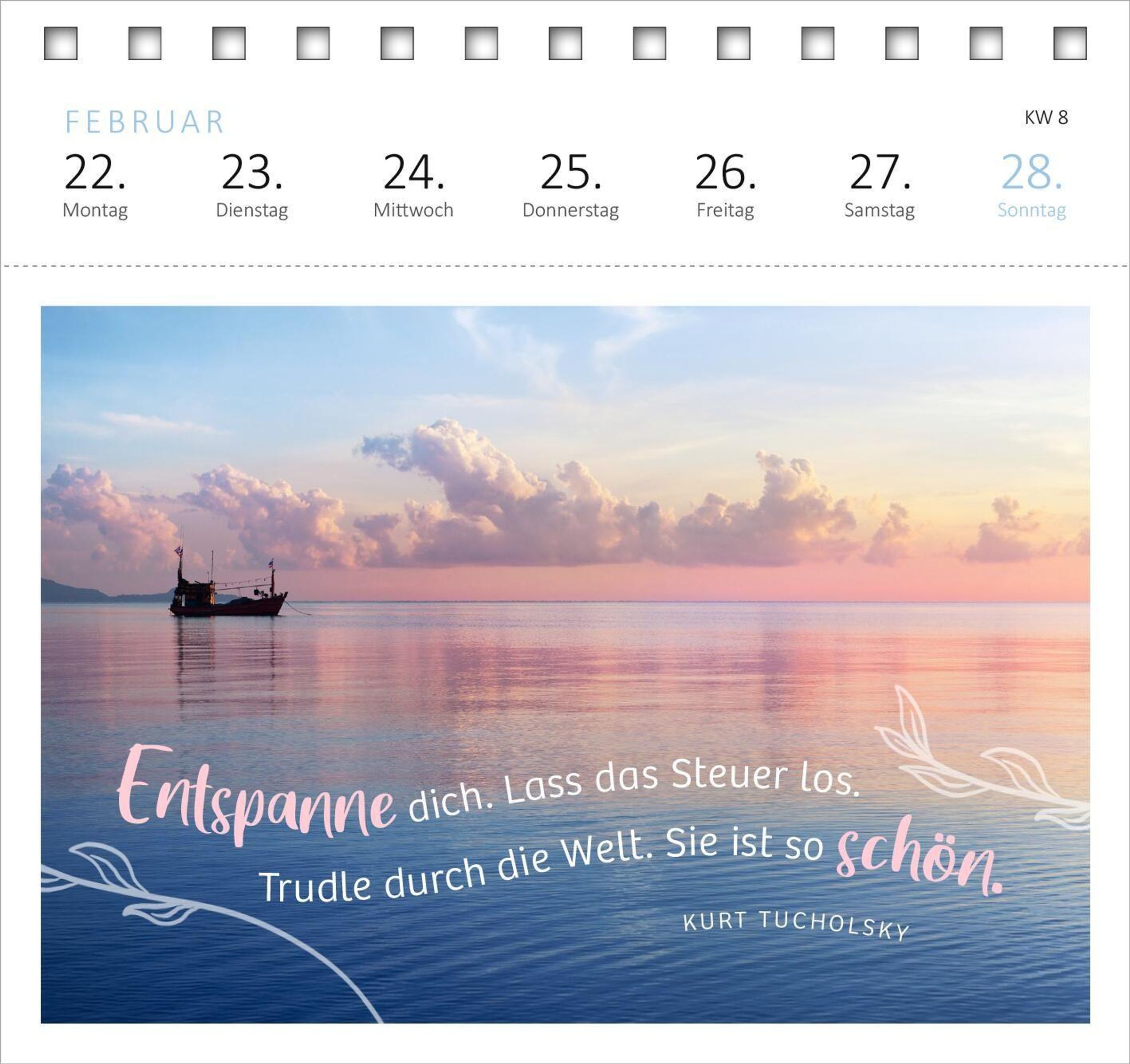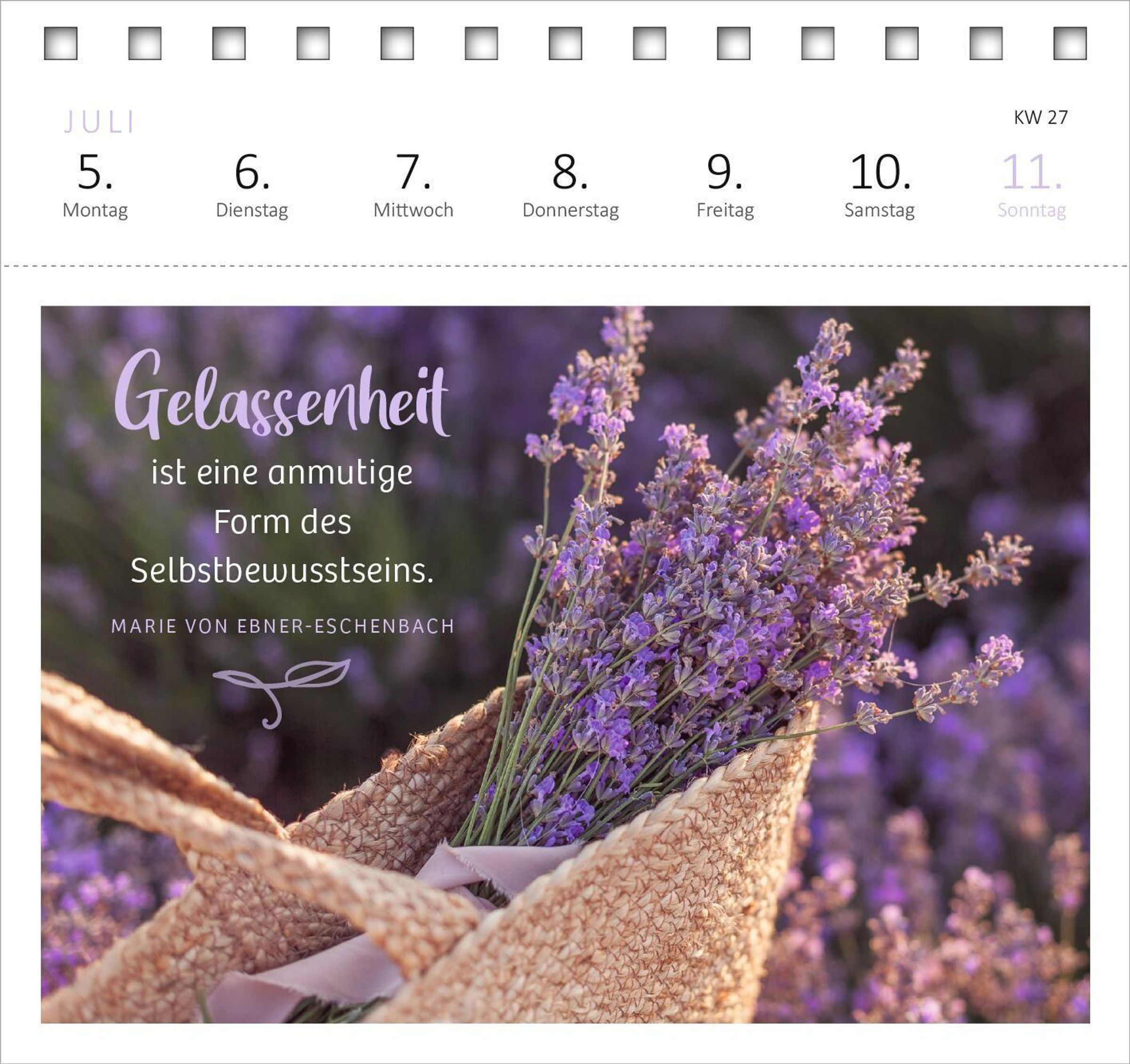 Ein tolles Geschenk für alle, die ihr Leben mit Leichtigkeit angehen möchten, Inspiration zur Entspannung und positive Affirmationen für ihren Alltag suchen. Der Kalender mit Postkarten ist eine Kraftquelle für die Seele - jedes Mal aufs Neue inspiriert dieser Wochenkalender 2027 mit Lebensweisheiten und Zitaten zu mehr innerer Stärke, Achtsamkeit und Dankbarkeit. Mit dem praktischen Wochenkalendarium behält man stets den Überblick, egal ob im Büro, Homeoffice oder zu Hause. Die Postkarten mit stimmungsvollen Fotografien lassen sich an der Perforation heraustrennen und können so an liebe Menschen verschickt werden.