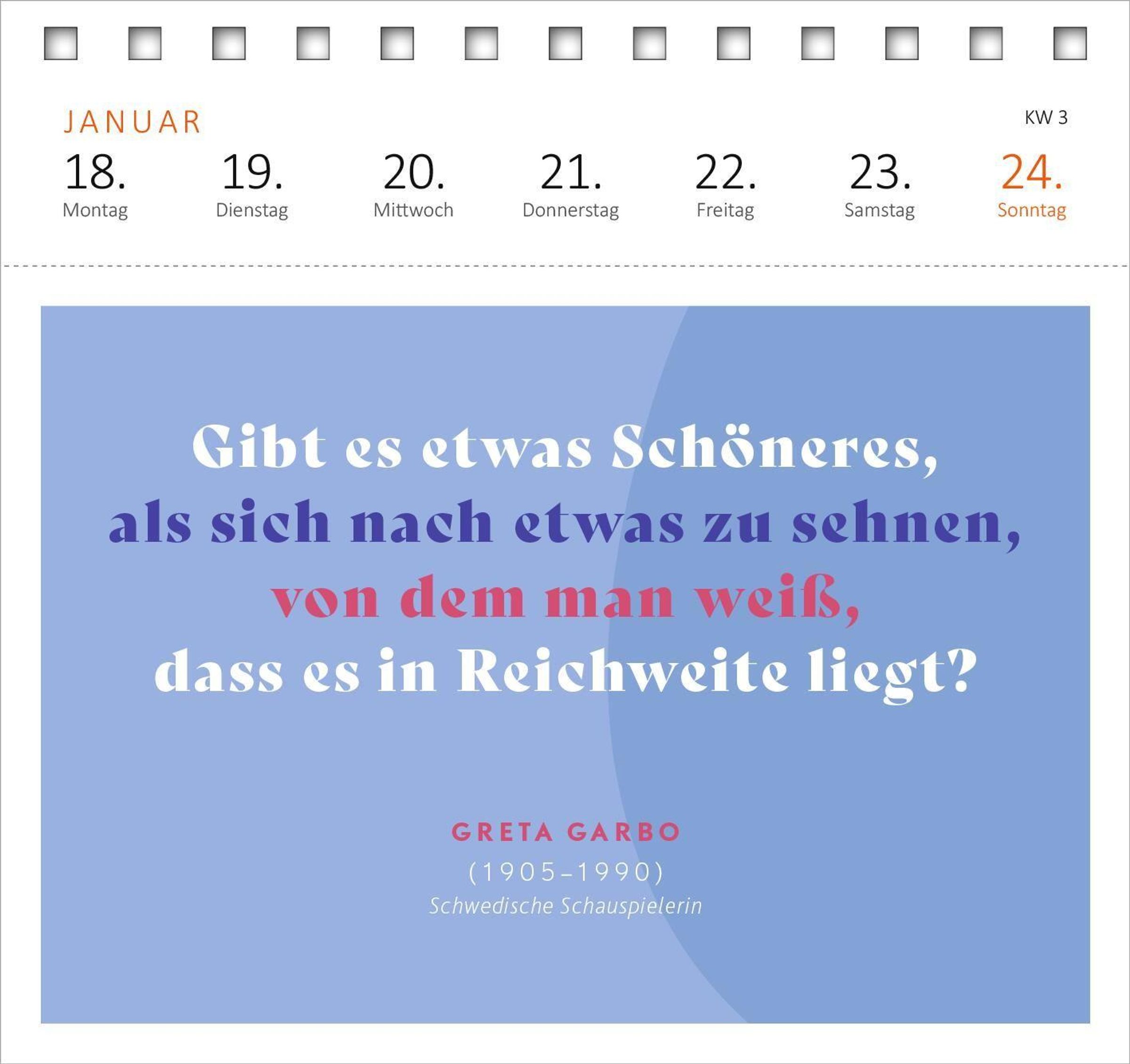 - Aufstellkalender in modernem Design: Kluge Worte auf ansprechend gestalteten Postkarten spenden Motivation und Empowerment