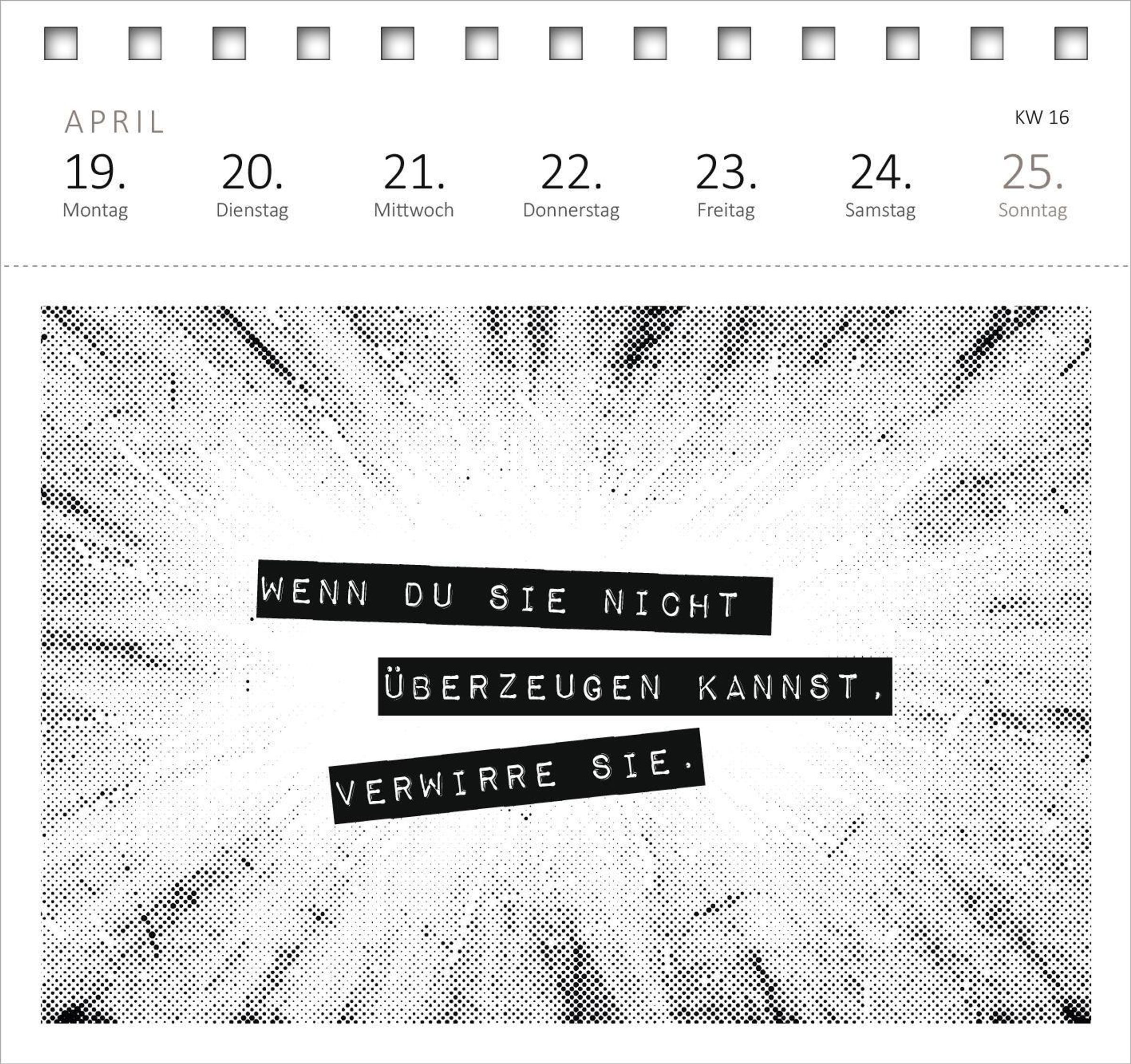 - Aufstellkalender gegen Montagsblues: Böse und ironische Sprüche auf cool gestalteten Postkarten schenken kleine Glücksmomente an jedem Tag
