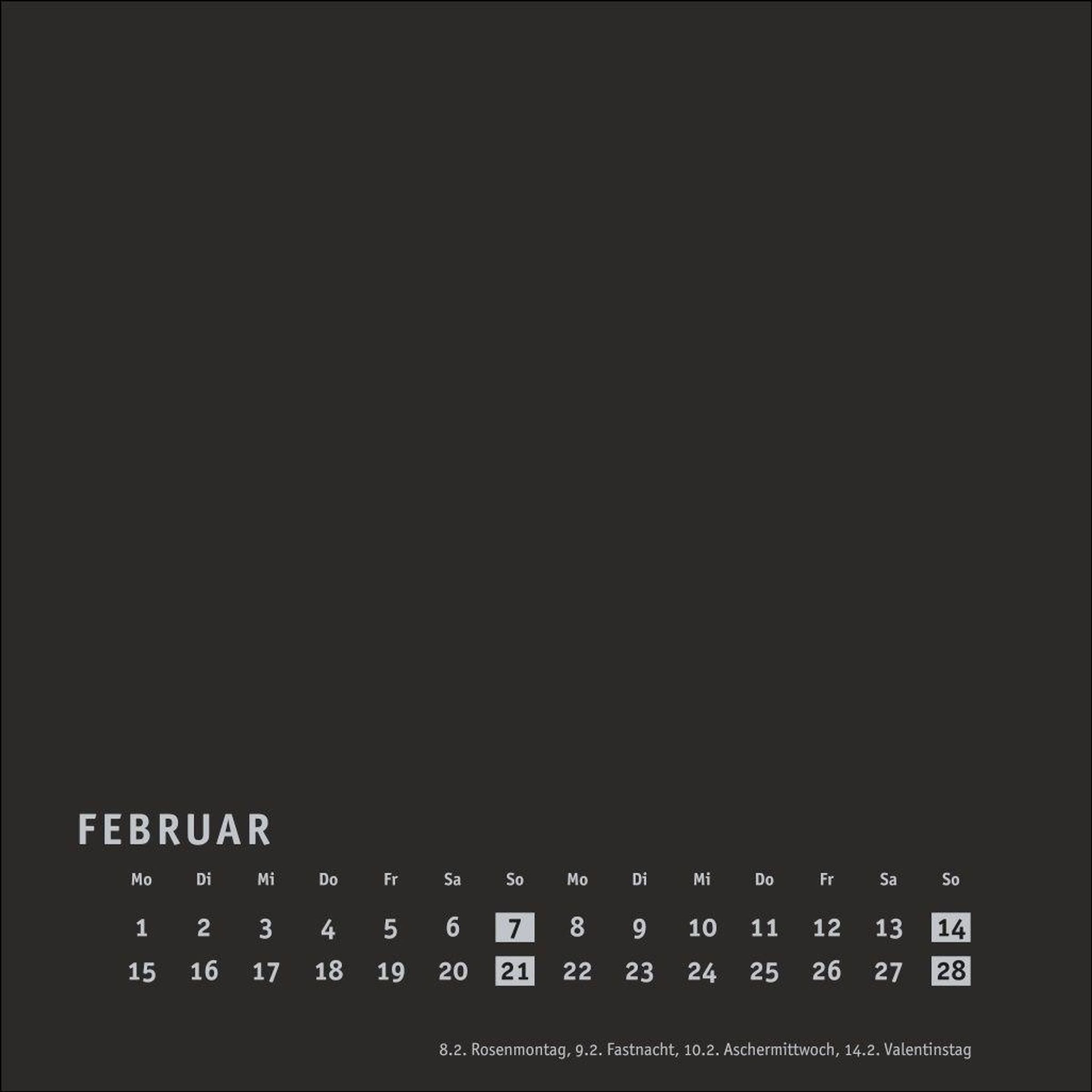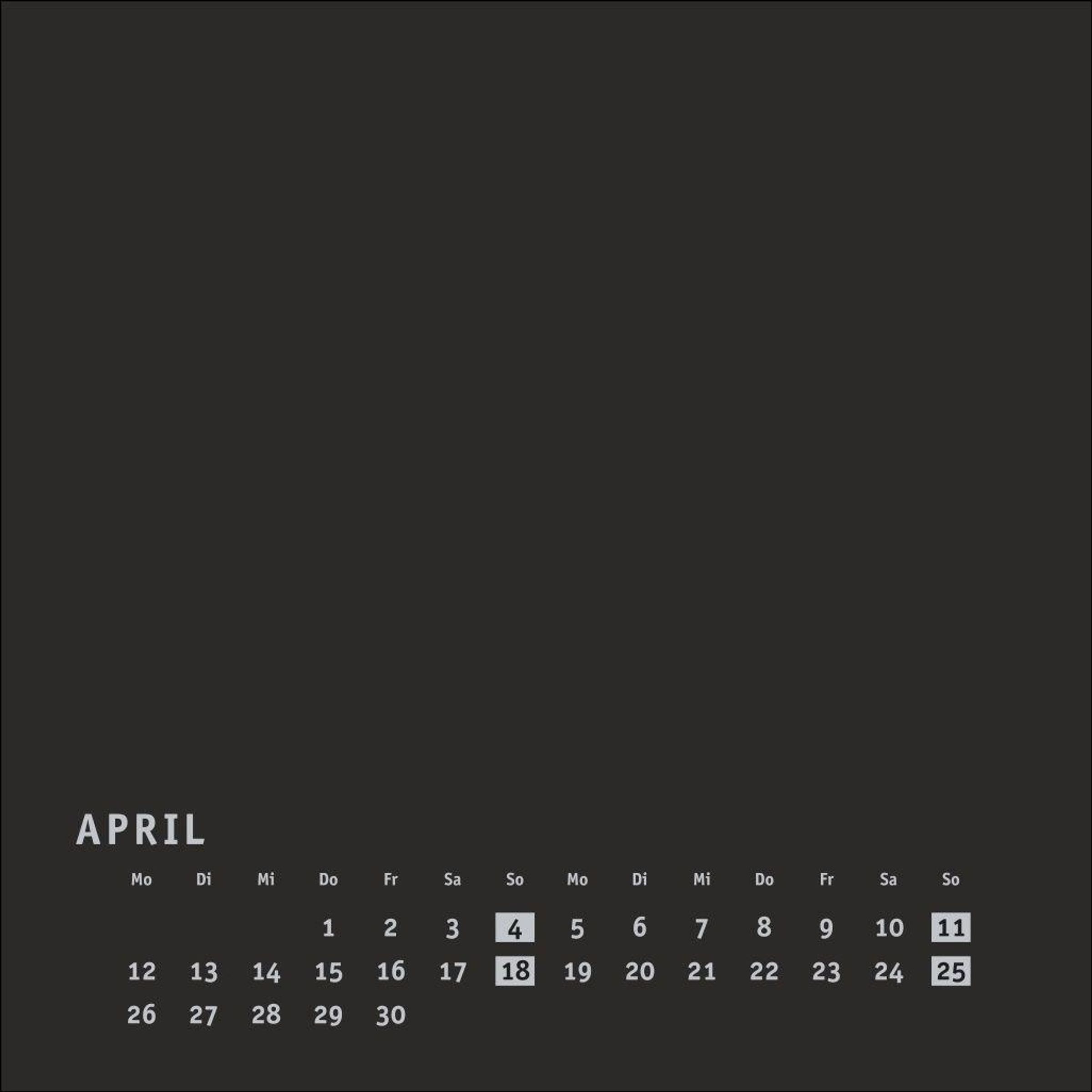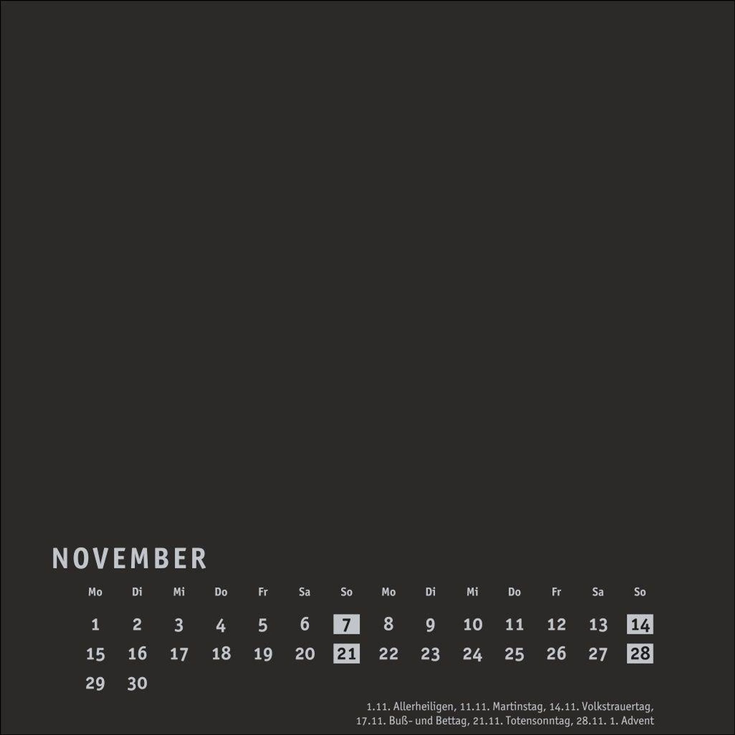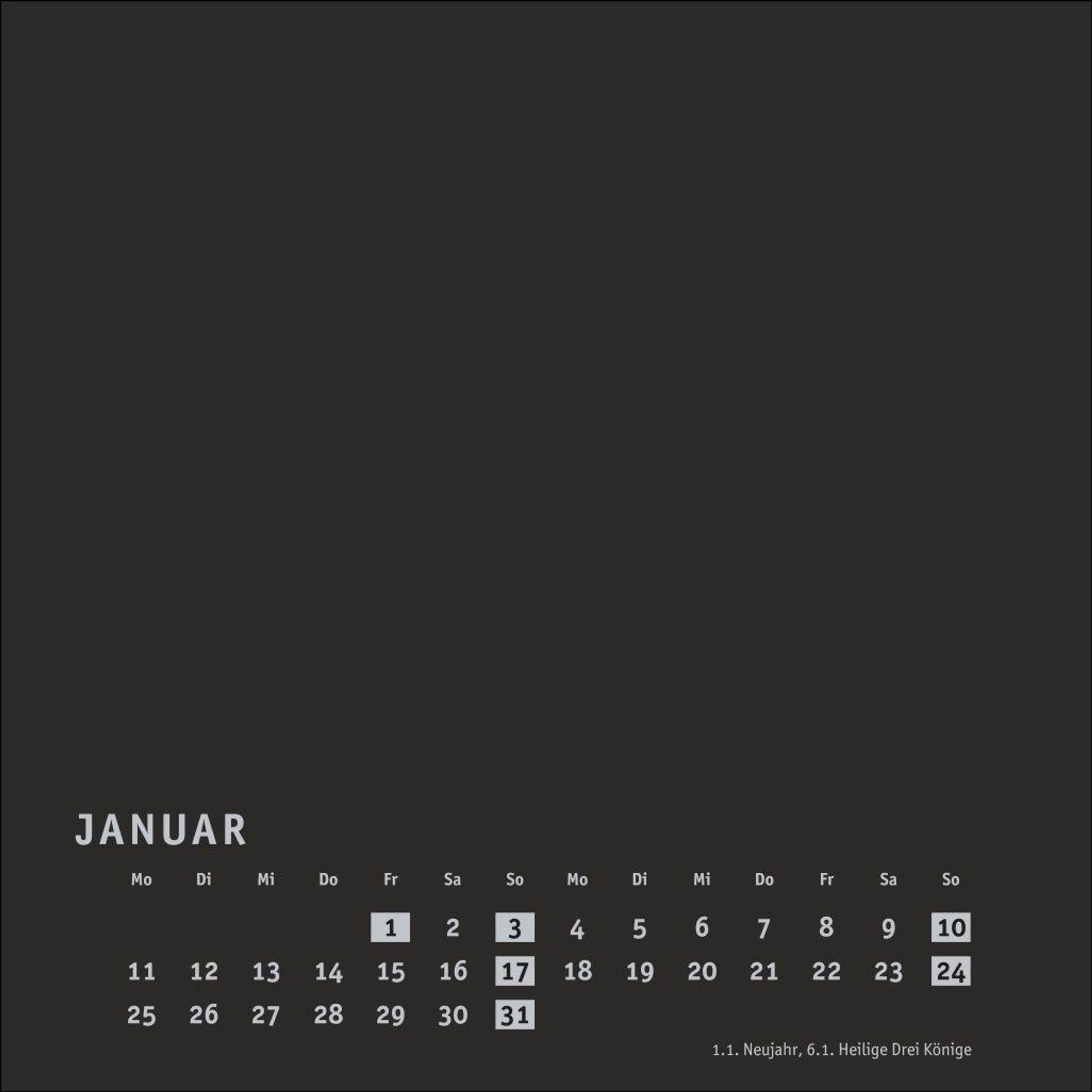Neutraler Monatskalender (Format 17, 5 x 17, 5 cm) in edlem Schwarz und auf hochwertigem Karton