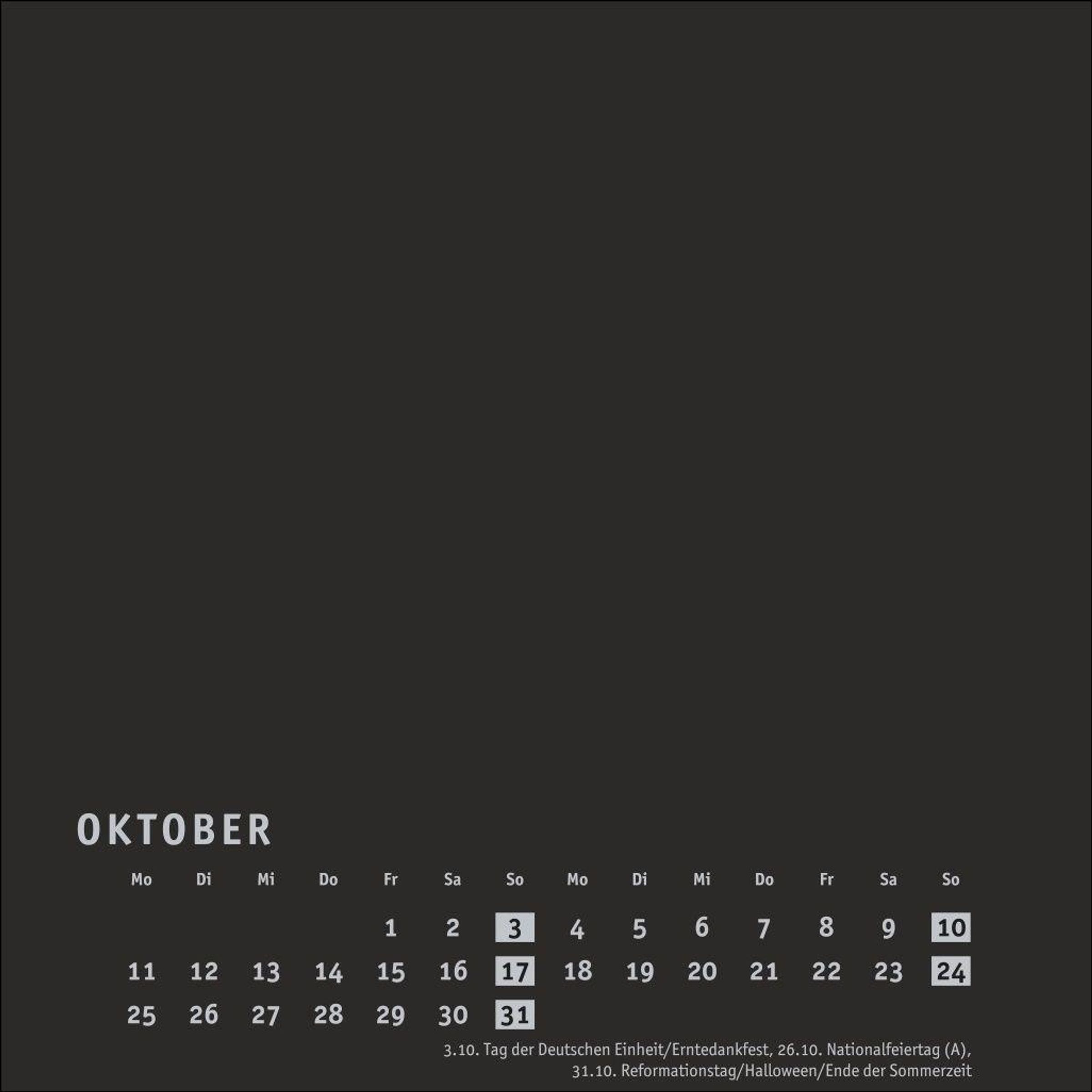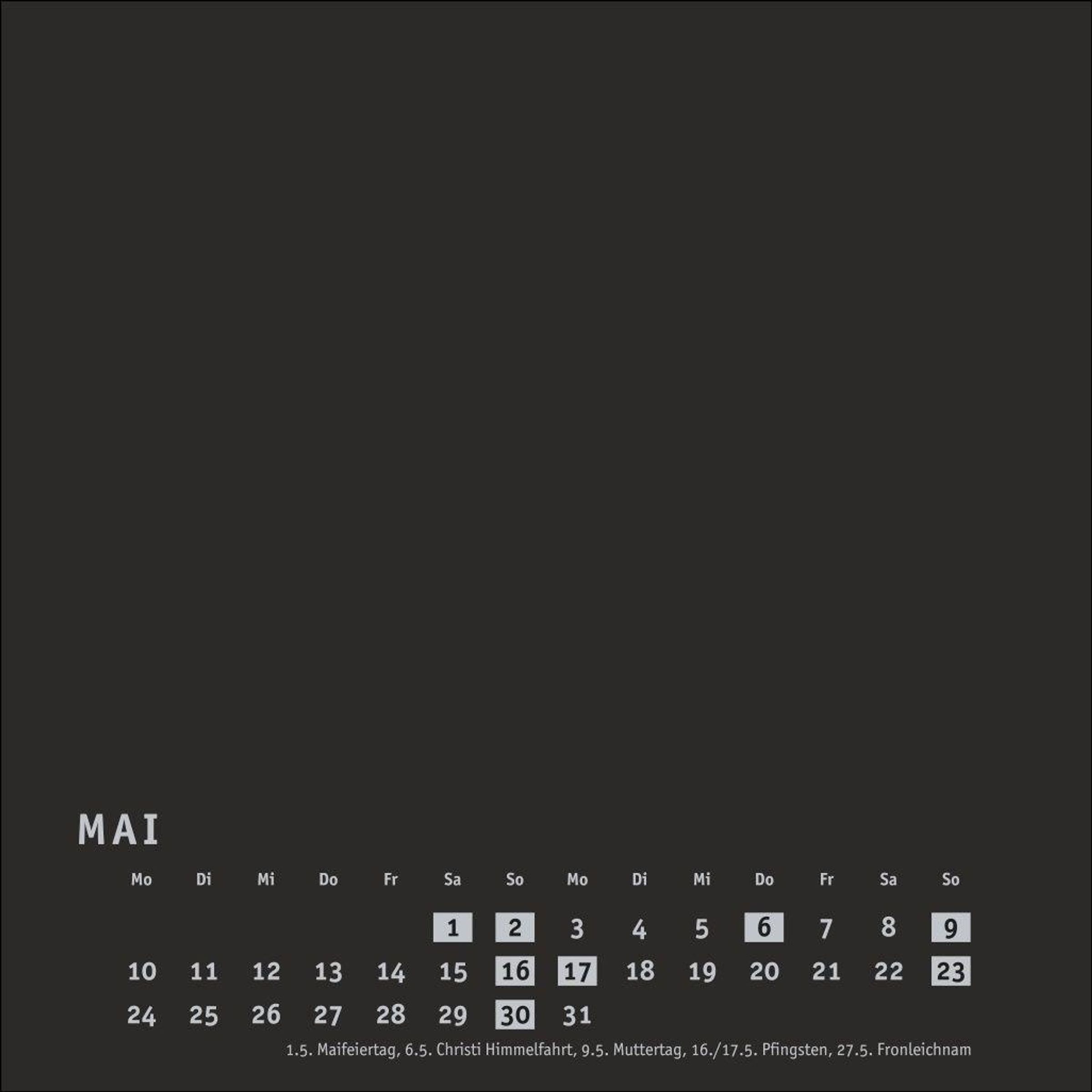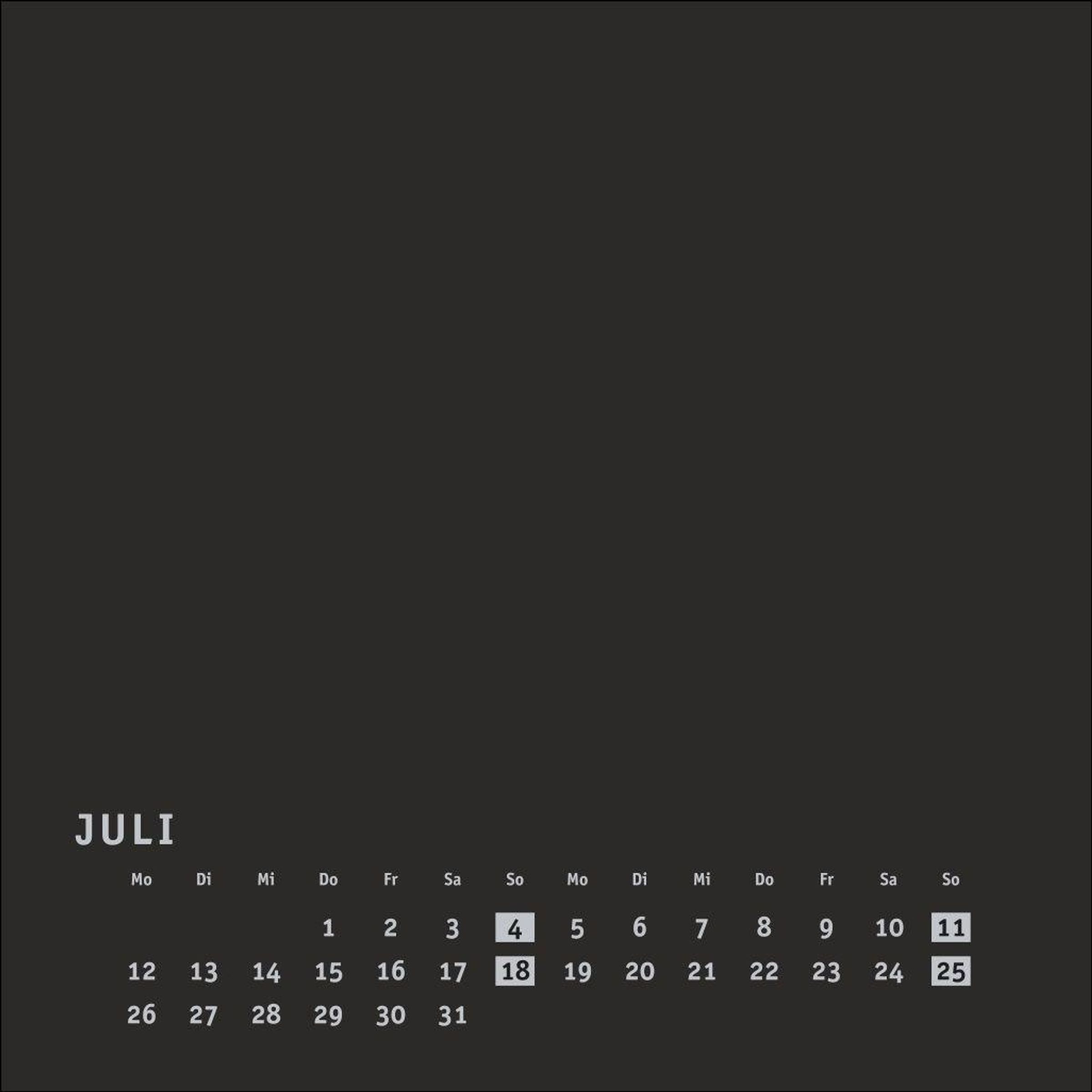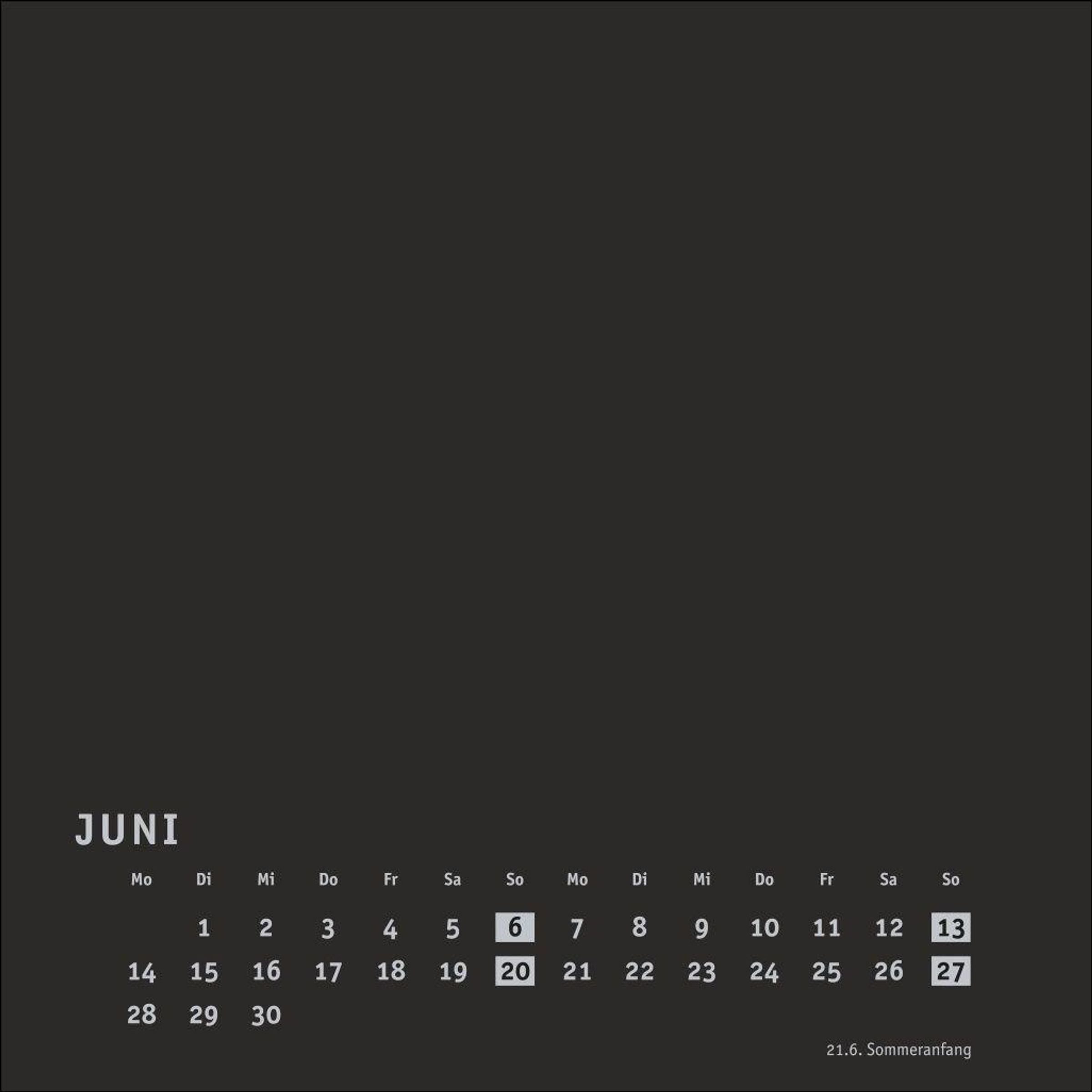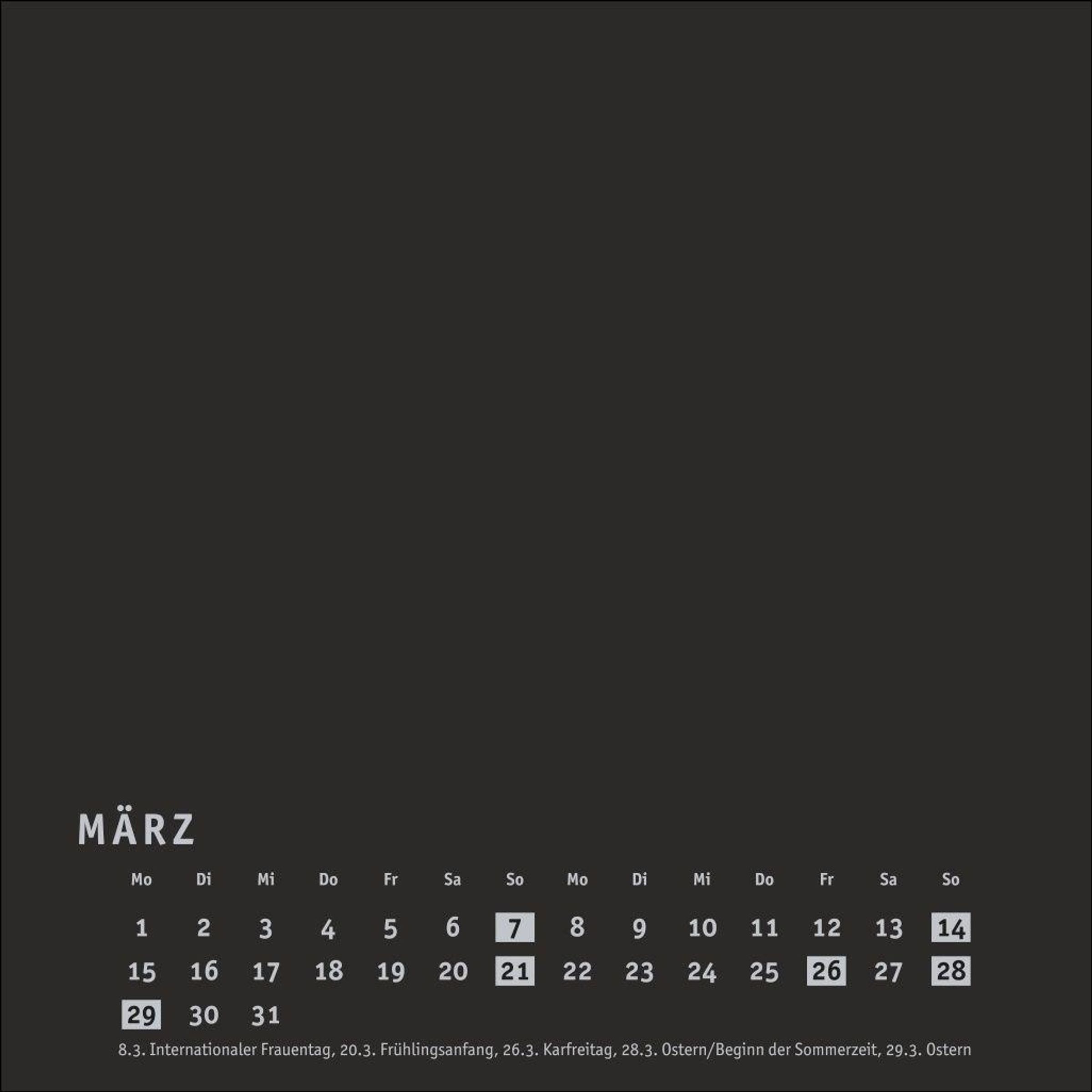 Neutraler Monatskalender (Format 17, 5 x 17, 5 cm) in edlem Schwarz und auf hochwertigem Karton