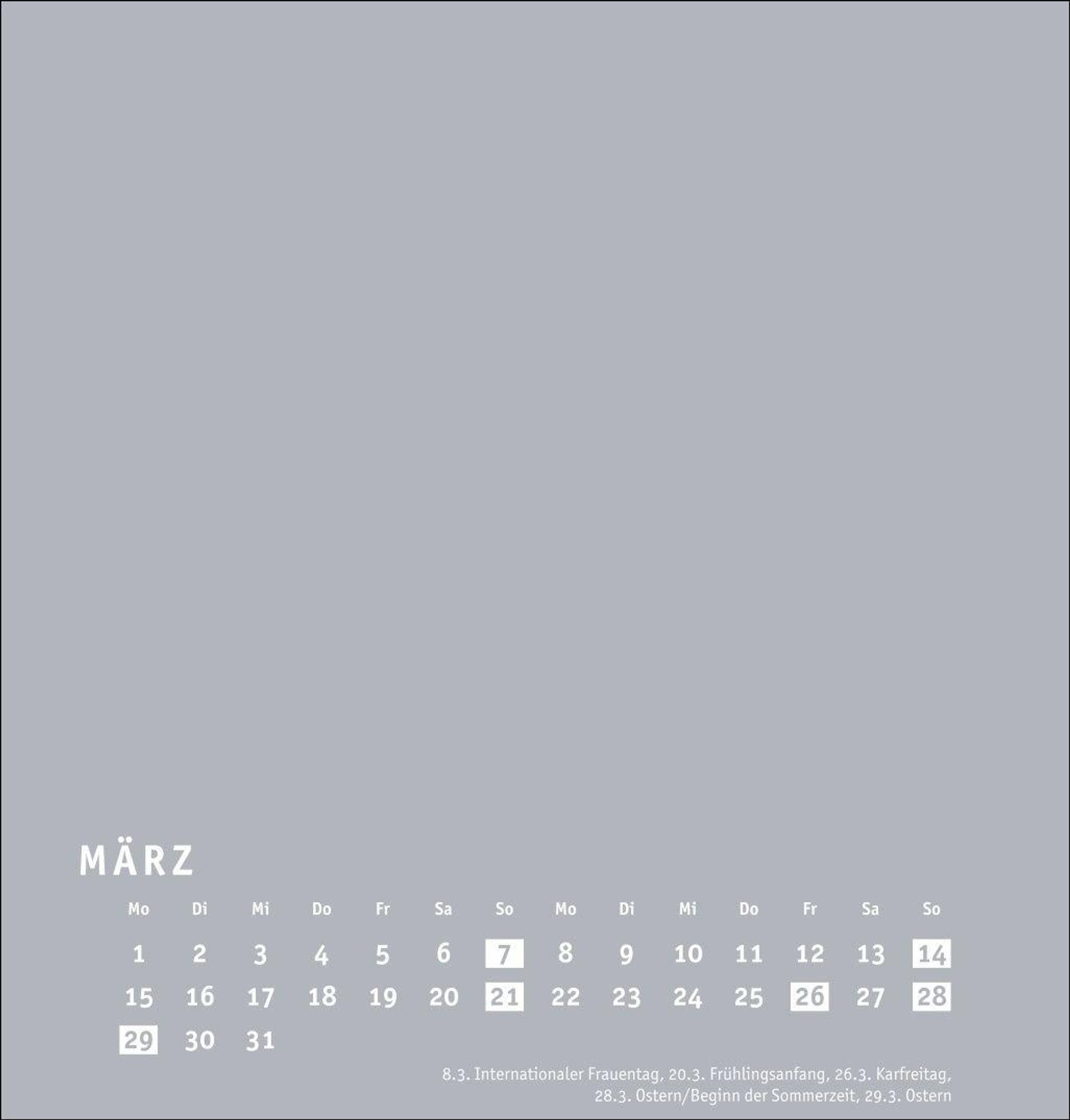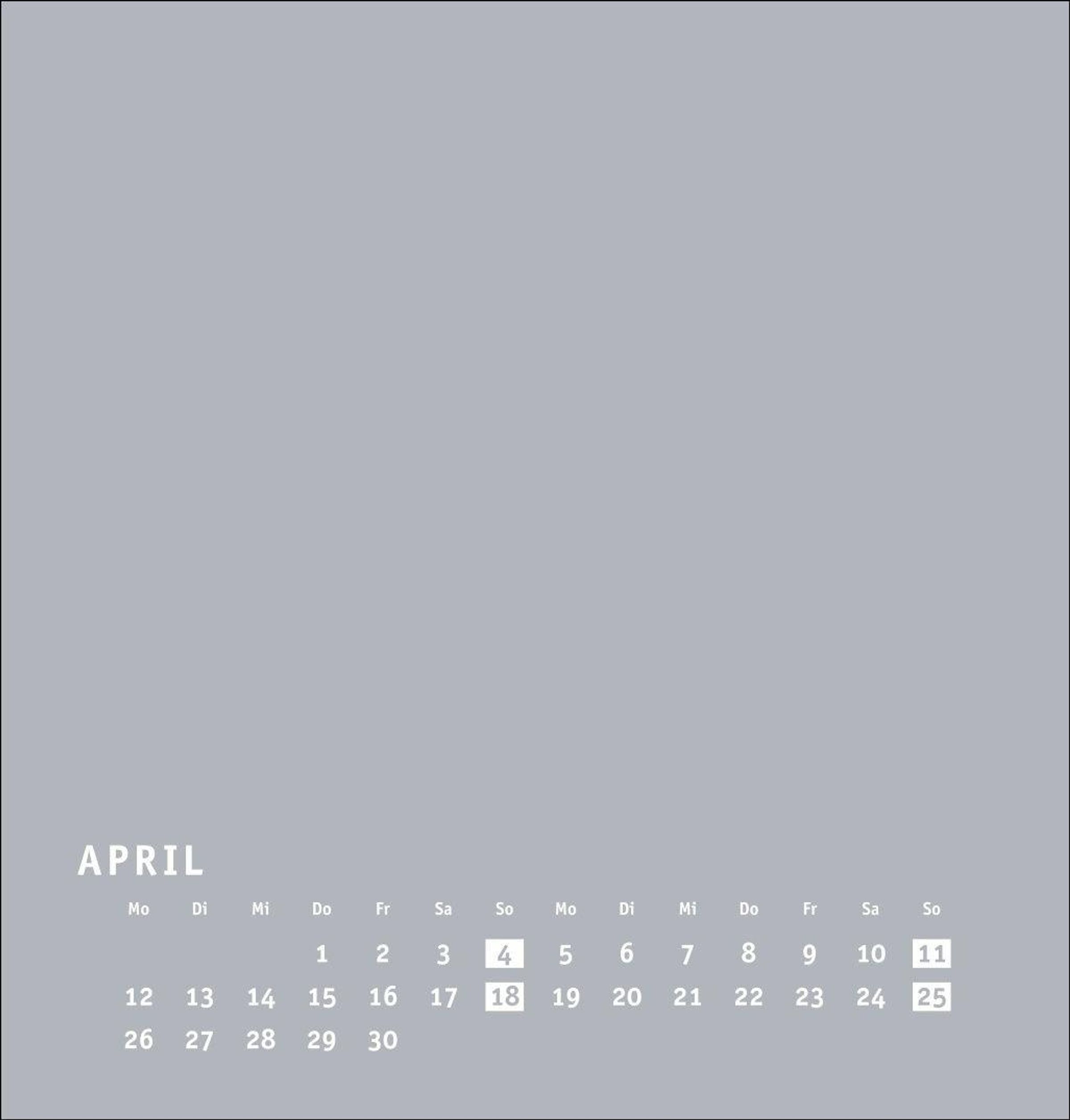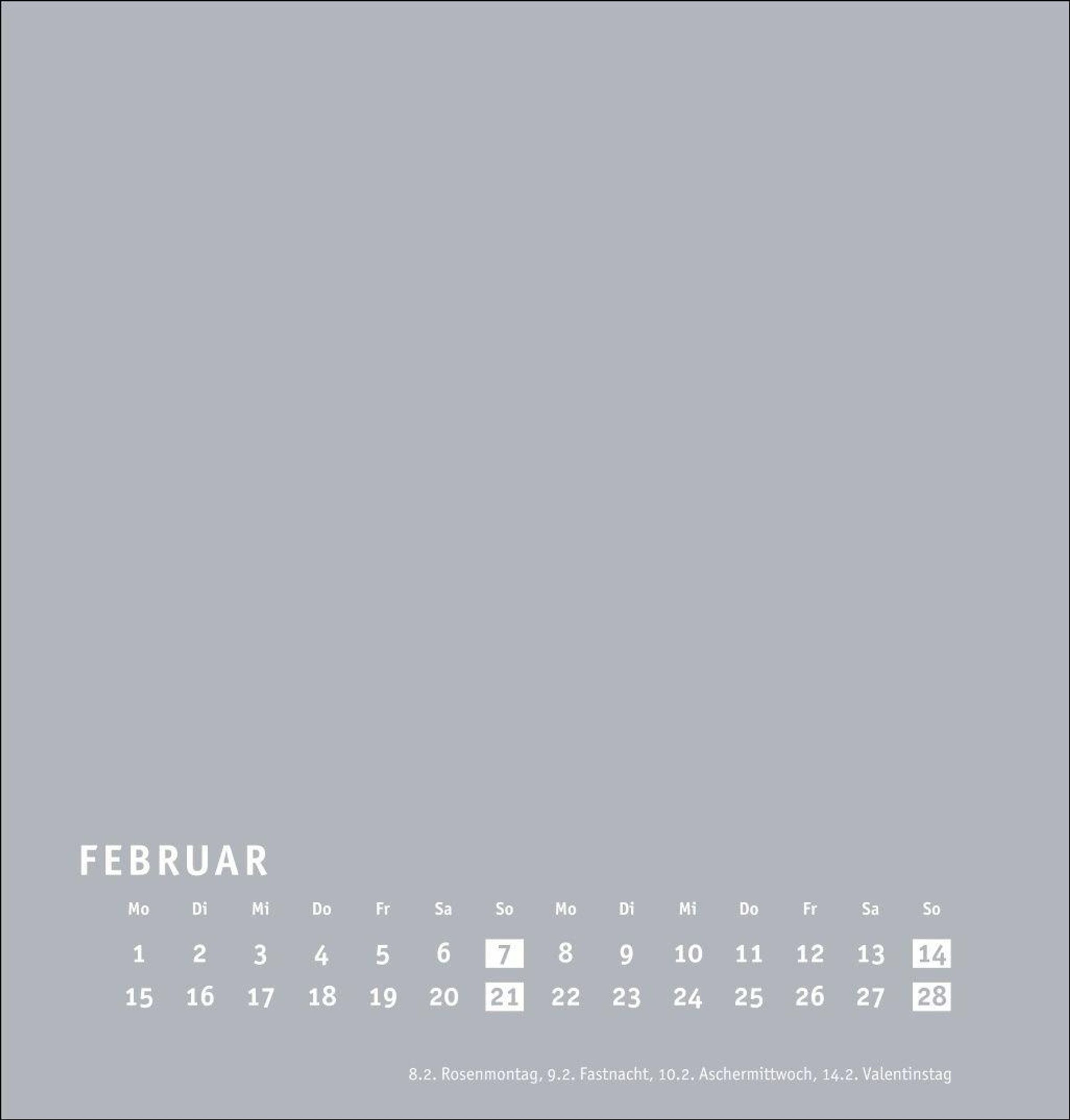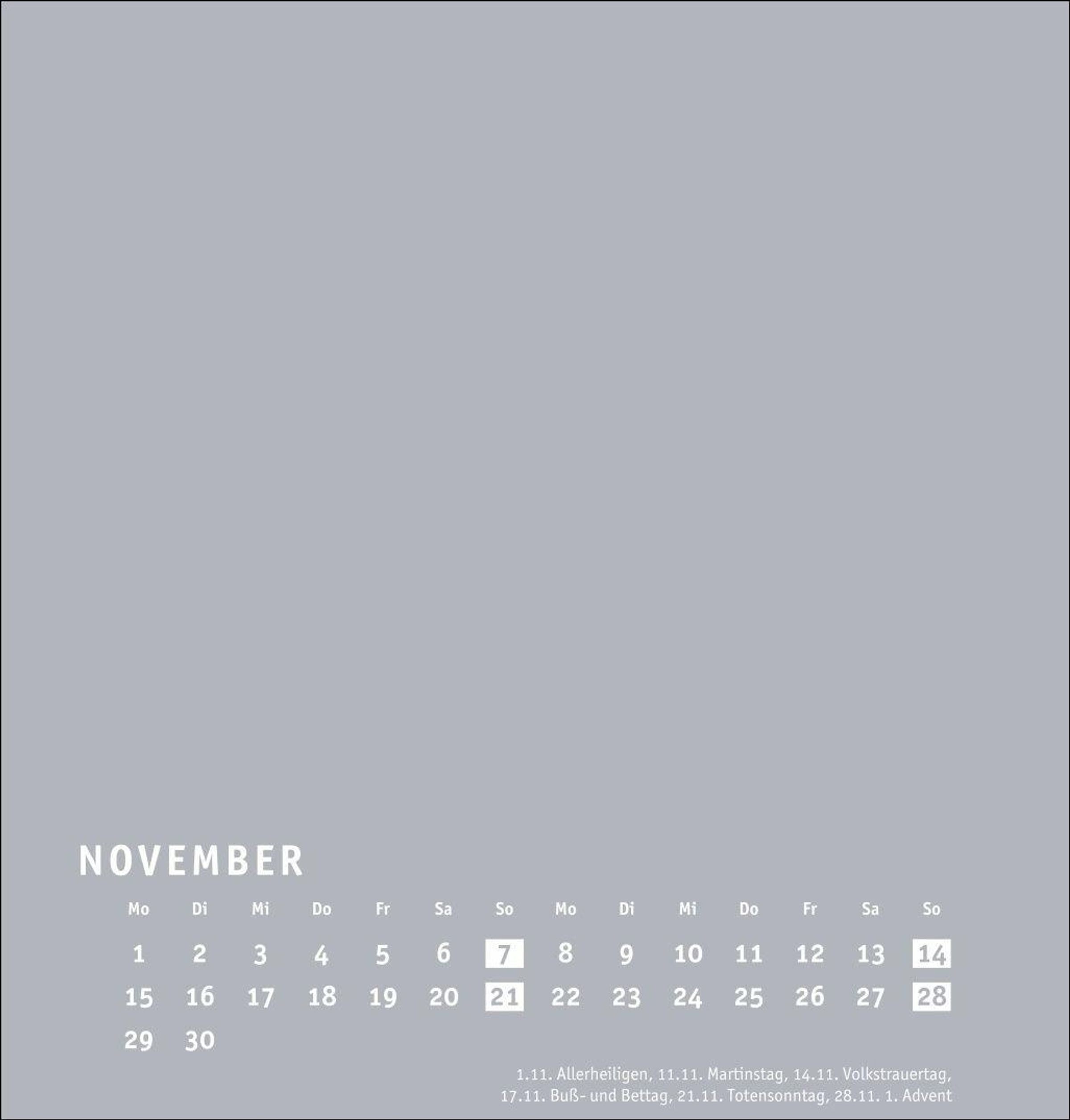 Neutraler Monatskalender (21 x 22 cm) in edlem Silbergrau und auf hochwertigem Karton