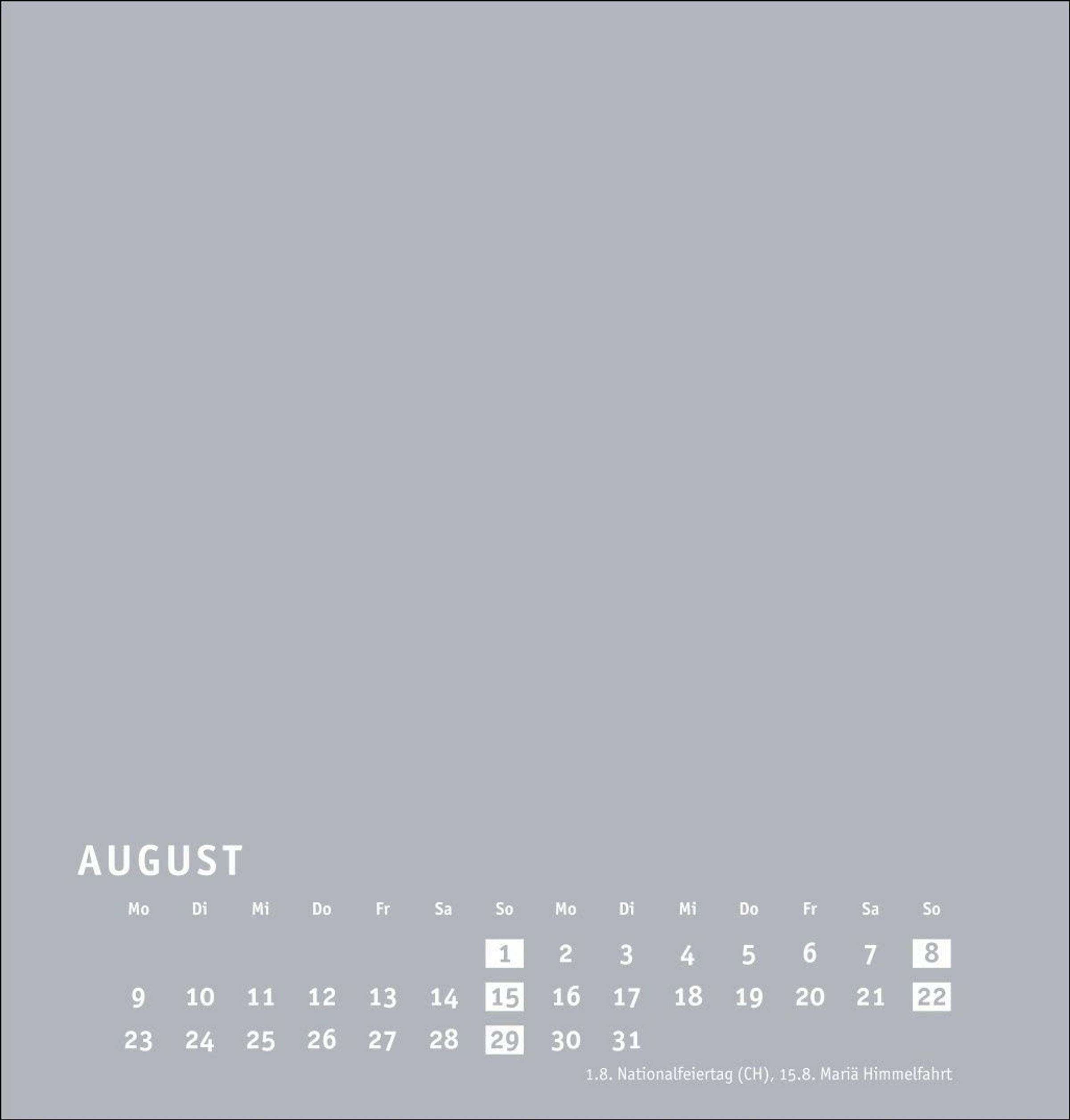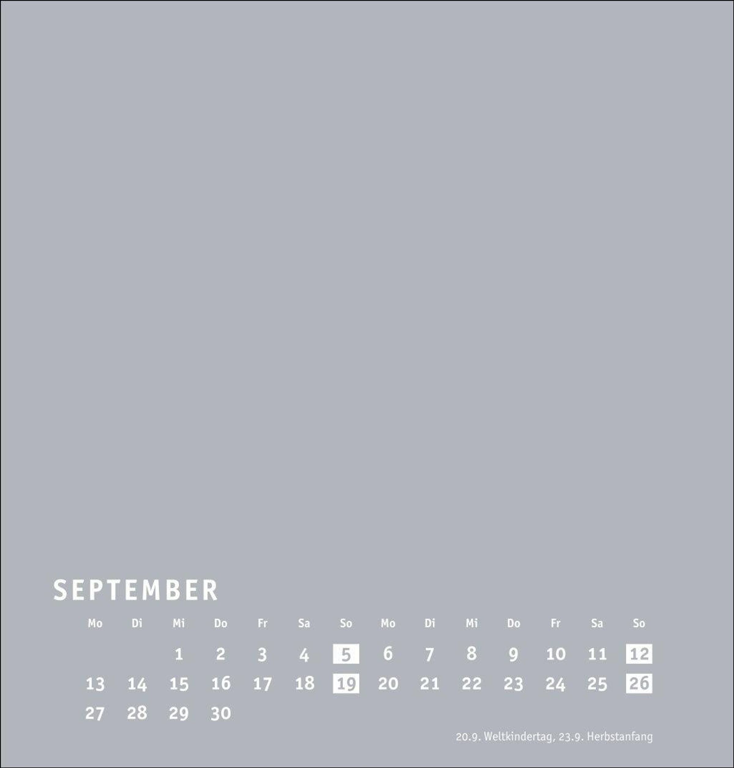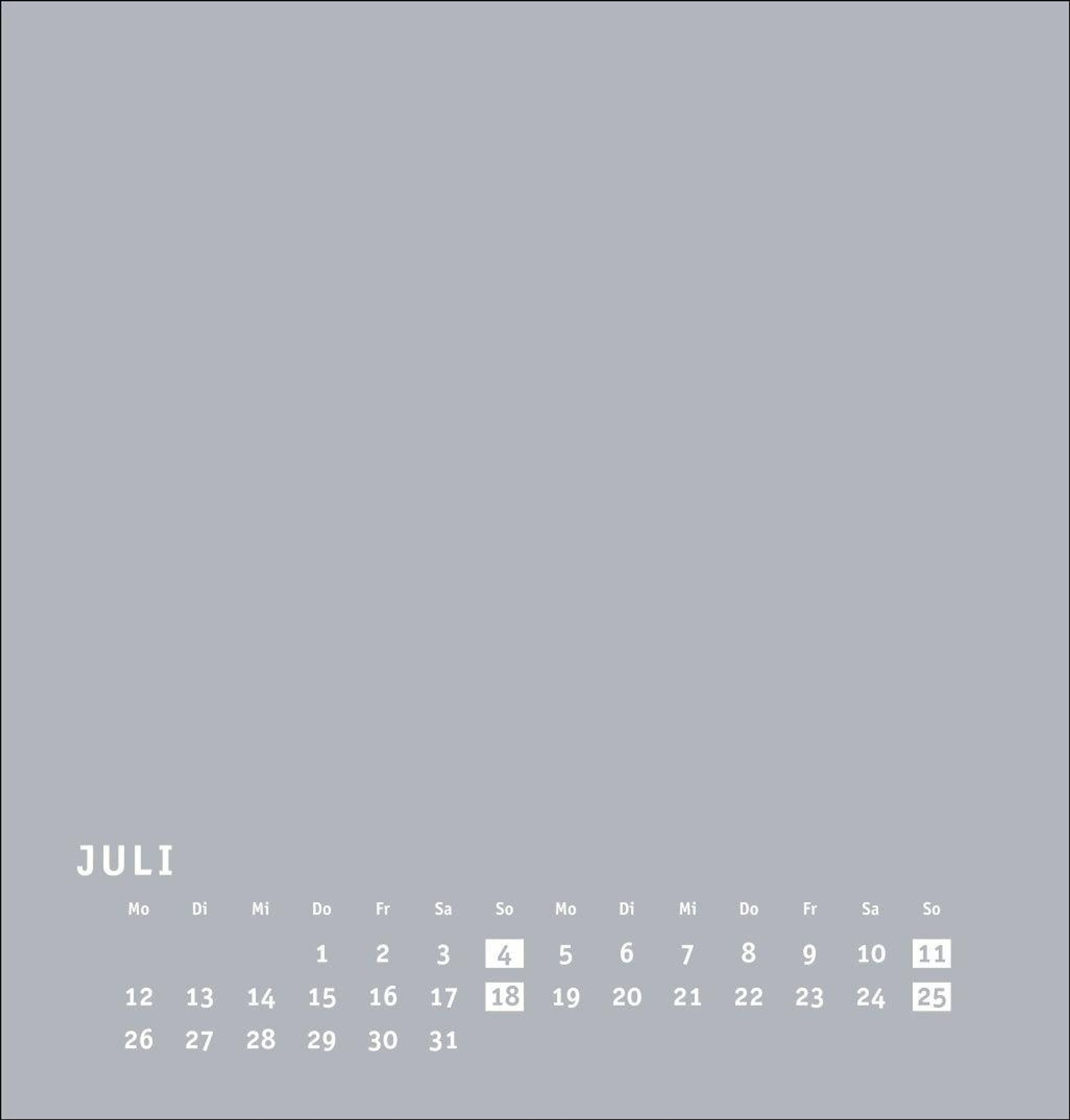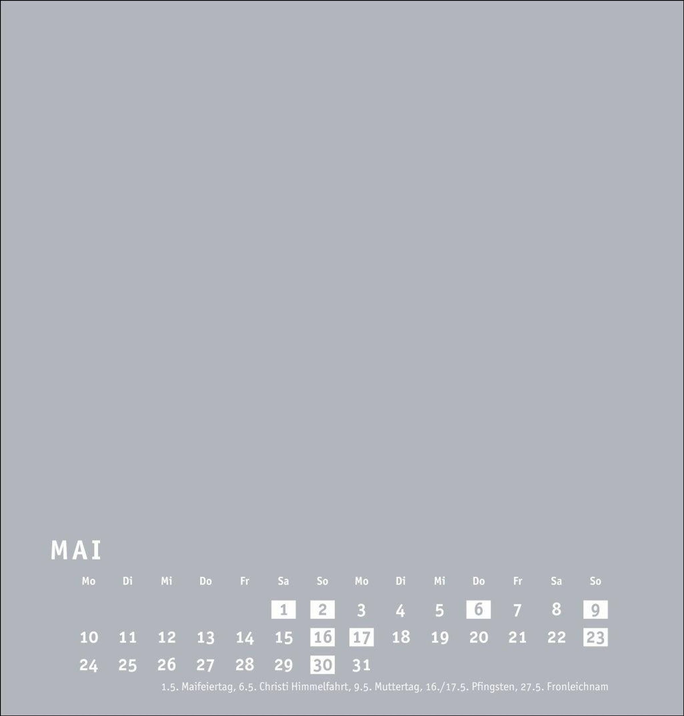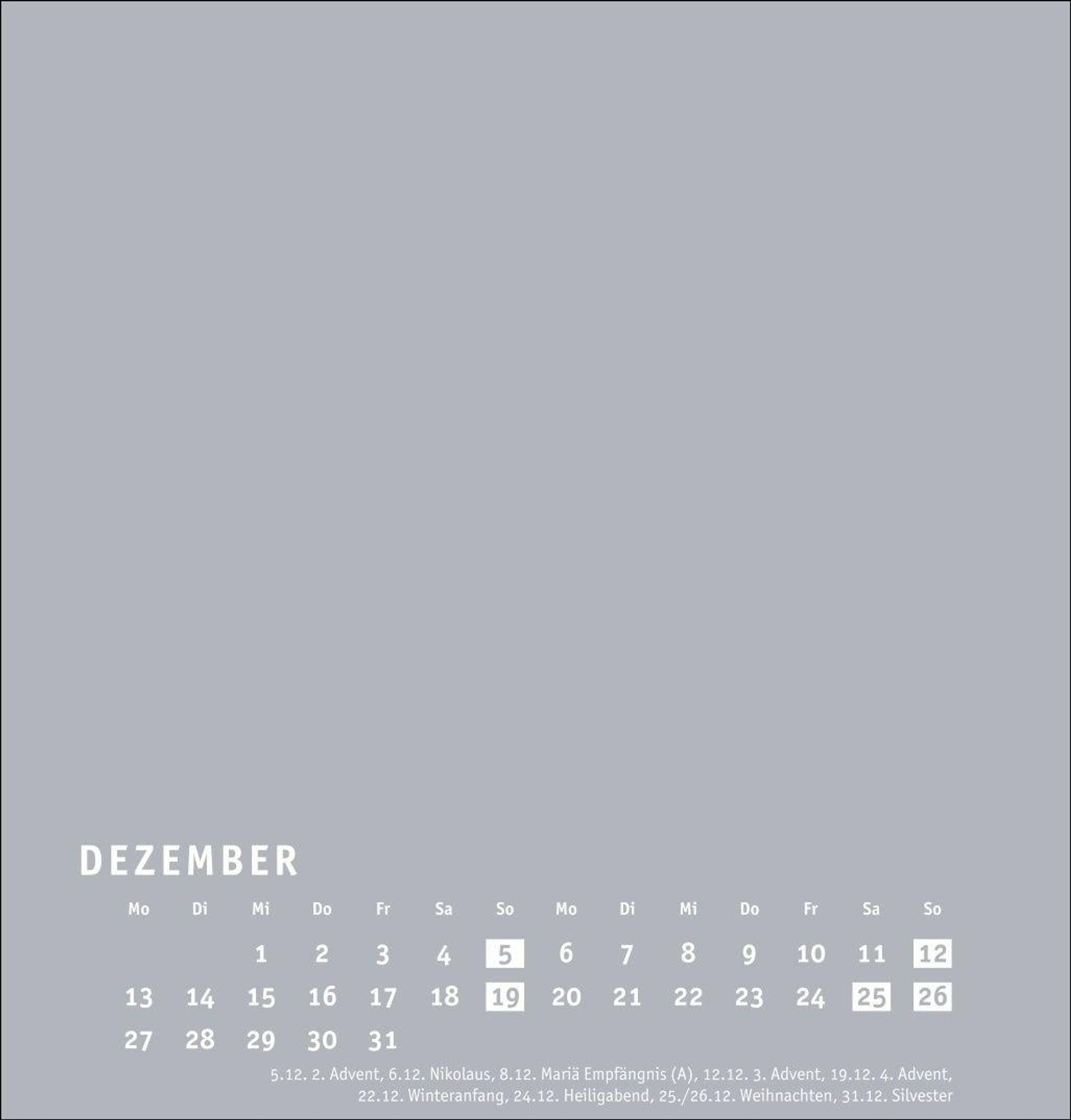 Neutraler Monatskalender (21 x 22 cm) in edlem Silbergrau und auf hochwertigem Karton