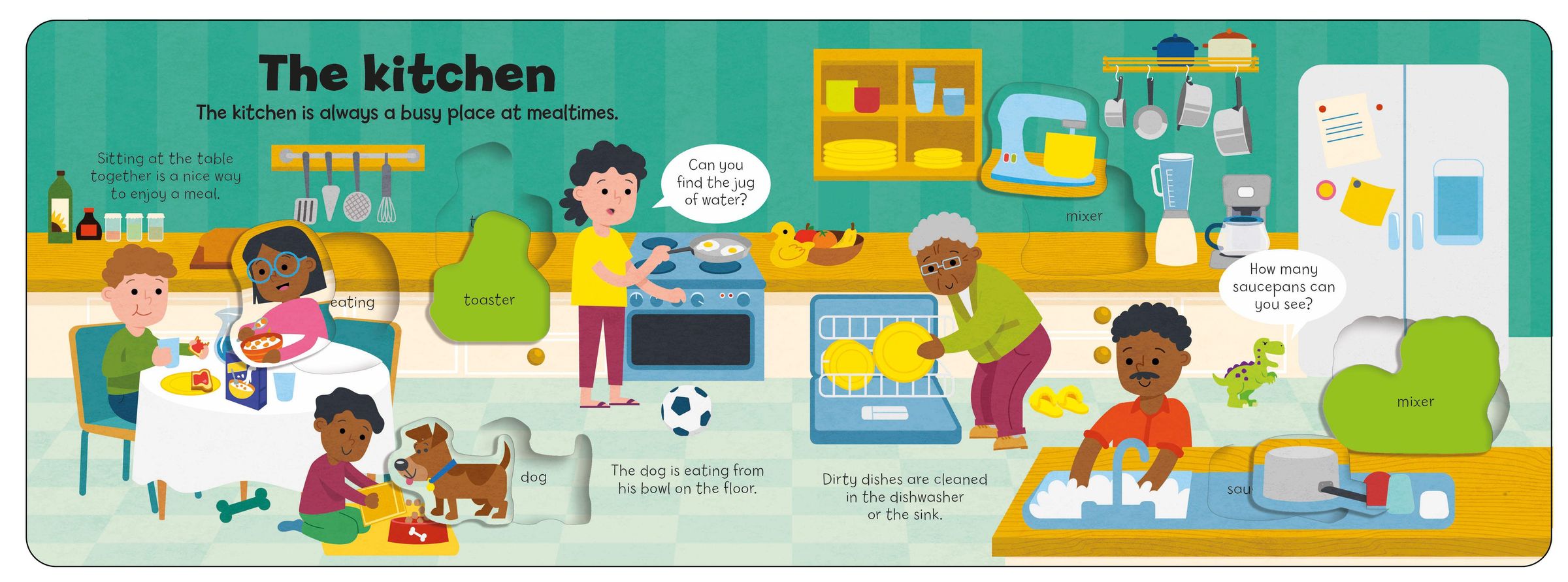 With fun facts about the different rooms in the house, from the busy kitchen and vibrant bedroom, to the bathroom, and much more, this book is the ideal tool to introduce young children to various areas around the home. There are prompts on the pages, as well as word labels to help children work out where to put the pieces which is a great way of encouraging hand-eye coordination, fine motor skills and problem solving.