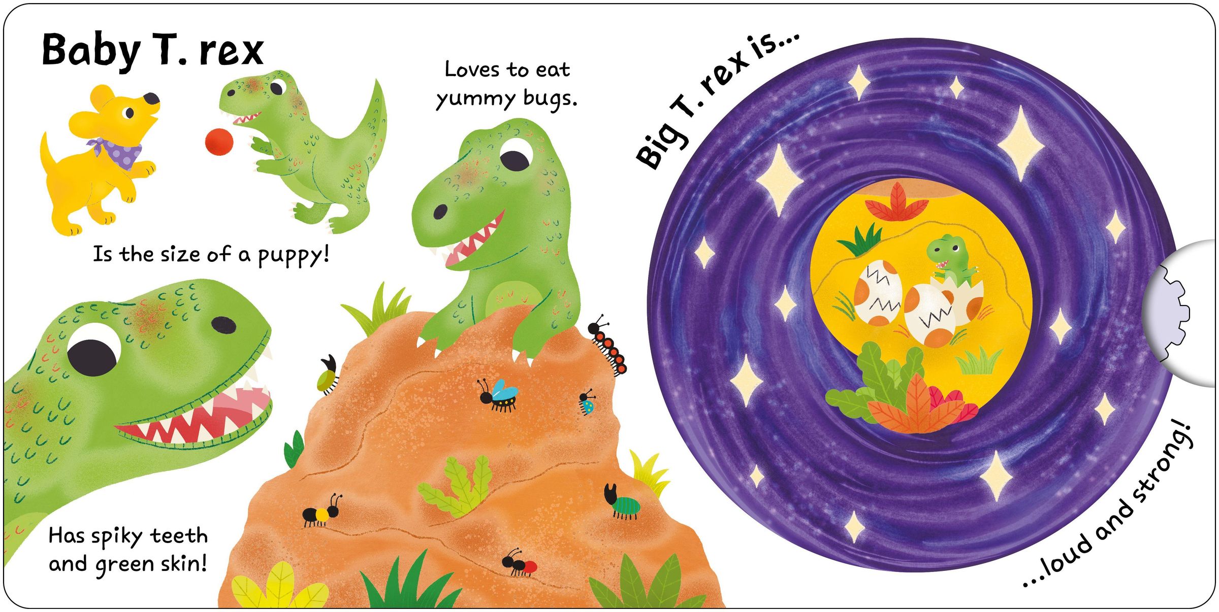 Toddlers will delight in spinning the wheel to magically turn baby dinosaurs into adult dinosaurs in this roar-some dinosaur book.