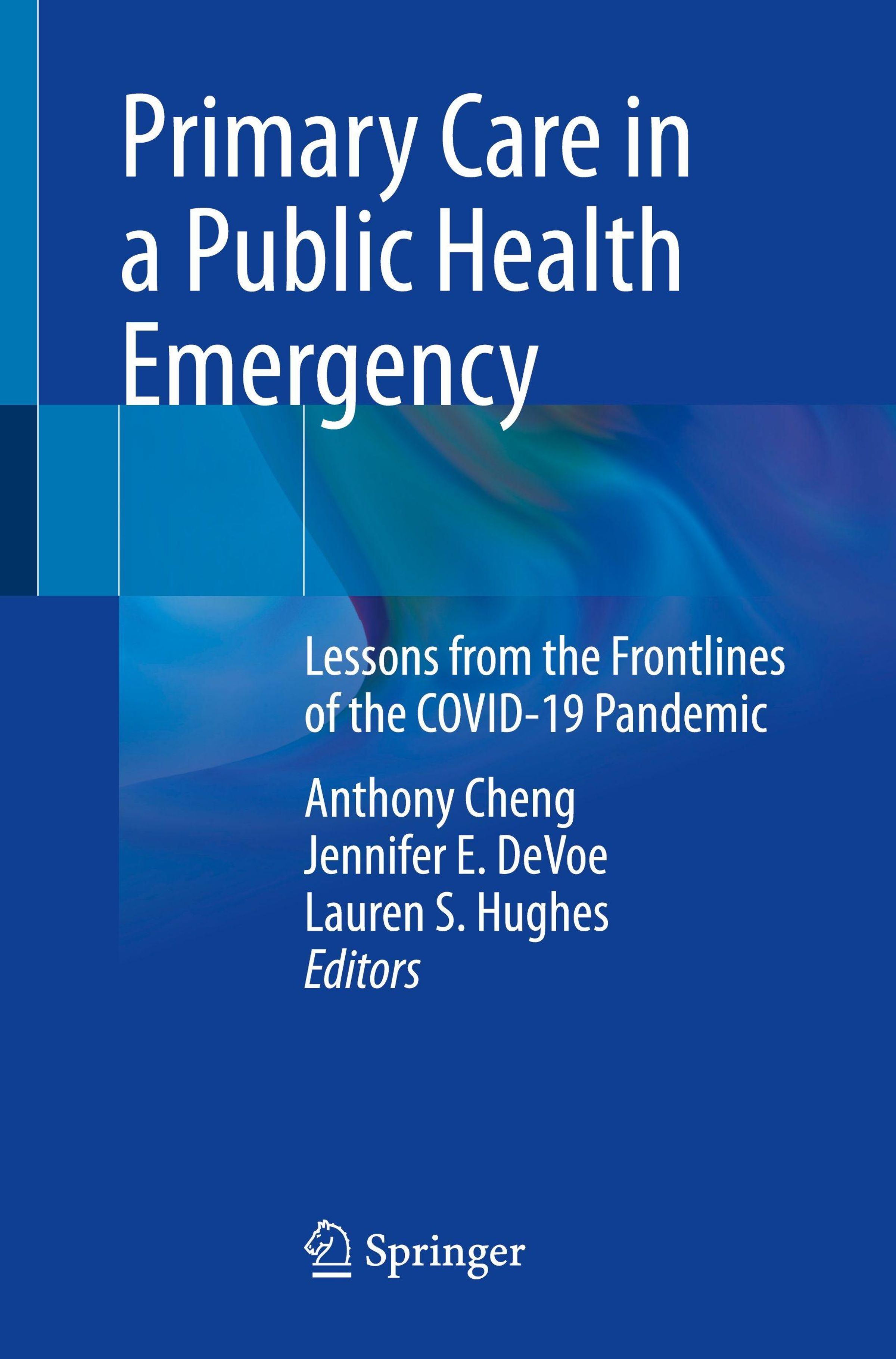 "Primary Care in a Public Health Emergency. Lessons from COVID-19 frontlines. Autoren: Cheng, DeVoe, Hughes. Springer-Logo.", Buch