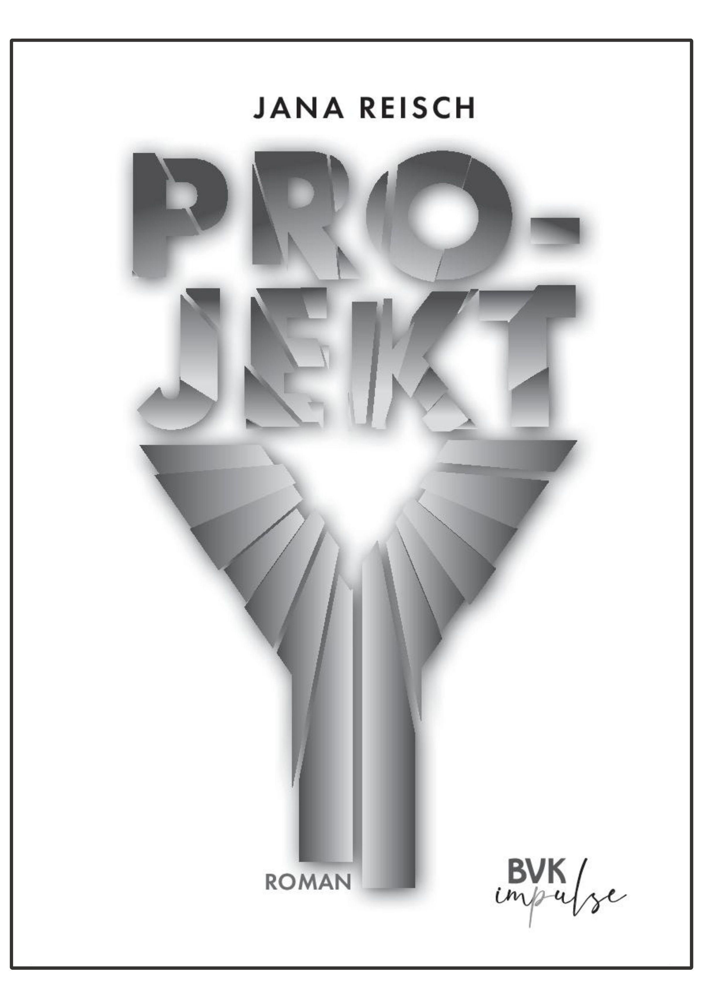"Jana Reisch: PROJEKT Y ROMAN BVK impulse" in roten und gelben Buchstaben auf dunklem Hintergrund., Buch