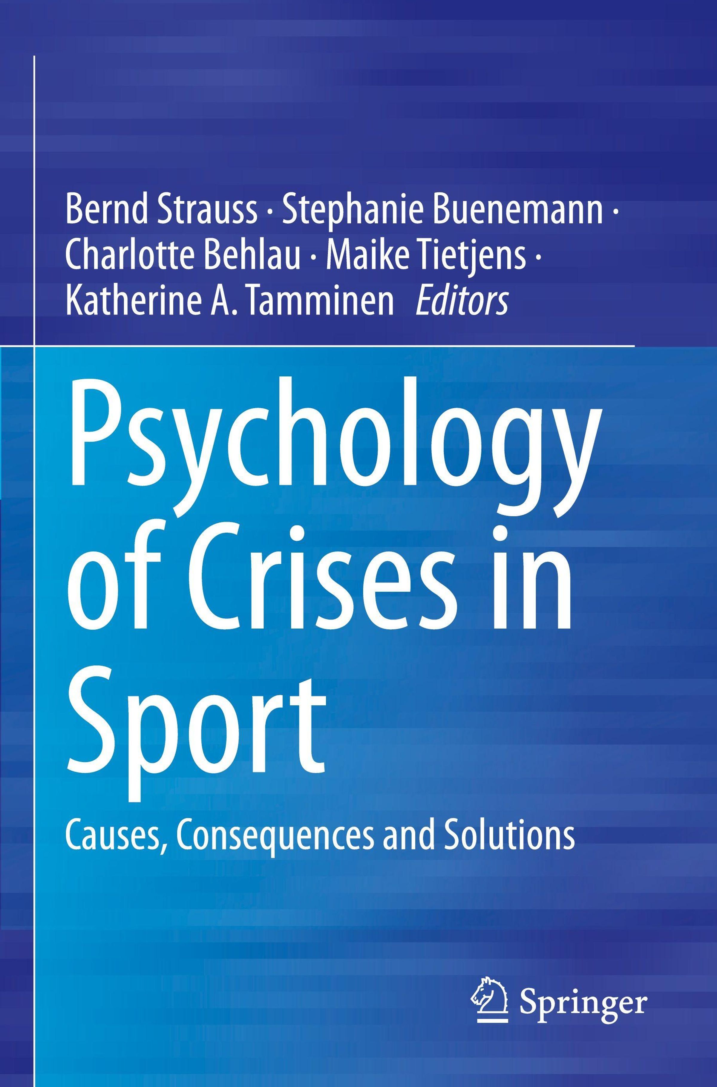 Text: "Psychology of Crises in Sport: Causes, Consequences and Solutions." Hintergrund: Blautöne, Springer-Logo unten rechts., Buch