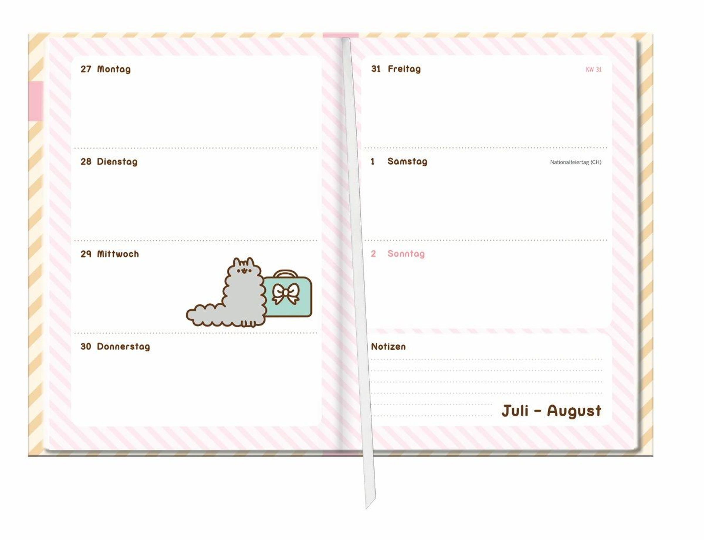 - 17 Monate ab August 2026. Praktischer Kalender für Schule und Uni mit flexiblem Einband und Lesebändchen. Buchkalender mit niedlichen Katzen-Cartoons.