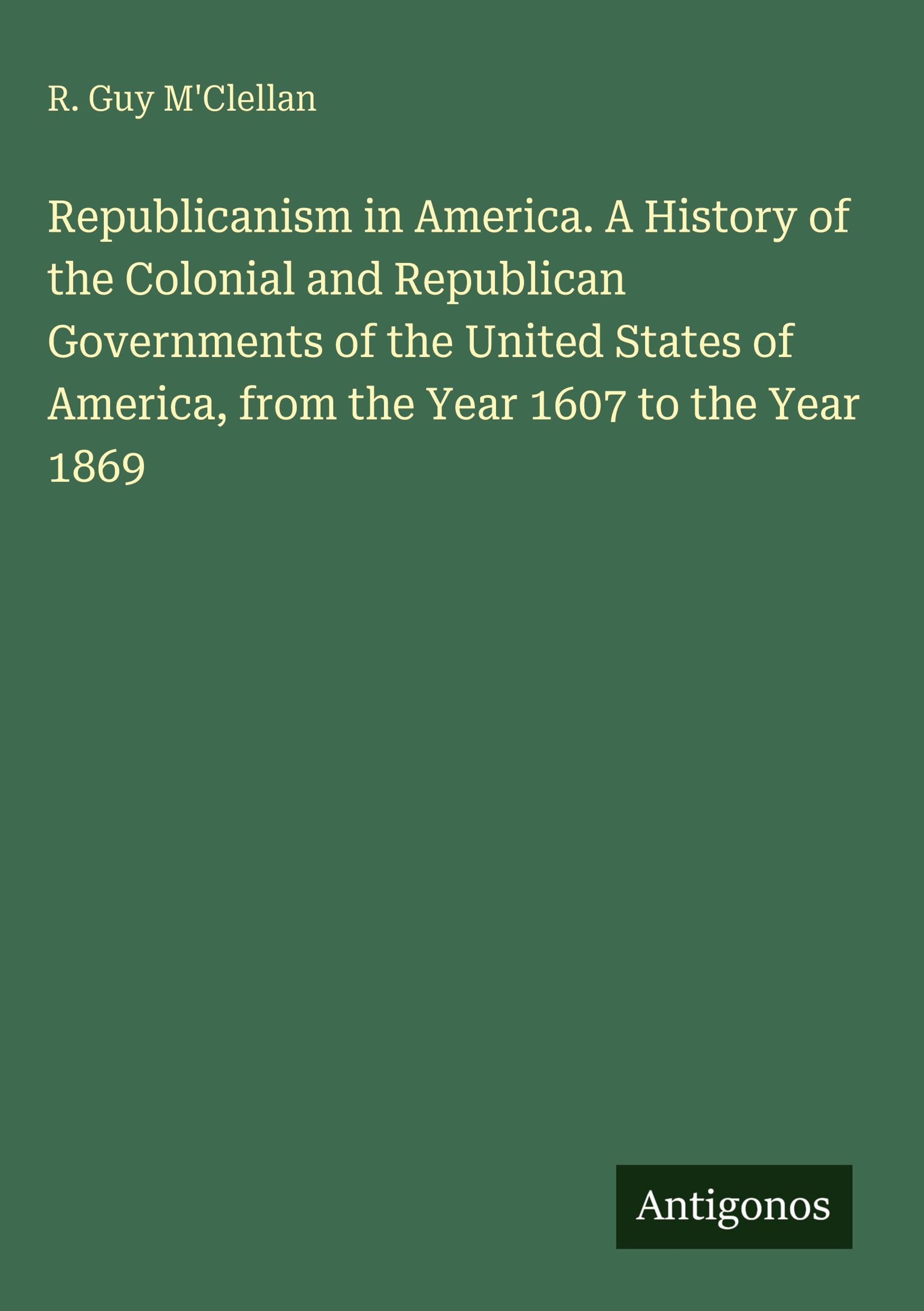 R. Guy M'Clellan: Republicanism in America. A History of the Colonial and Republican Governments of the United..., Gebunden