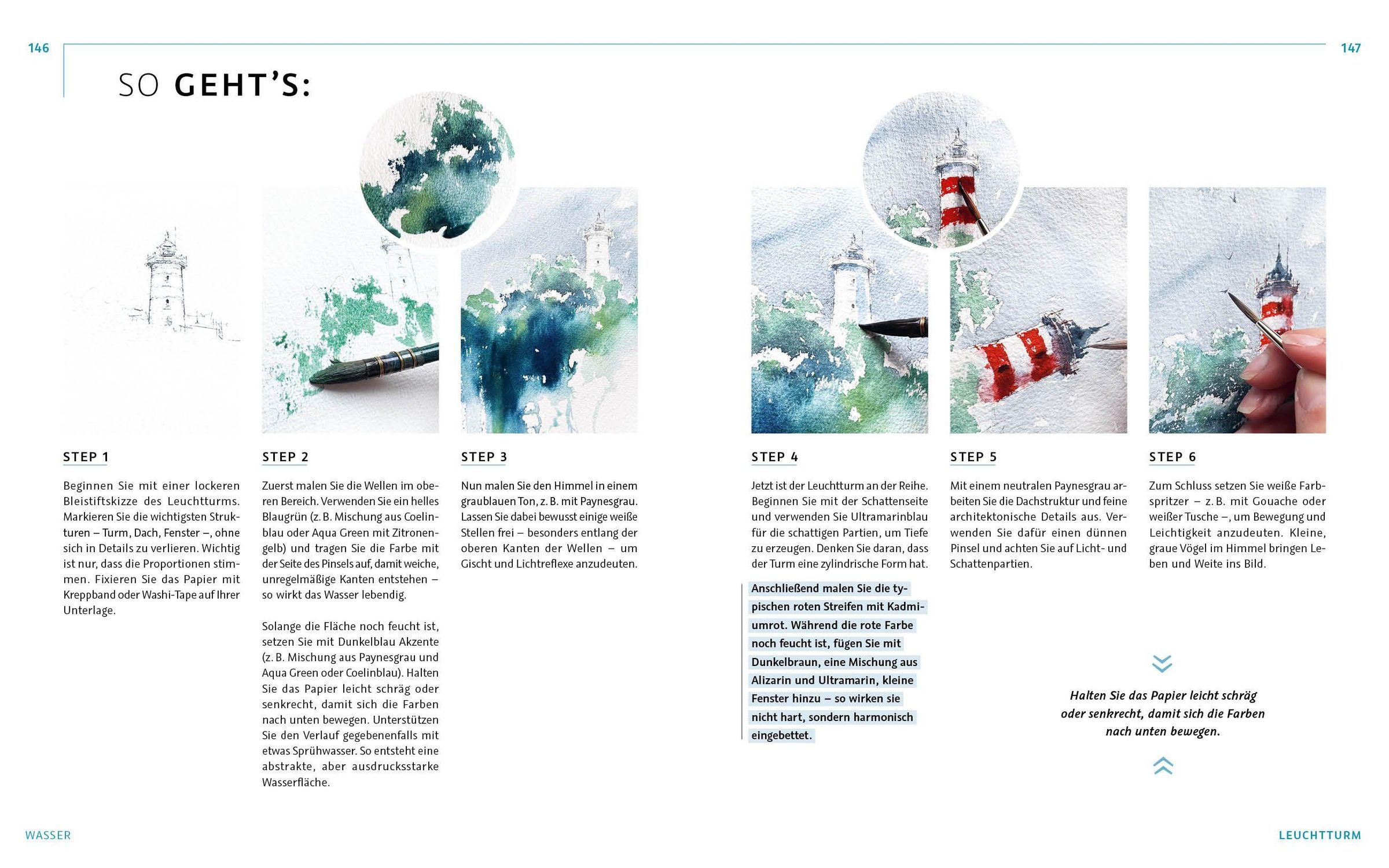 - Mit detaillierten Schritt-für-Schritt-Anleitungen und vielenTipps zur Aquarellmalerei