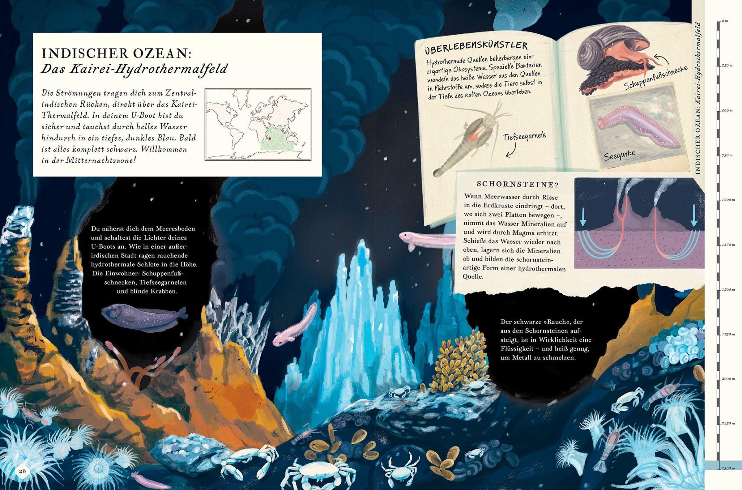 Zahlreiche Klappen und Ausklappseiten verraten unter anderem, wie Meeresströmungen funktionieren, wie der Mond Ebbe und Flut bestimmt und wie sich aus Unterwasservulkanen neue Inseln bilden.