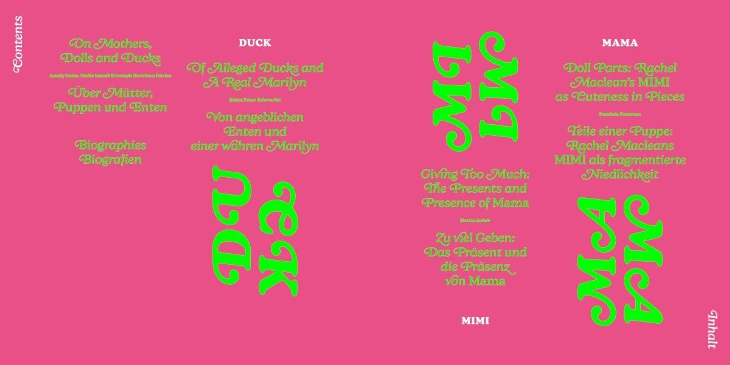 Der Katalog erscheint anlässlich der Ausstellungen if it looks like a duck... (Kunstpalais Erlangen, 2023) und Mama Mimi Duck (Kunsthalle Gießen, 2024) und dokumentiert erstmals in einer Monografie Macleans Schaffen der 2020er-Jahre. Eine grellbunte Kritik an Politik, Konsum und popkulturellen Scheinwelten.