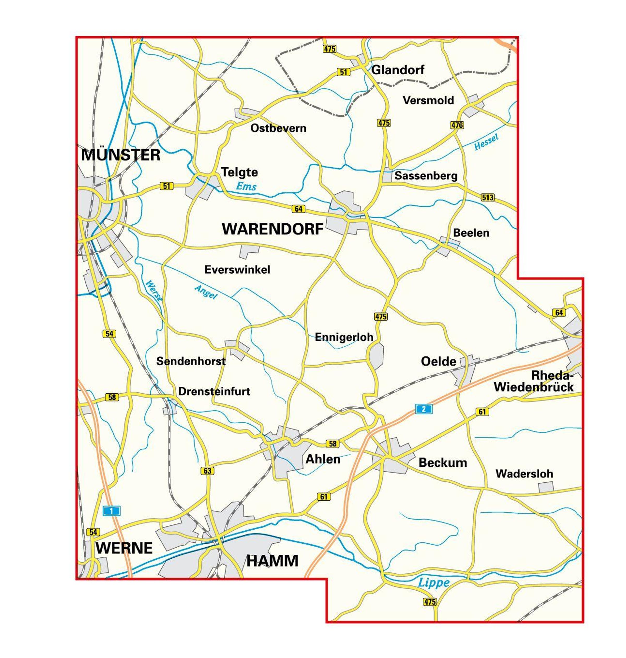 BVA Radwanderkarte Kreis Warendorf mit Knotenpunkten 1:50.000