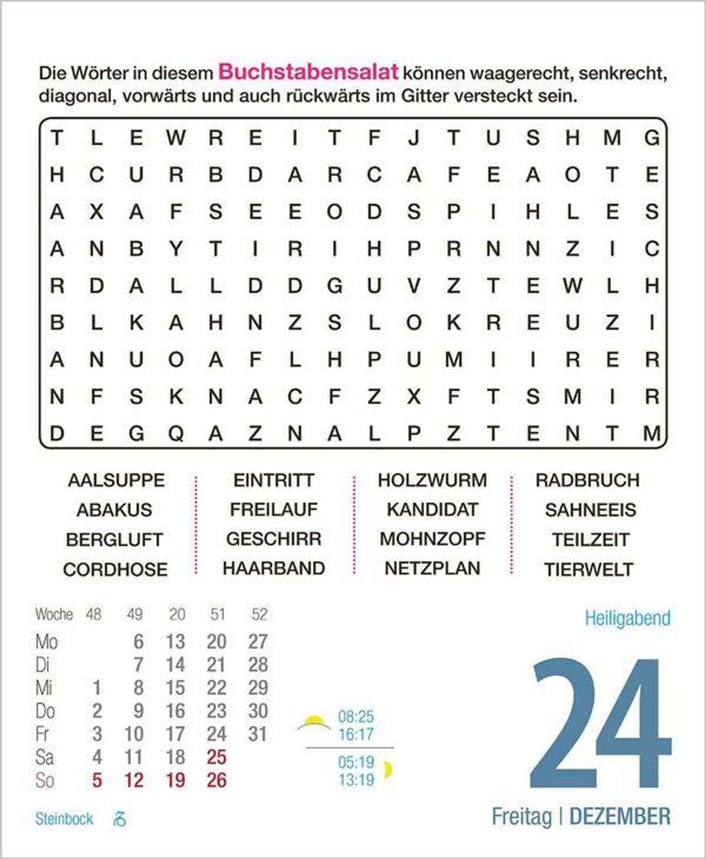 - Kalender zum Aufstellen oder Aufhängen
