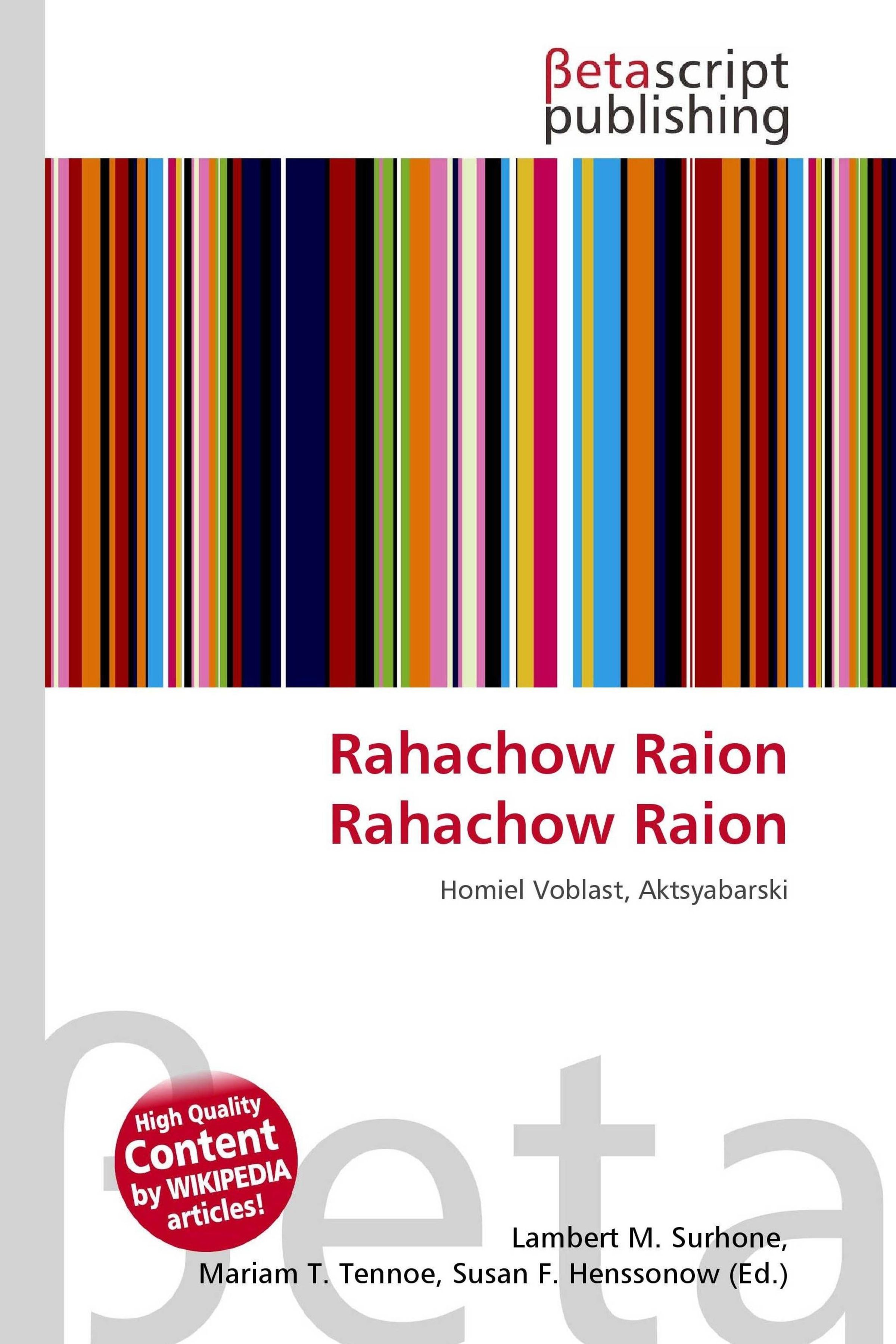 Please note that the content of this book primarily consists of articles available from Wikipedia or other free sources online. Rahachow Raion is an administrative subdivision, a raion of Homiel Voblast, in Belarus. Homiel Voblast or Gomel Oblast (Belarusian: ; translit.: Homel'skaya Voblasts; Russian: ; translit.: Gomel'skaya Oblast) is a province (voblast) of Belarus with its administrative center being Homyel. Important cities within the voblasts include: Gomel, Mazyr, Zhlobin, Svetlahorsk, Rechytsia, Kalinkavichy, Rahachow, DobrushHomiel Province and Mahilyow Voblast suffered severely after the Chernobyl nuclear reactor catastrophe.