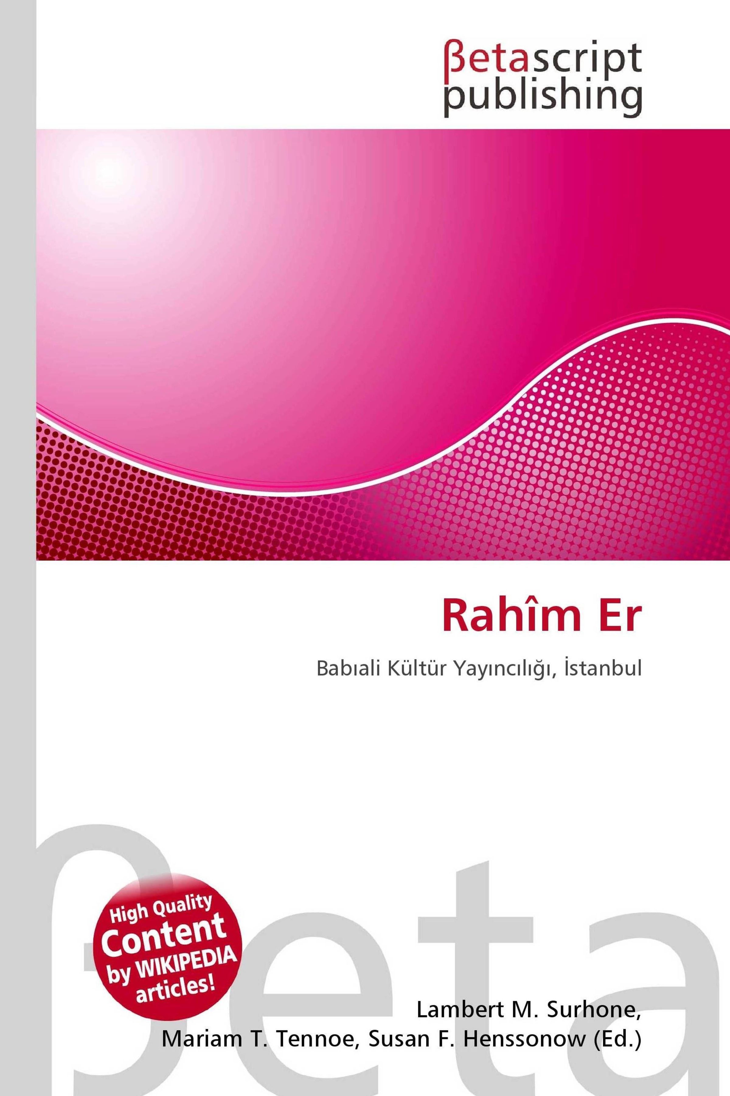 Please note that the content of this book primarily consists of articles available from Wikipedia or other free sources online. Rahîm Er (born in 1950 in Harput, Elaz, Turkey) is a Turkish author and lawyer. He is currently the chairman of the board of BKY-Babali Kültür Yayncl A., a publishing company based in stanbul and also the owner of Haber Kuä (haberkusagi. com), an online Turkish newspaper. After graduating from Adana Erkek Lisesi in 1969, he graduated from the Faculty of Law of stanbul University in 1974. He is a member of the stanbul Bar Association and the Union of Turkish Bars. In 1970 he joined Türkiye daily newspaper and started to write daily columns. Er was the founding general managers of Türkiye Çocuk, weekly magazine for children; TGRT, a national Turkish television channel which was bought by Fox Broadcasting Company and changed to its current name Fox; and hlas Databank which was changed to its current name ihlas. net, one of the first internet service providers in Turkey. He hosted television and radio programs on TGRT and TGRT FM from 1996.
