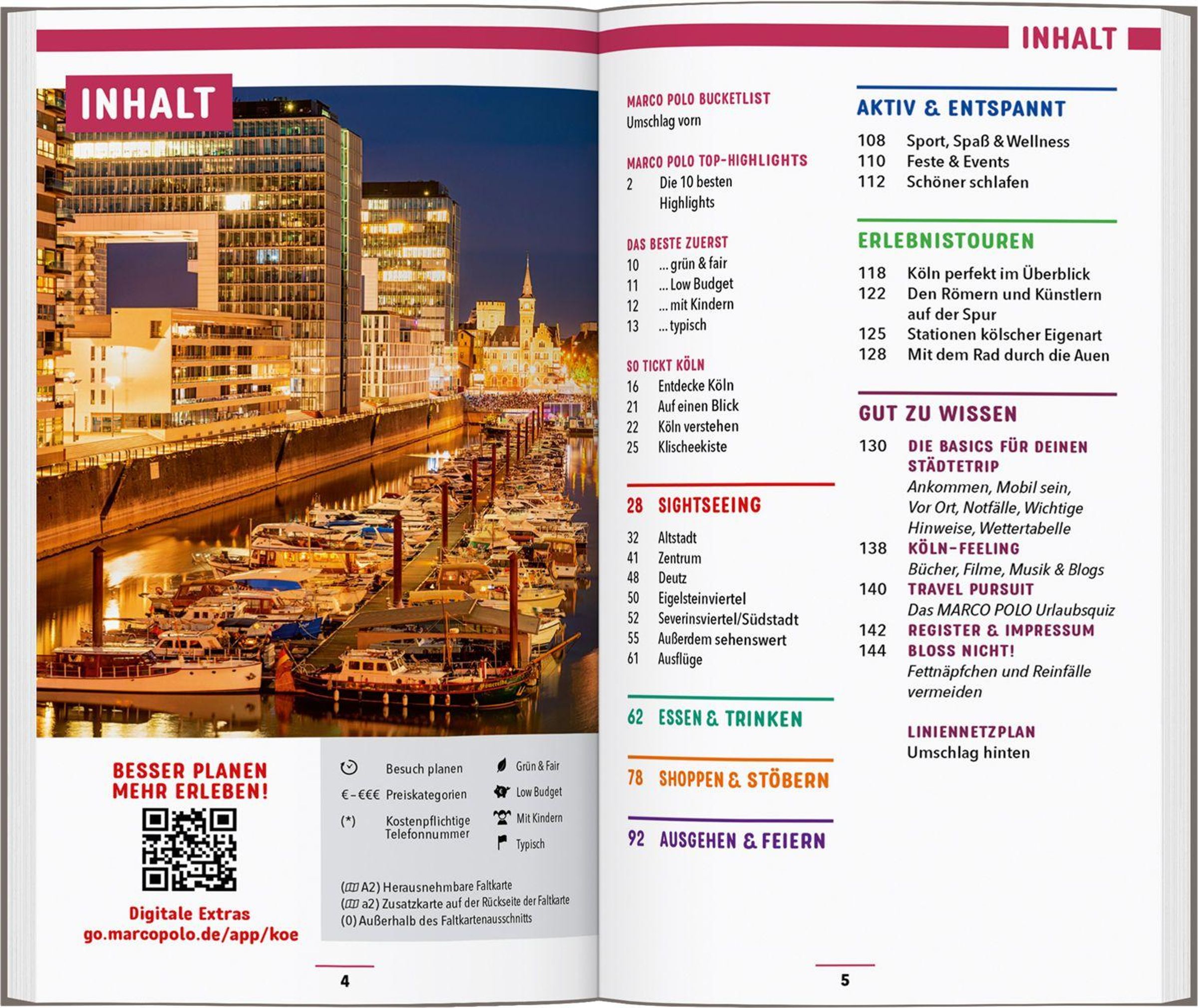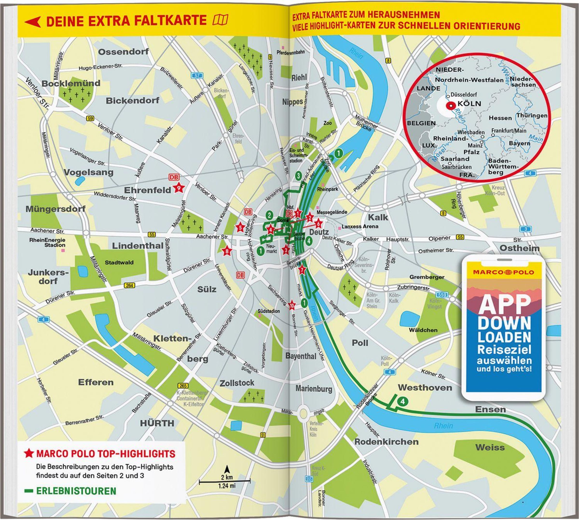 Schon vor deinem Städtetrip findest du im MARCO POLO Reiseführer Köln hilfreiche Infos zur Anreise, Empfehlungen zu Hotels und zu Übernachtungsmöglichkeiten. Vor Ort stellst du dir dann mit dem ÖPNV-Plan, den Stadtteilkarten und den Rundgängen auf Karte oder App ganz einfach deine eigenen Touren durch die Stadt unter dem Dom zusammen. Ob Kölsches Puppentheater oder Schrottplatz-Party zwischen Kunst und Krempel - mit dem MARCO POLO Reiseführer Köln verpasst du nichts!