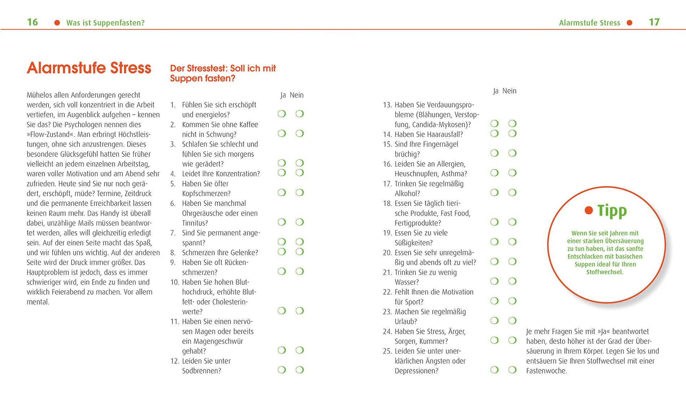 Mit dem detaillierten Wochenplan im Buch wird das Fasten ganz einfach in den Berufsalltag integriert: Vom Muntermacher am Morgen bis zum Leberwickel am Abend, der Plan gibt genau vor, wie jeder Fastentag während der Arbeit aussehen kann. Die zusätzlichen Yoga- und Fitnessübungen sind so konzipiert, dass sie auch während der Arbeit durchgeführt werden können.