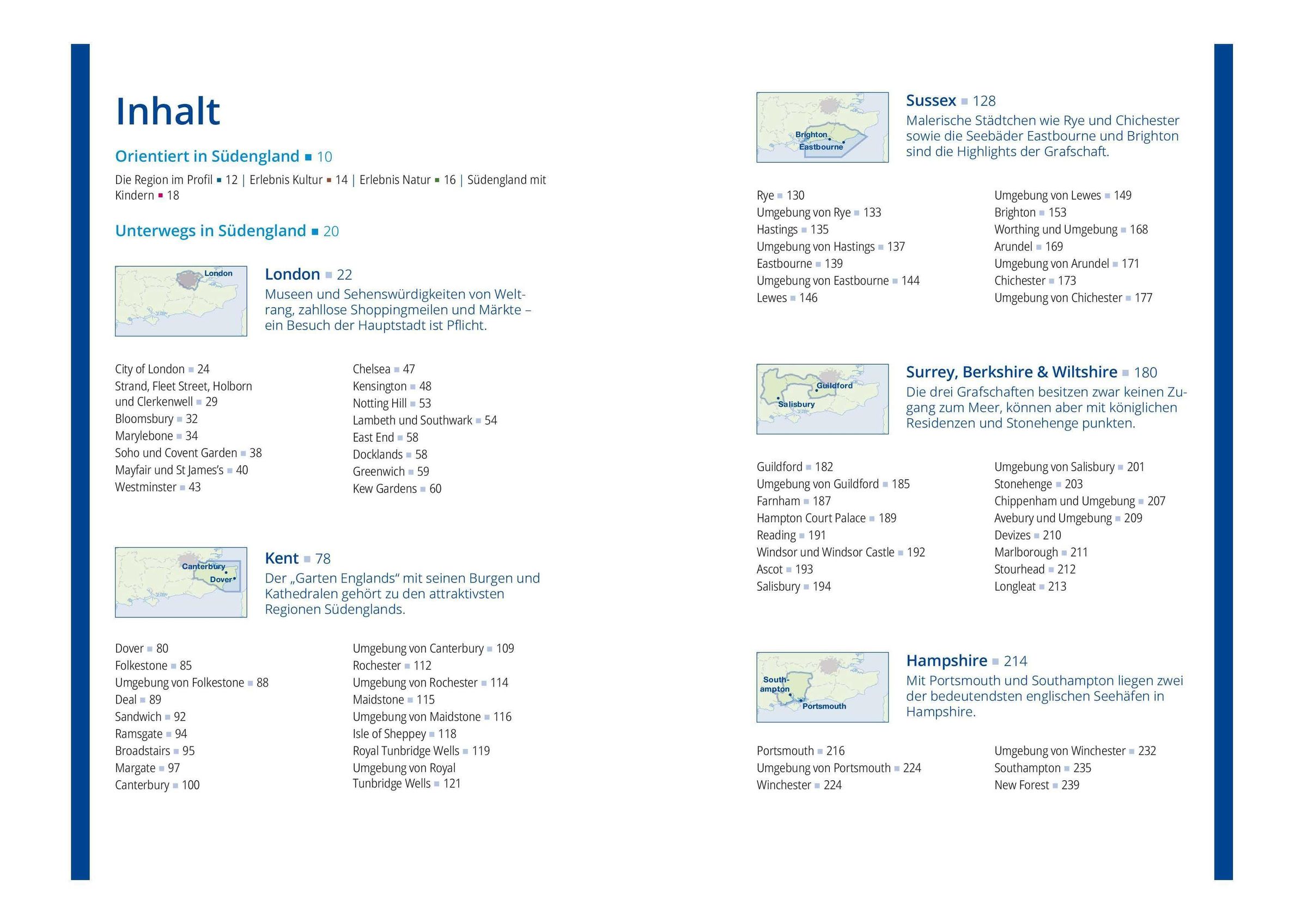 Erleben Sie London, Kent, Sussex, Wiltshire, Hampshire, Isle of Wight, Somerset, Dorset, Devon und Cornwall intensiv und unabhängig. Entdecken Sie Stonehenge, Bath, Brighton, Dartmoor, Lost Gardens of Heligan oder das Eden Project mit einem Reiseführer, der weit mehr bietet als Standardempfehlungen. Ob Stadt oder Land, ob 'open minded' oder traditionell geprägt: Unser Reiseführer 'Südengland' bietet Orientierung in Zeit und Raum.