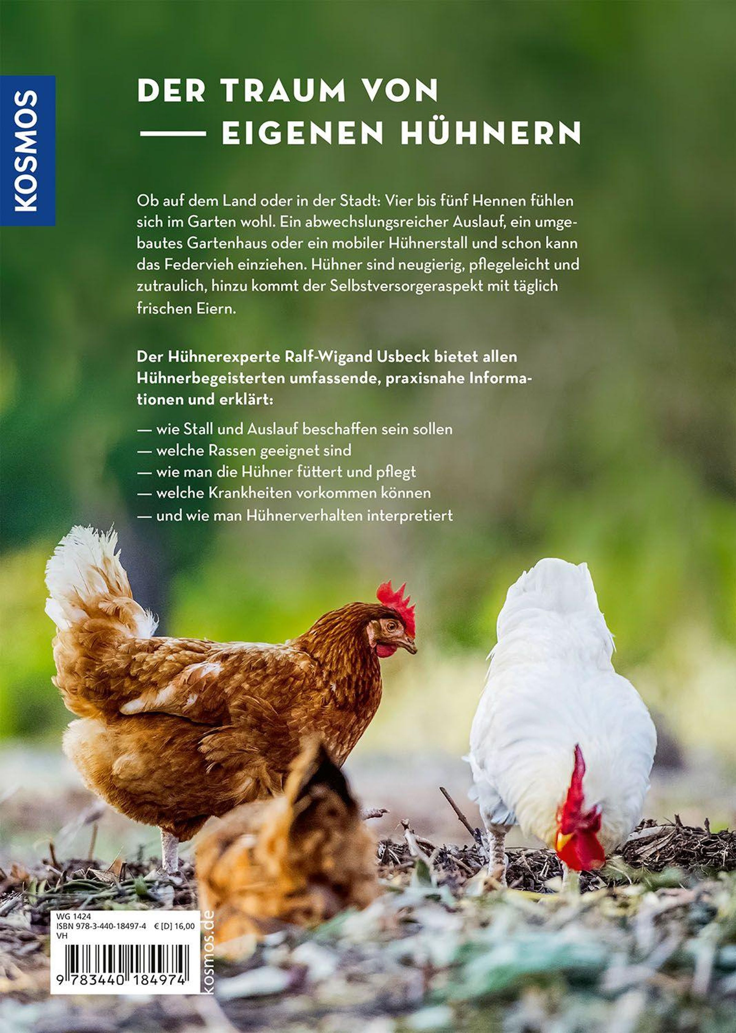 Hühnerhaltung ist nach wie vor im Trend - nicht nur auf dem Land, sondern auch in der Stadt. Schon 4 bis 5 Hühner fühlen sich im Garten wohl, ein kleines Gartenhaus oder ein mobiler Hühnerstall, ein eingezäunter Auslauf und schon kann das Federvieh einziehen. Hühner sind neugierig, pflegeleicht und zutraulich, hinzu kommt der Selbstversorgeraspekt mit täglich frischen Eiern. Dieser Ratgeber bietet für alle Hühnerbegeisterten umfassende, praxisnahe Informationen zur Haltung, Stall, Auslauf, Auswahl, Kauf, Eingewöhnung, Ernährung, Pflege, Gesundheitsvorsorge, geeigneten Rassen und Hühnerprodukten wie Eier.