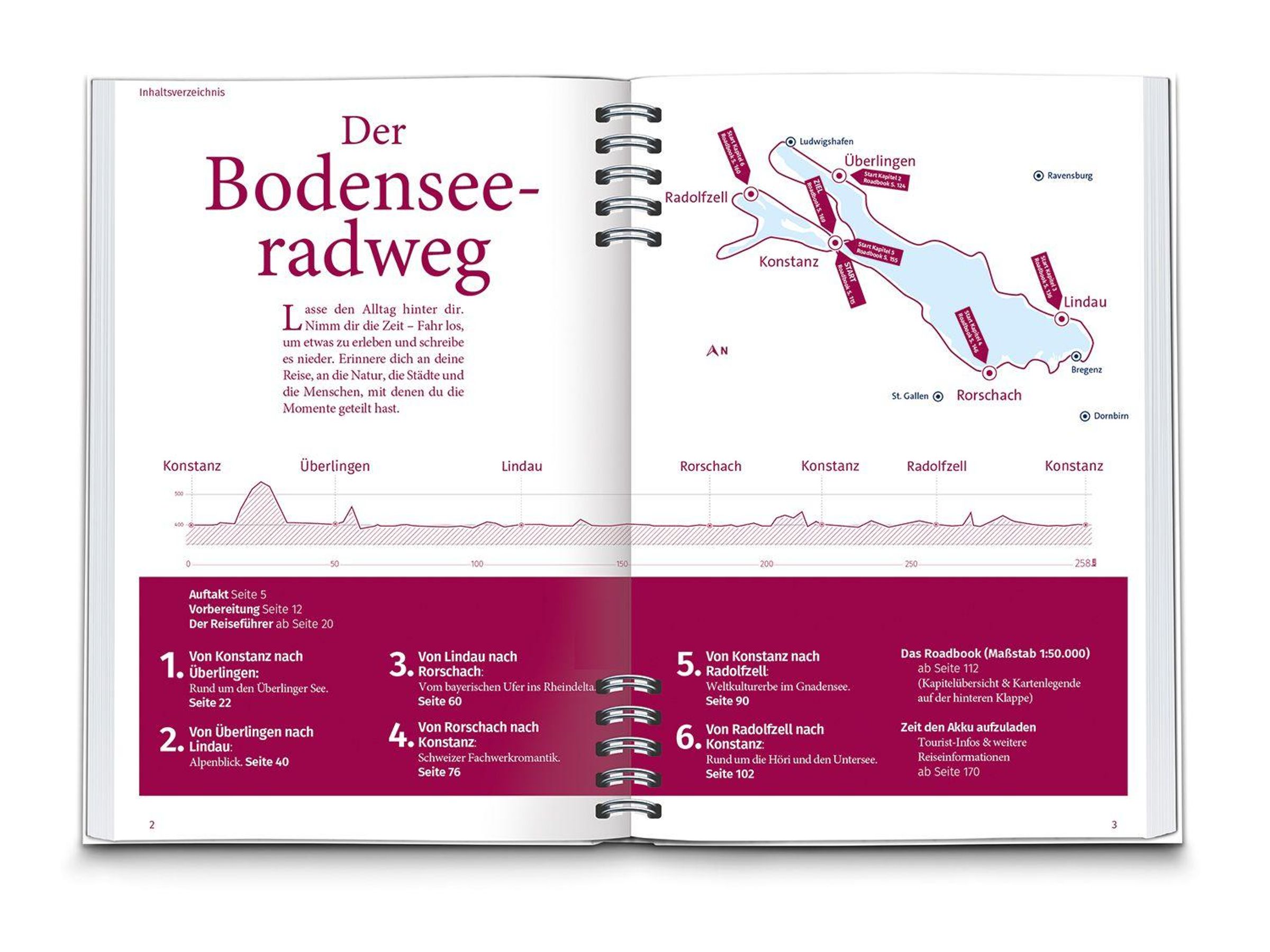 Die perfekte Kombination aus Reiseführer und Radführer für dein unvergessliches Erlebnis auf diesem Radfernweg. Vorfreude: Der Auftakt zeigt warum sich jeder Kilometer lohnt und bietet wertvolle Informationen zur Radwegbeschilderung und -qualität. Reiseführer: Wissenswertes, Highlights am Wegesrand und Lohnenswerte Schlenker sind sorgfältig recherchiert und charmant beschrieben. So lernt man bereits vor der eigentlichen Tour Land und Leute, Natur und Kultur kennen - die Auszeit beginnt. Radführer: Los gehts - eine genaue Wegbeschreibung hilft gemeinsam mit den Detailkarten des Roadbooks (1: 50.000) alles im Blick zu behalten. Den nötigen Überblick bekommt man mit der extra Faltkarte (1: 150.000) und wer will mit dem GPX-Track.