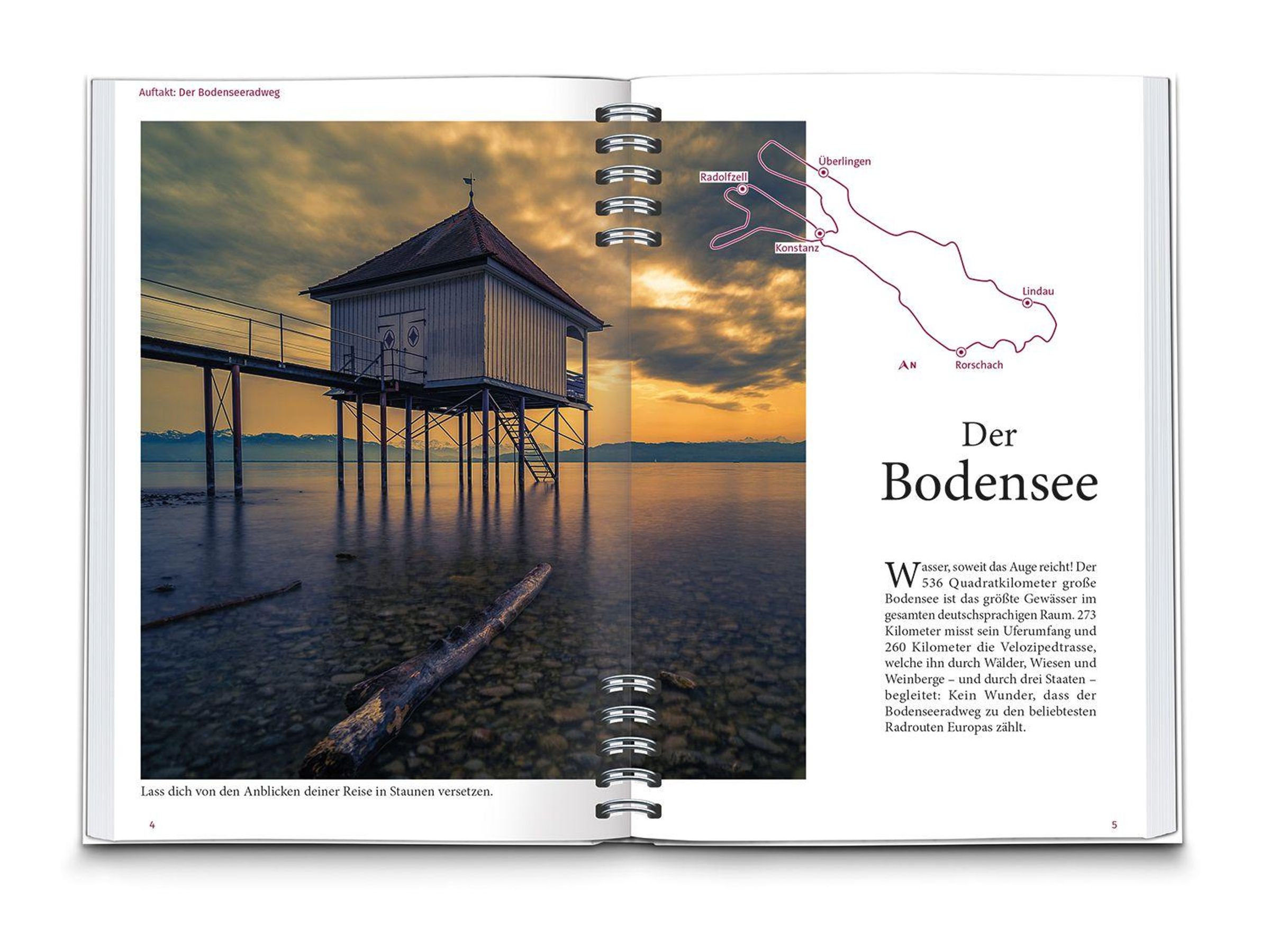 Der Bodensee - Wasser, soweit das Auge reicht! Der 536 Quadratkilometer große Bodensee ist das größte Gewässer im gesamten deutschsprachigen Raum. 273 Kilometer misst sein Uferumfang und 260 Kilometer die Velozipedtrasse, welche ihn durch Wälder, Wiesen und Weinberge - und durch drei Staaten - begleitet: Kein Wunder, dass der Bodenseeradweg zu den beliebtesten Radrouten Europas zählt.
