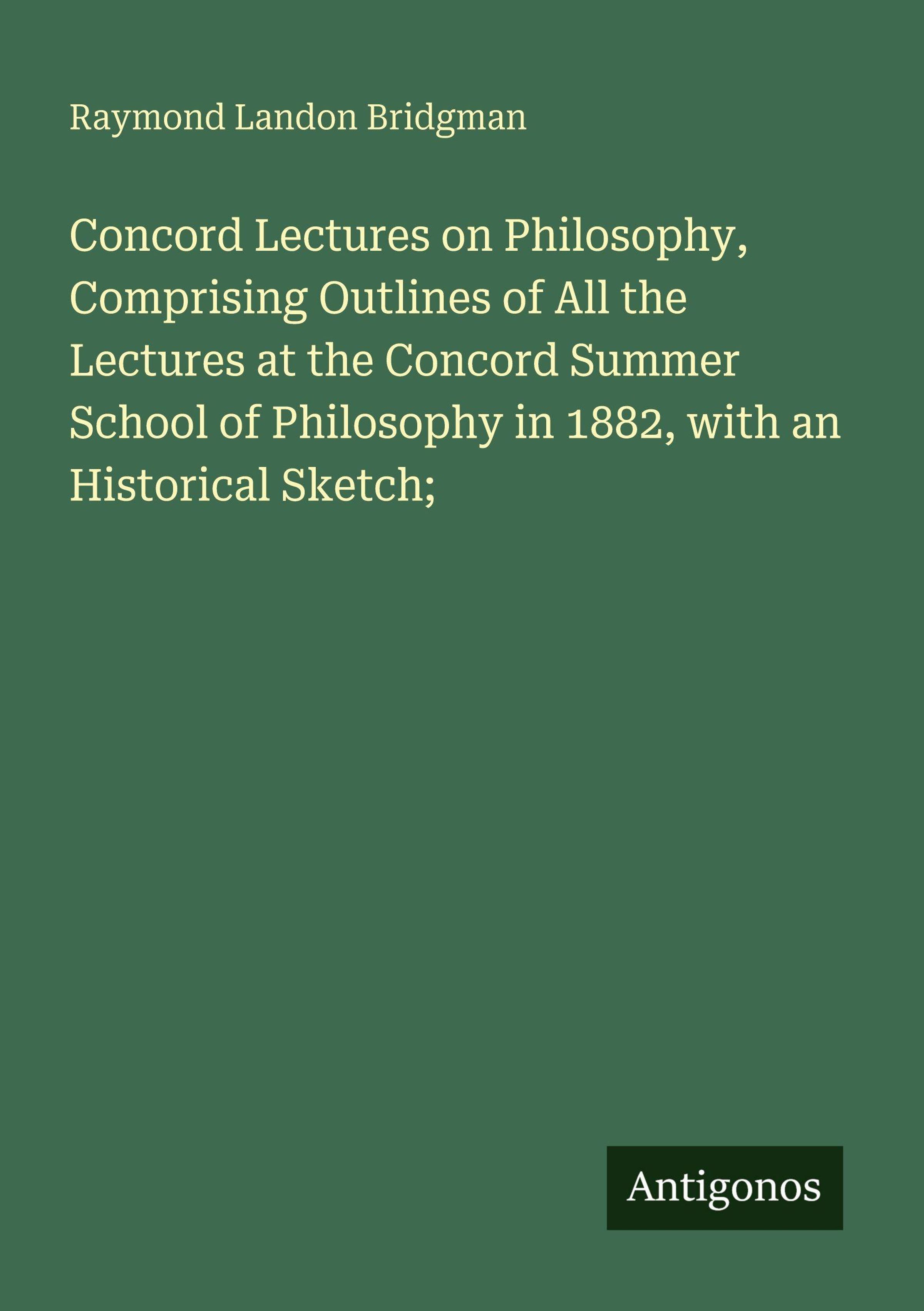 Raymond Landon Bridgman: Concord Lectures on Philosophy, Comprising Outlines of All the Lectures at the Concord..., Kartoniert / Broschiert