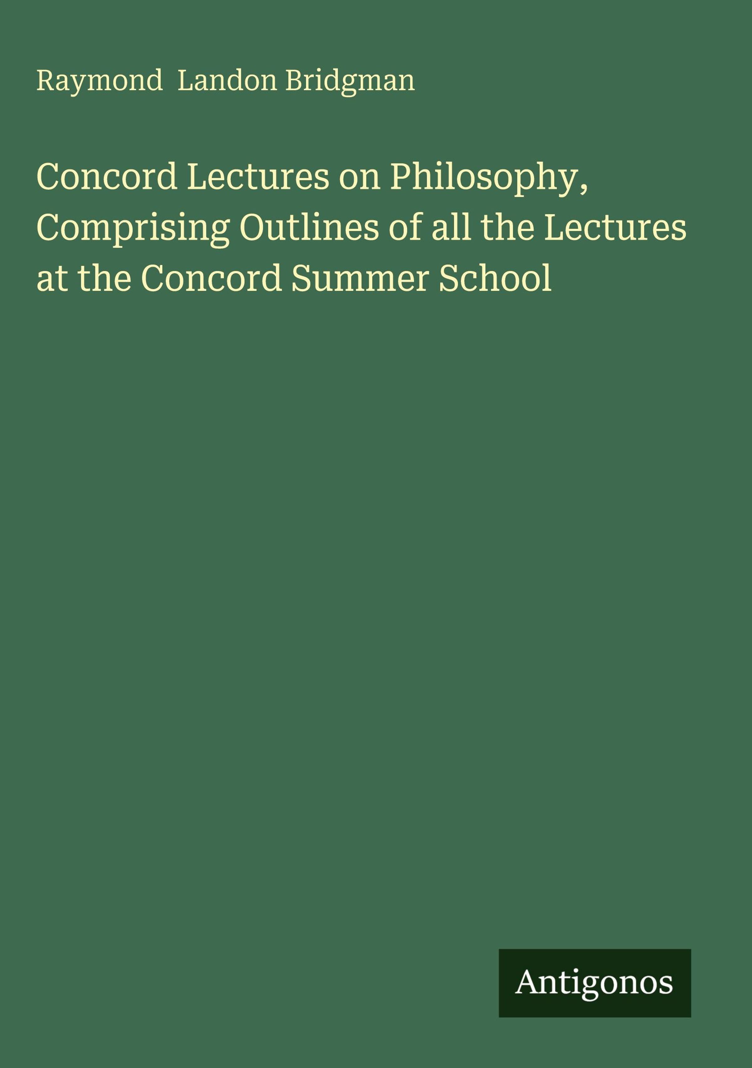 Raymond Landon Bridgman: Concord Lectures on Philosophy, Comprising Outlines of all the Lectures at the Concord..., Gebunden