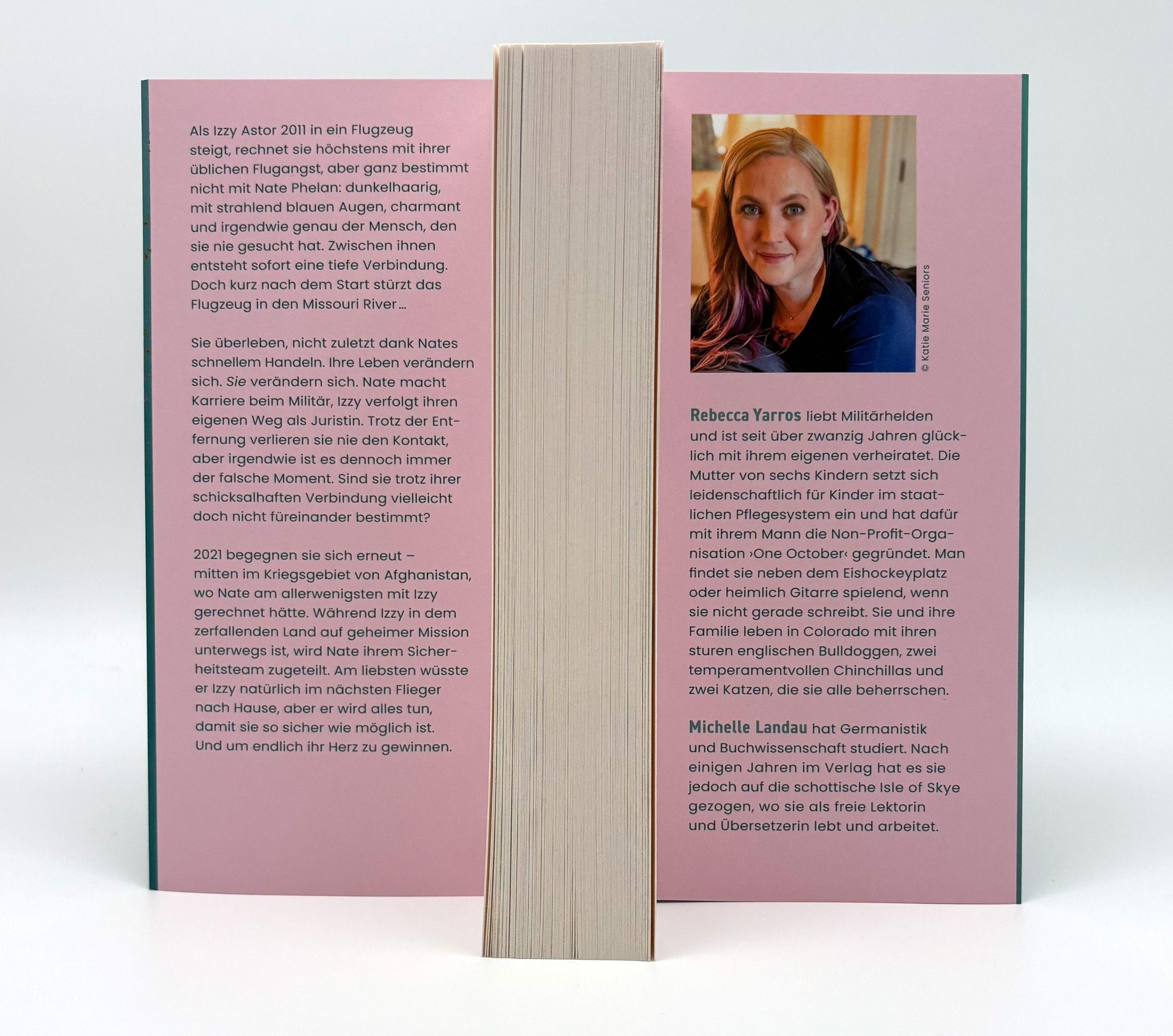 Rebecca Yarros ist eine mehrfach ausgezeichnete ›New York Times‹-, ›Wall Street Journal‹-, ›USA Today‹- und auch international erfolgreiche Bestsellerautorin und dazu eine schokoladen- und kaffeeabhängige hoffnungslose Romantikerin. Sie setzt sich mit großer Leidenschaft für die Belange von Kindern im staatlichen Pflegesystem ein und hat dafür die Non-Profit-Organisation ›One October‹ gegründet. Die Mutter von sechs Kindern lebt mit ihrer Familie und einem veritablen Kleinzoo in Colorado..Anmerkungen: