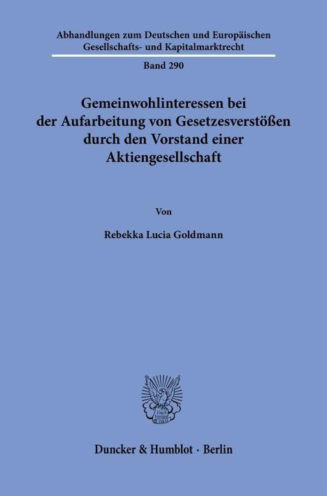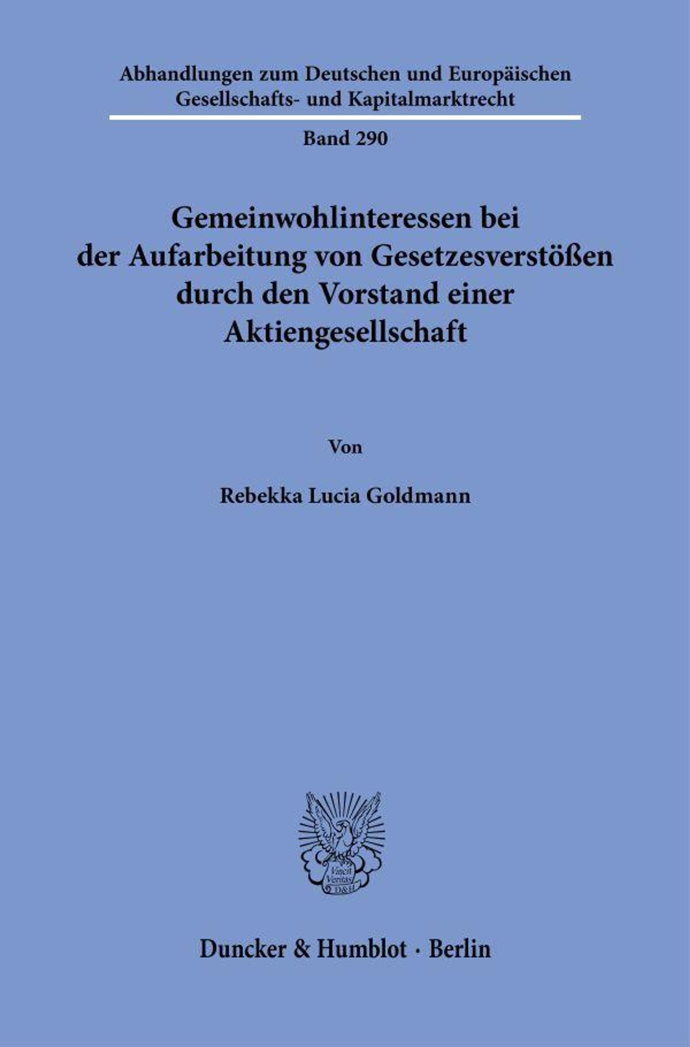 Der Artikel Rebekka Lucia Goldmann: Gemeinwohlinteressen bei der Aufarbeitung von Gesetzesverstößen durch den Vorstand einer Aktiengesellschaft wurde in den Warenkorb gelegt.
