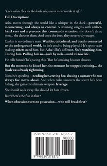 "Even when they see the leash, they never want to take it off..." Full Description: Asha moves through the world like a whisper in the dark-powerful, mesmerizing, and always in control. A stunning enigma with amber-hazel eyes and a presence that commands attention, she doesn't chase men... she chooses them. And once she does, they never truly escape. Cashin is no ordinary man. Wealthy, calculated, and deeply connected to the underground world, he isn't used to being played. He's spent years making others need him. But Asha? She's different. She's watching him. Testing him. Pulling him in-inch by inch-until it's too late. He tells himself he's pacing this. That he's making his own choices. But the moment he kissed her, the moment he stopped resisting... the leash was already tightening. Now, he's spiraling-needing her, craving her, chasing a woman who was always five moves ahead. And when Asha uncovers the secret he's been hiding, she gains the ultimate weapon: leverage. She should walk away. She should let him drown. But where's the fun in that? When obsession turns to possession... who will break first?