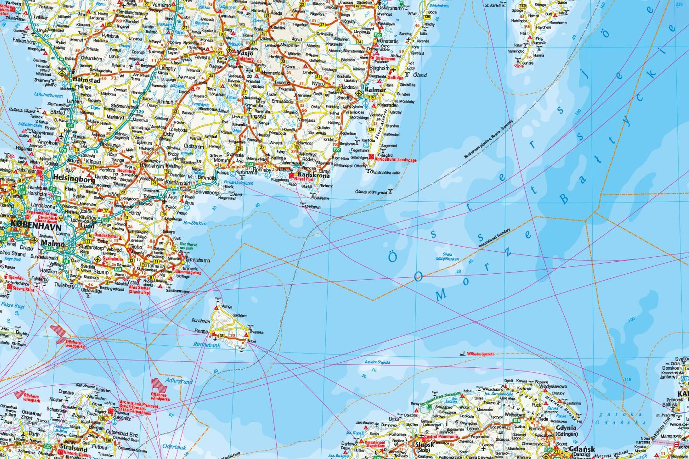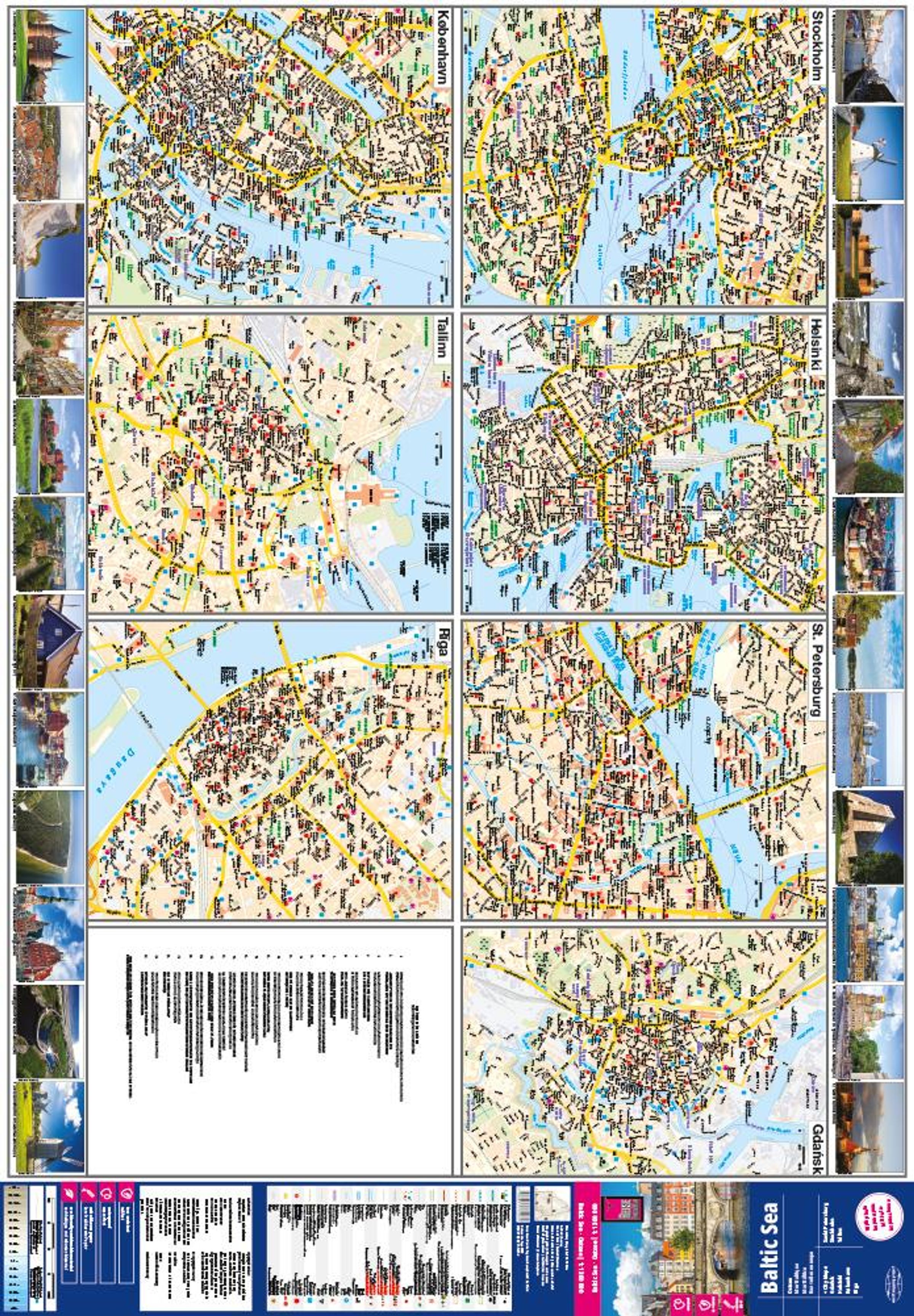 Ausstattung: - Höhenlinien und farbige Höhenschichten; - Klassifiziertes Straßennetz mit Entfernungsangaben; - Sehenswürdigkeiten; - GPS-genau; - Längen- und Breitengrade; - Fünfsprachige Legende (deutsch, englisch, französisch, spanisch, russisch); - Ostseekarte 1-seitig; - Auf der Rückseite Innenstadtpläne von Danzig, Kopenhagen, Stockholm, Helsinki, St. Petersburg, Tallinn und Riga sowie 24 Fotos rund um die Ostsee. Handliches Format: 70x100 cm, 2-seitig bedruckt.