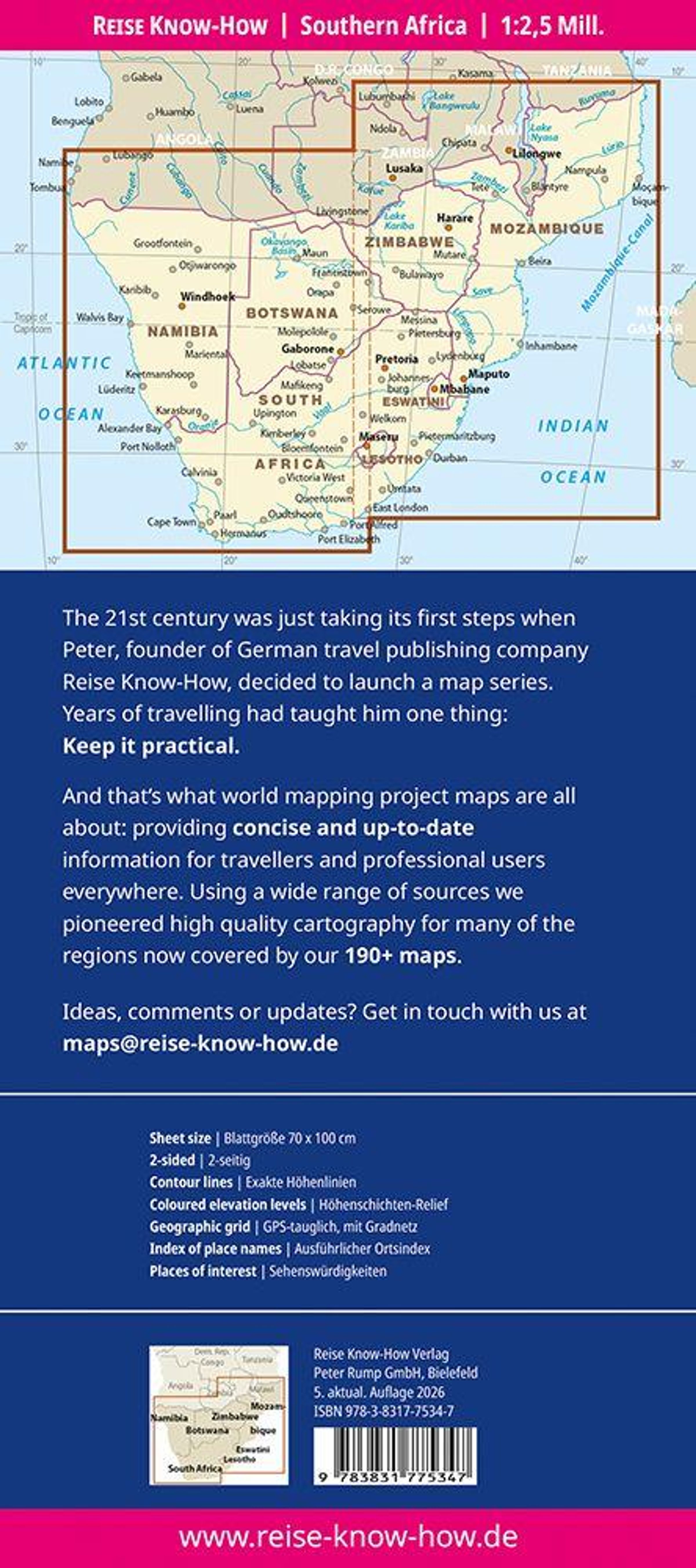 Reise Know-How Landkarte Südliches Afrika (1:2.500.000)