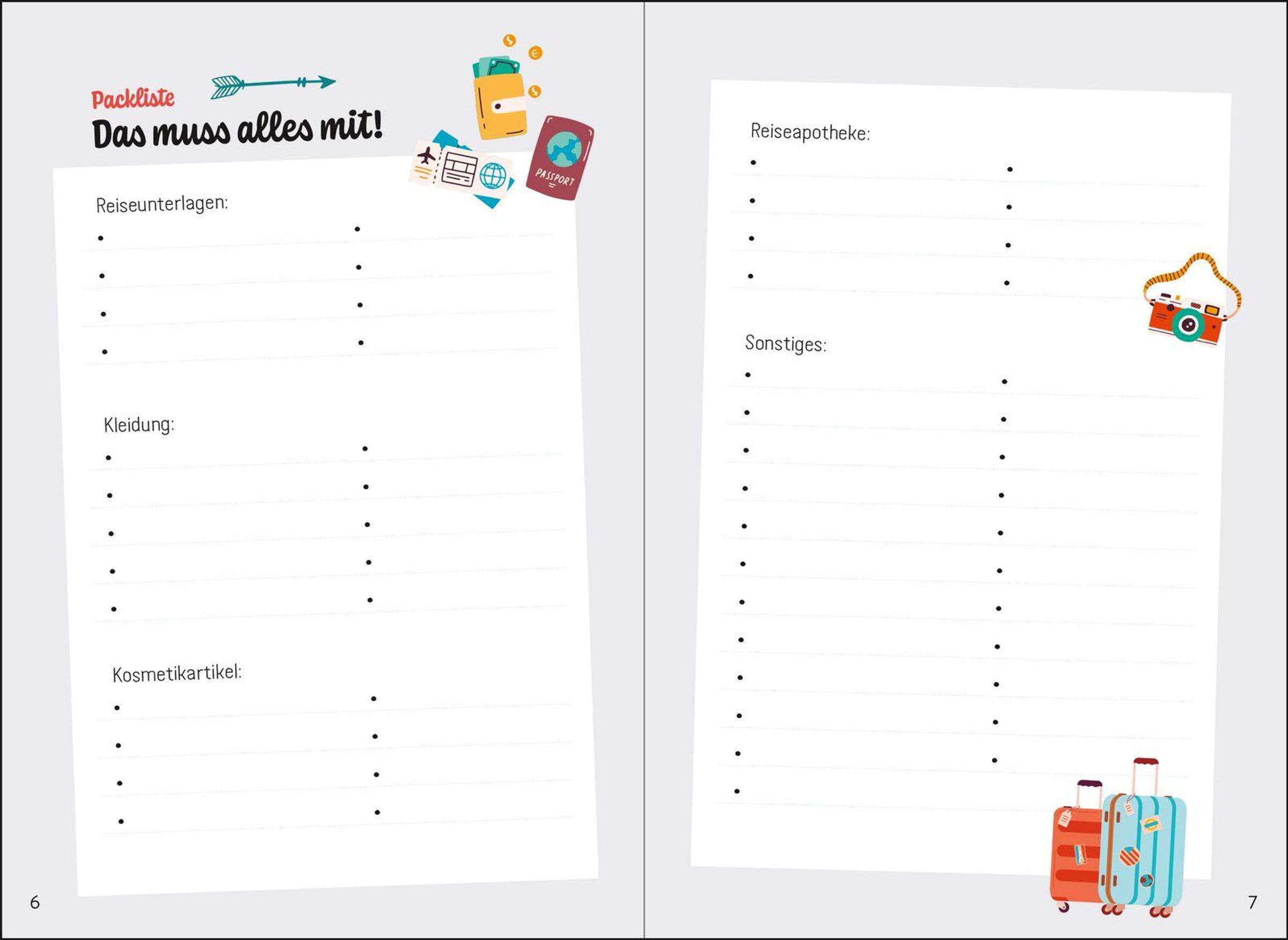 - Sonderseiten mit Platz für Reisevorbereitungen, Geheimtipps und Adressen