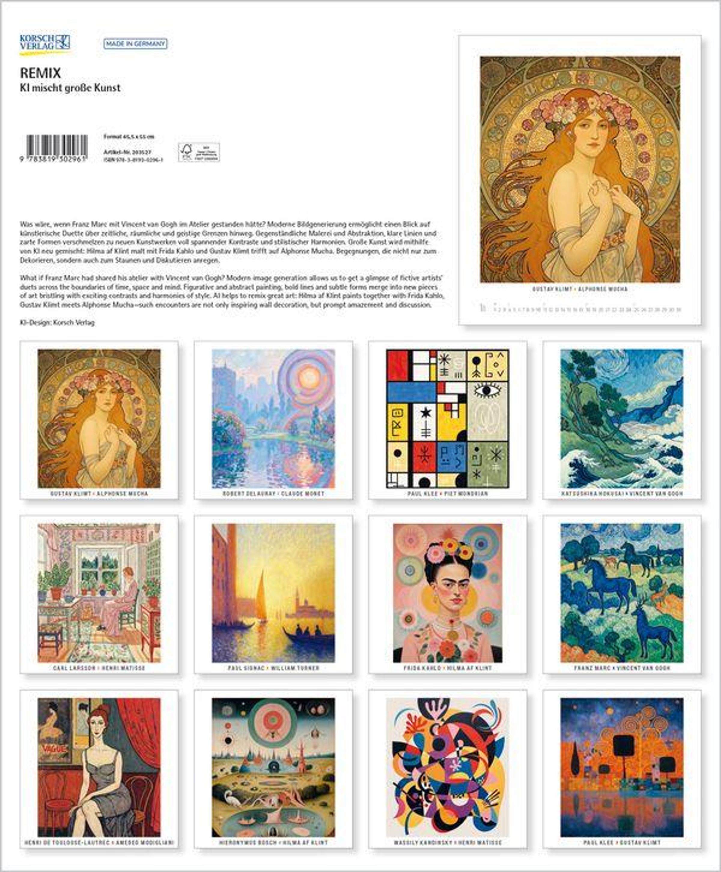 - Großer Kunstkalender mit KI generierten Bildern von bekannten Kunstwerken. Format: 45,5x55 cm.