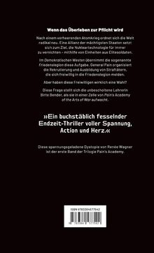 Nach einem verheerenden Atomkrieg ordnet sich die Welt radikal neu. Eine Allianz der mächtigsten Staaten setzt sich zum Ziel, die Nukleartechnologie für immer zu vernichten - mithilfe von Einheiten aus Elitesoldaten. Im Demokratischen Westen übernimmt die sogenannte Friedenslegion diese Aufgabe. General Pain organisiert die Rekrutierung und Ausbildung von Straftätern, die sich freiwillig in die Friedenslegion melden. Aber haben diese Freiwilligen wirklich eine Wahl? Diese Frage stellt sich die unbescholtene Lehrerin Birte Bender, als sie in einer Zelle in Pain's Academy of the Arts of War aufwacht. Ein buchstäblich fesselnder Endzeit-Thriller voller Spannung, Action und Herz. Diese spannungsgeladene Dystopie ist der erste Band der Trilogie Pain's Academy.