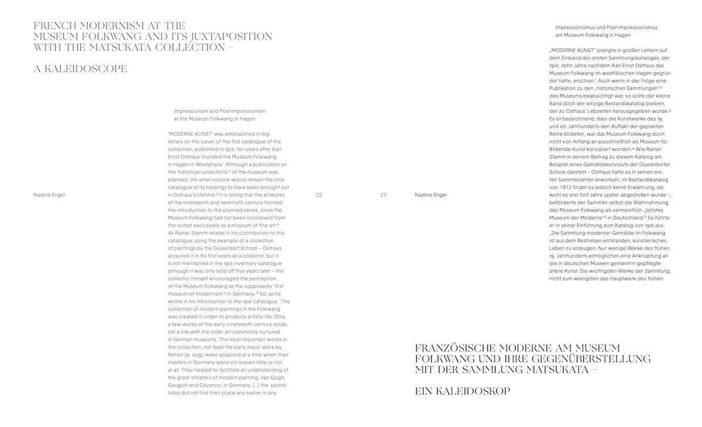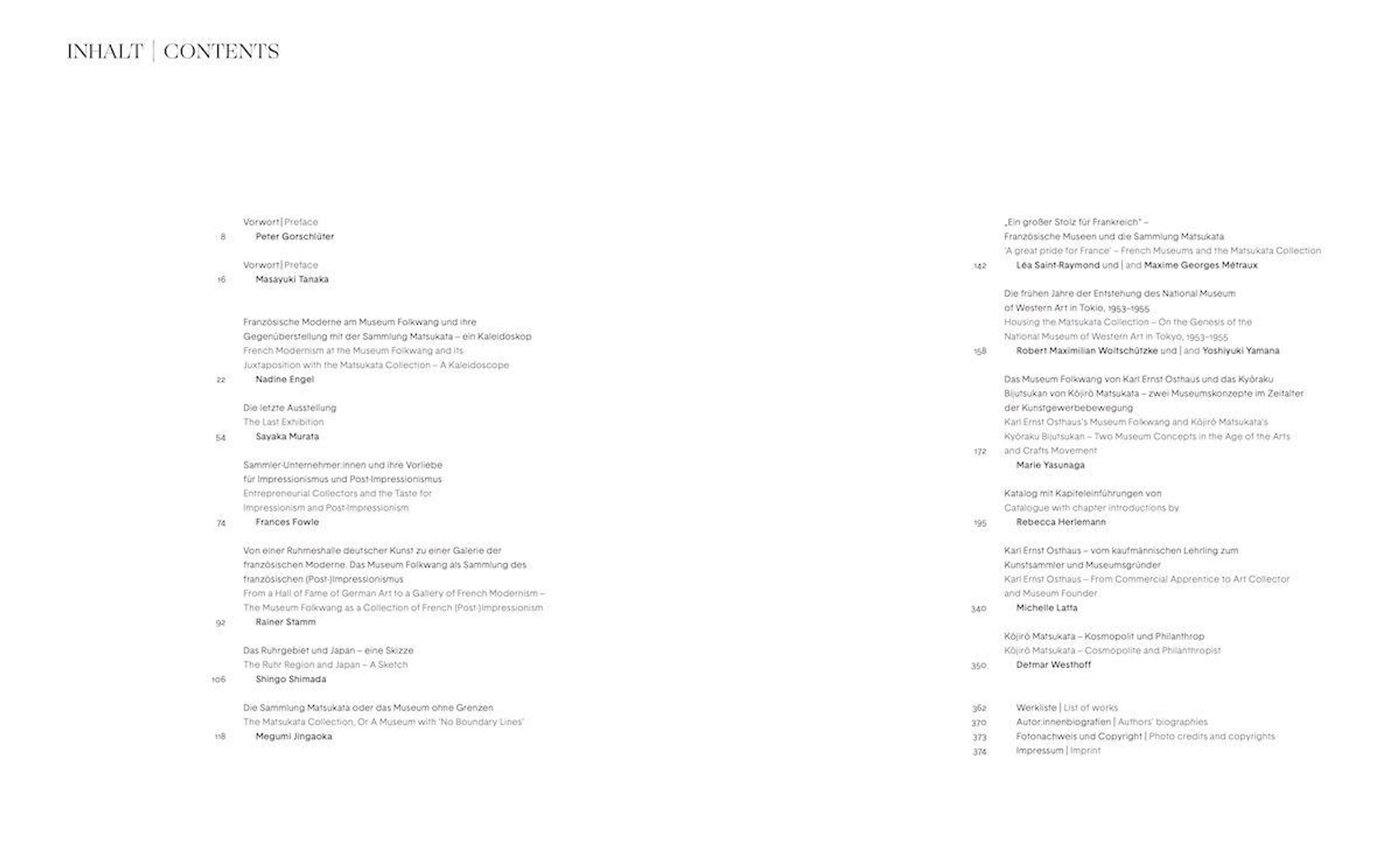 Von Renoir über Monet bis zu Gauguin - die moderne französische Kunst wurde Anfang des 20. Jahrhunderts nicht nur von westlichen Sammlern geschätzt, sondern fand auch in Japan früh Anhänger. Das Museum Folkwang zeigt 2022 anlässlich seines 100. Jubiläums am Standort Essen seine herausragende, von Karl Ernst Osthaus (1874-1921) begründete Sammlung postimpressionistischer Kunst. Der eigene Bestand wird Glanzstücken des Impressionismus und Postimpressionismus aus der Sammlung Kojiro Matsukatas (1866-1950) gegenübergestellt. Diese legte den Grundstein für das heutige National Museum of Western Art in Tokio. Erstmals seit den 1950er-Jahren wird diese Sammlung wieder umfassend außerhalb von Japan gezeigt. Der Katalog zeigt eine einmalige Zusammenstellung von etwa 120 Werken und stellt die beiden bedeutenden Sammlerpersönlichkeiten vor. Transnationale Sammlungsgeschichte verbindet sich mit Meisterwerken der Moderne.