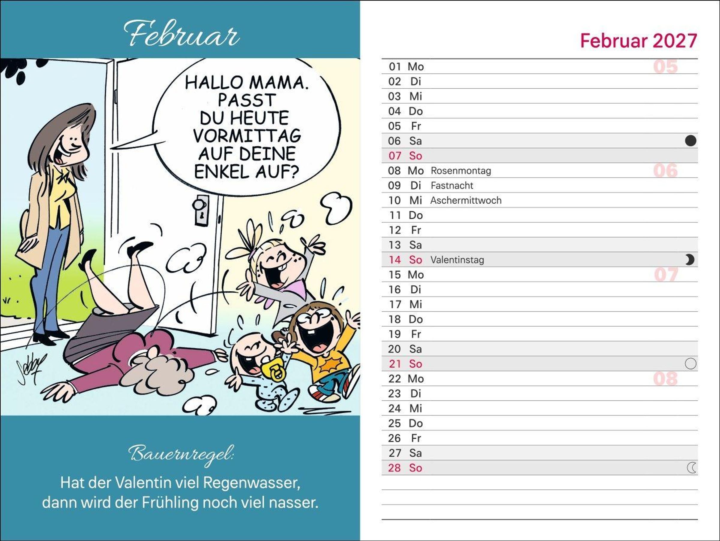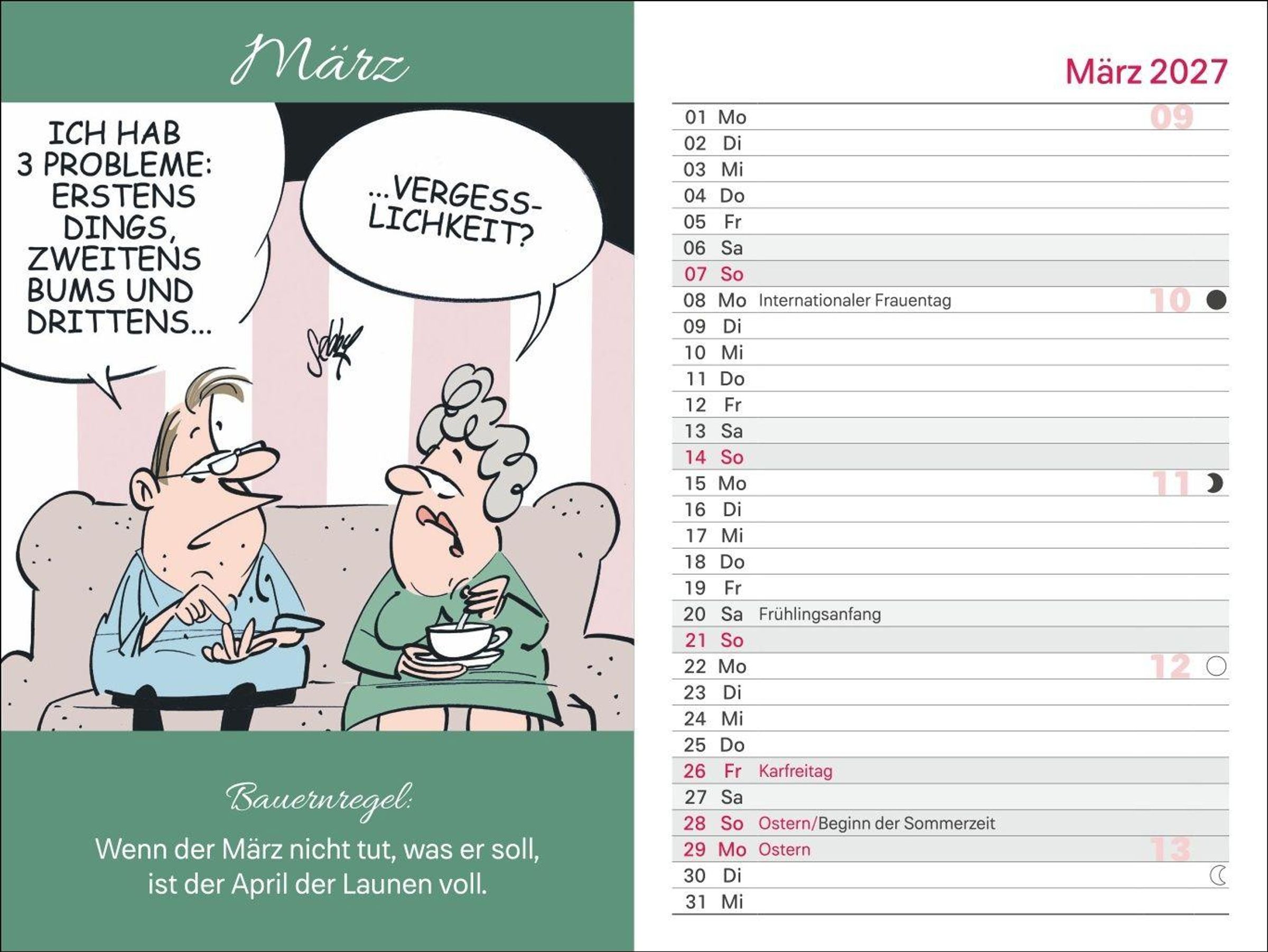 Cartoons von Andreas Brandt und gut lesbare Typografie: Kalender mit Lesebändchen als perfekte Organisationshilfe für Rentner