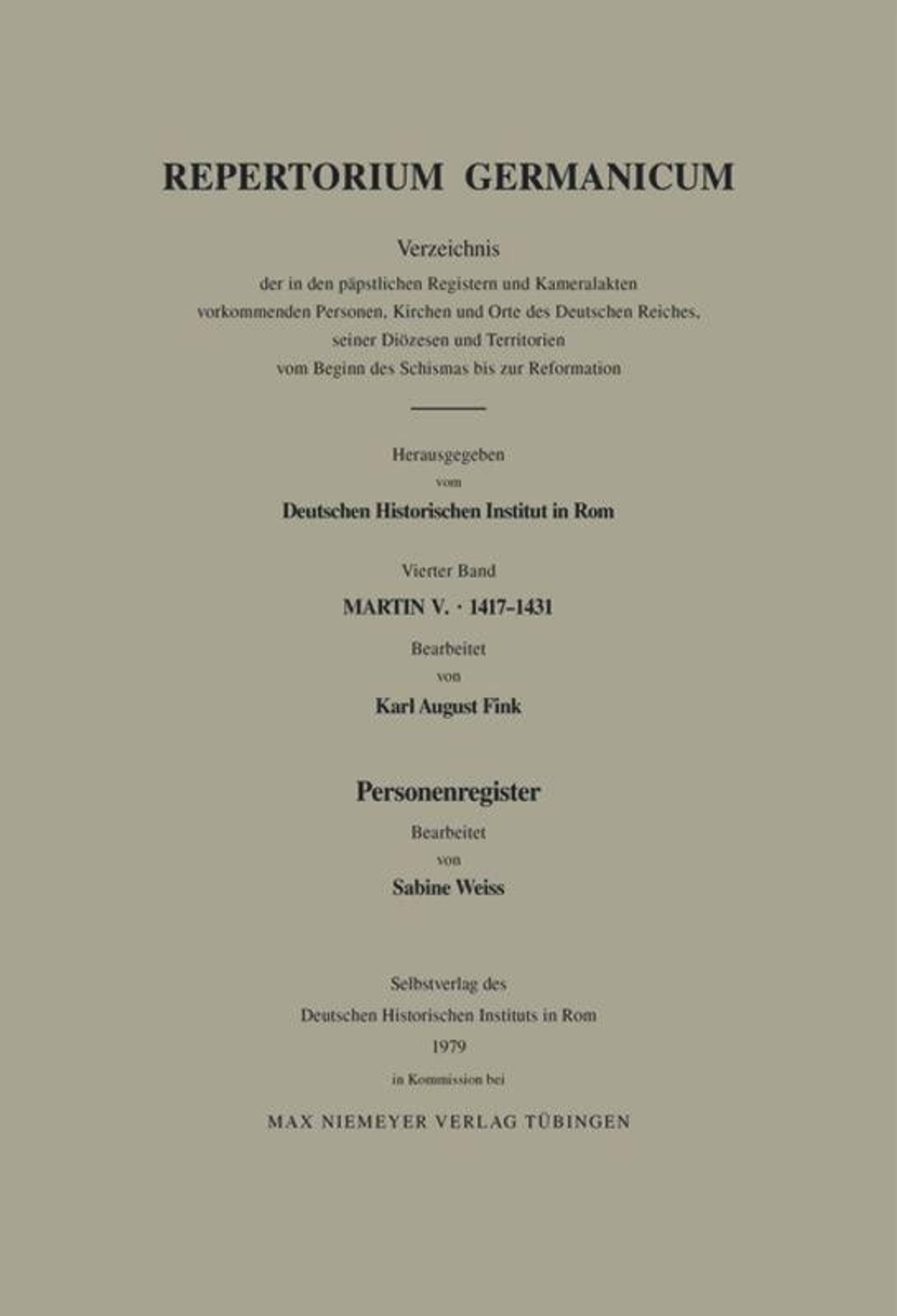 Das Repertorium Germanicum ist eine Regestensammlung, mit der sämtliche deutsche Betreffe aus allen vatikanischen Registerserien erfaßt werden. Auf ihrem Weg vom großen Schisma bis zur Reformation (1378-1517) ist die Bearbeitung inzwischen bis 1484 vorgedrungen und umfaßt damit nun ein volles Jahrhundert. Das Werk dient nicht nur der deutschen Orts-und Territorialgeschichte, sondern ist über die anfängliche Zielsetzung hinaus eine Quelle ersten Ranges für die kirchliche Prosopographie sowie die allgemeine Sozial-, Wirtschafts- und Bildungsgeschichte geworden, für die es mit seinem seriellen Charakter eine Fülle von modernen Fragestellungen erlaubt. Sein vielschichtiger Ertrag für die Forschung ist im Laufe der Bearbeitung und Benutzung immer deutlicher geworden und wird neuerdings durch den systematischen Einsatz von EDV noch potenziert.