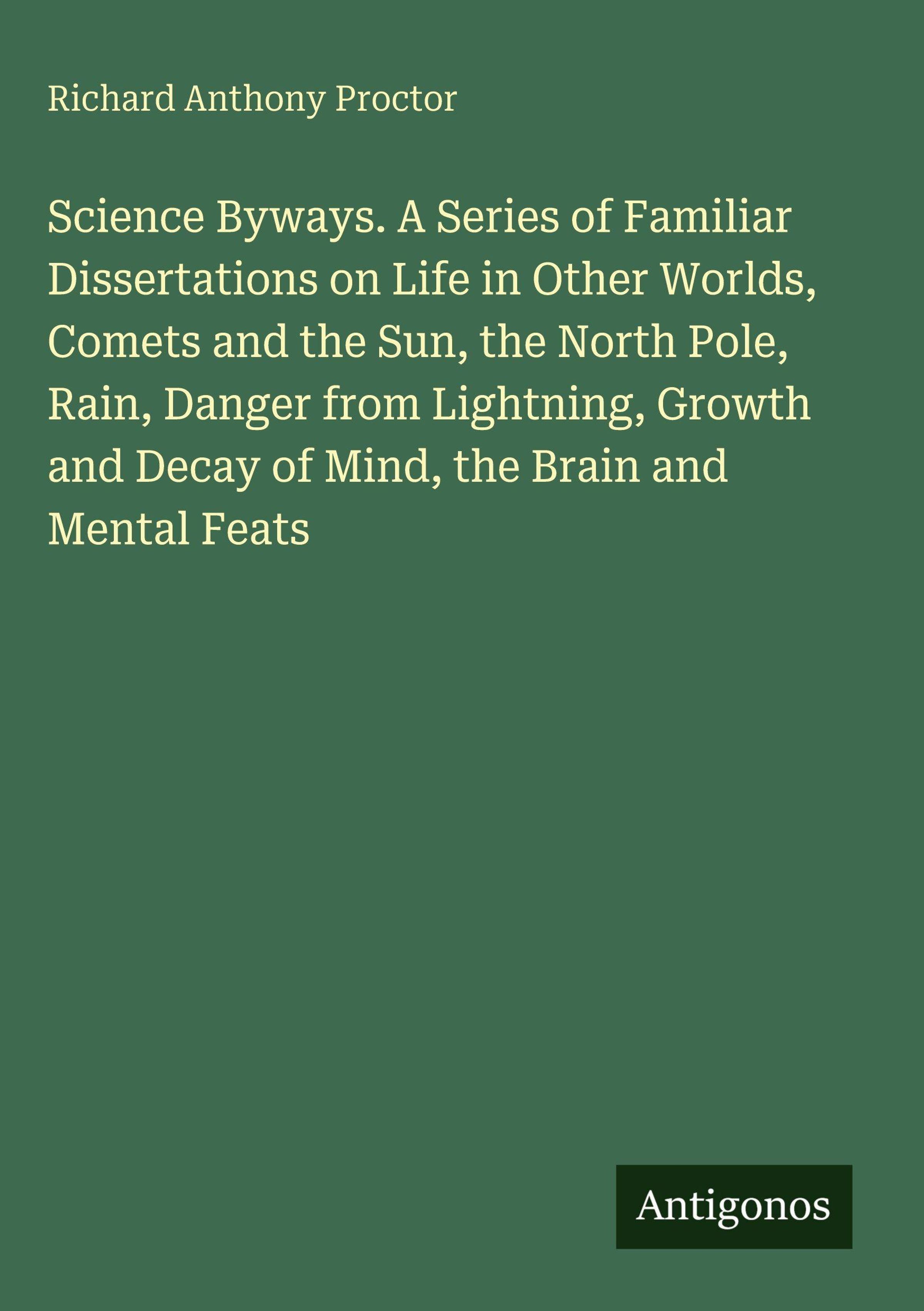 Richard Anthony Proctor: Science Byways. A Series of Familiar Dissertations on Life in Other Worlds, Comets and..., Gebunden