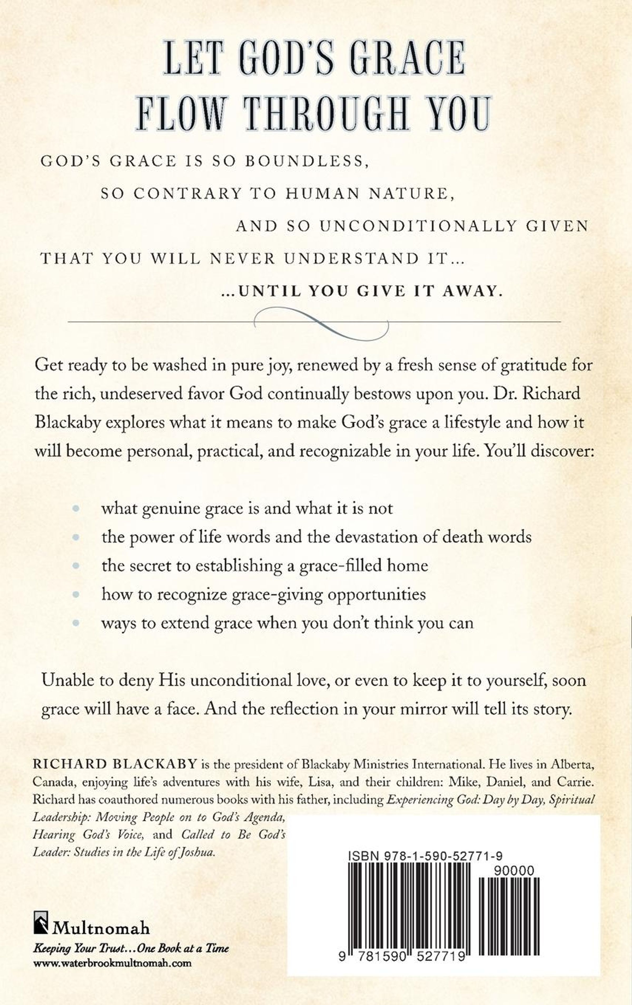 Get ready to be washed in pure joy, renewed by a fresh sense of gratitude for the rich, undeserved favor God continually bestows upon you. Dr. Richard Blackaby explores what it means to make God's grace a lifestyle and how it will become personal, practical, and recognizable in your life. You'll discover: What genuine grace is and what it is not The power of life words and the devastation of death words The secret to establishing a grace-filled home How to recognize grace-giving opportunities Ways to extend grace when you don't think you can