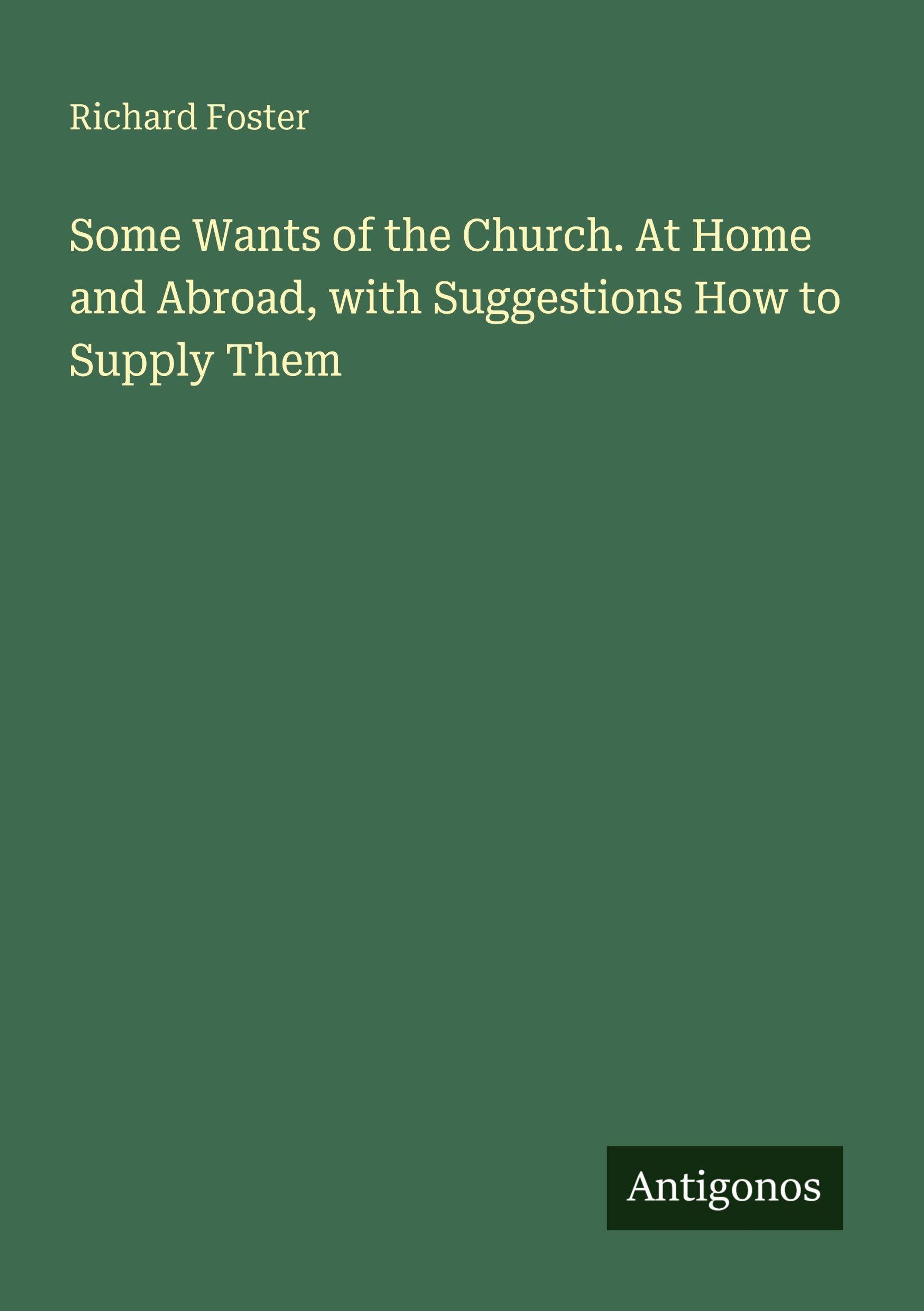 Richard Foster: Some Wants of the Church. At Home and Abroad, with Suggestions How to Supply Them, Kartoniert / Broschiert