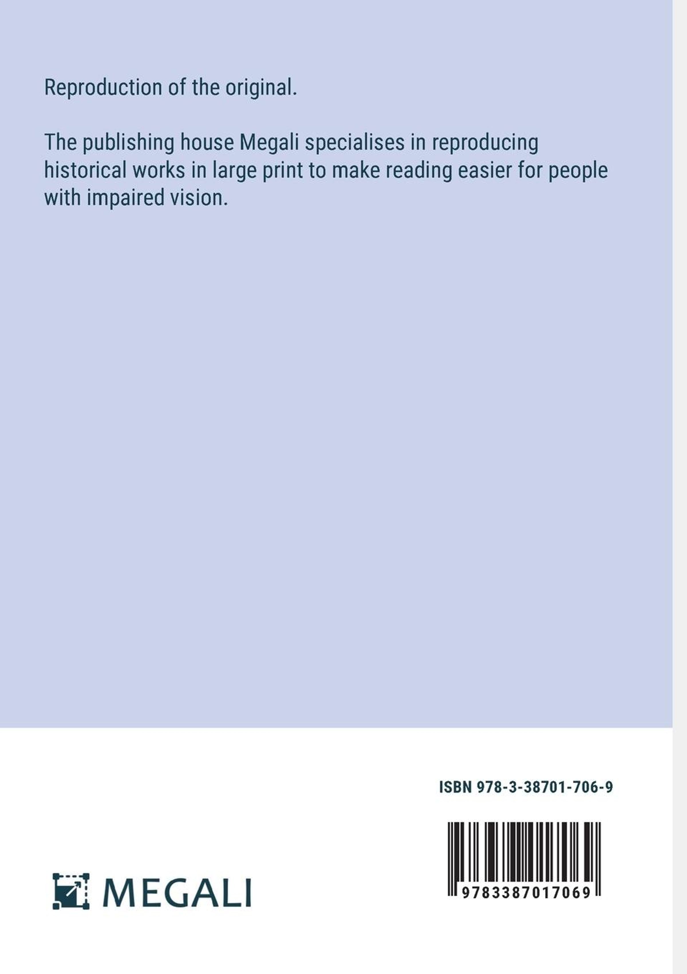 Reproduction of the original. The publishing house Megali specialises in reproducing historical works in large print to make reading easier for people with impaired vision.